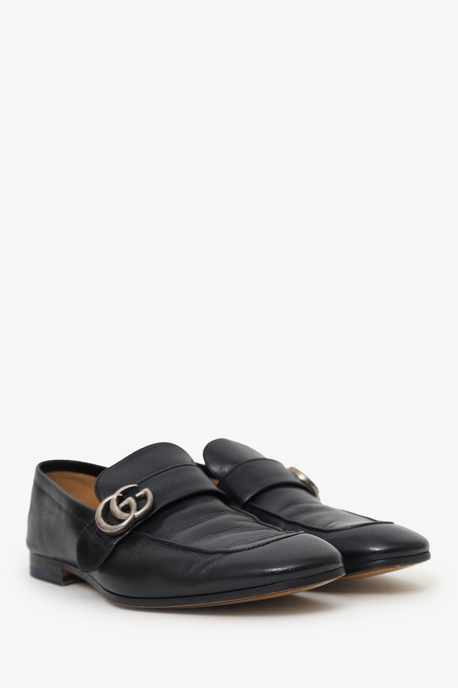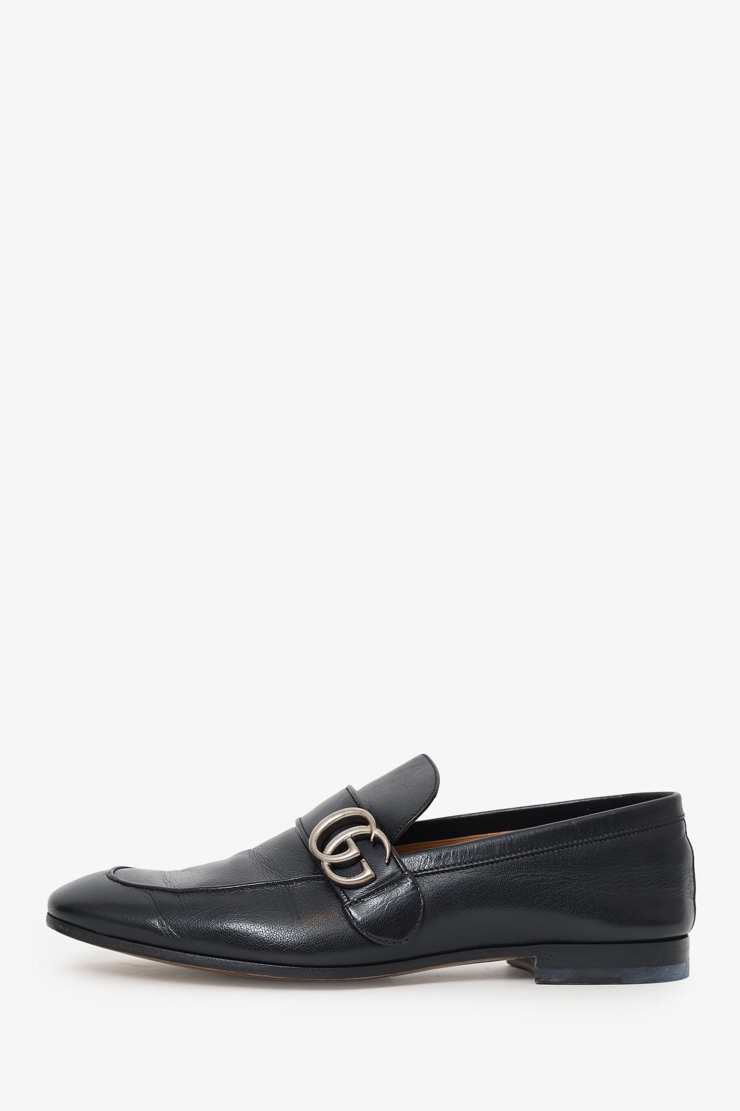 Refresh availabilityGucci Black Leather Loafers. Slip-on. Round toe. Silver-tone hardware. Tonal stitching.