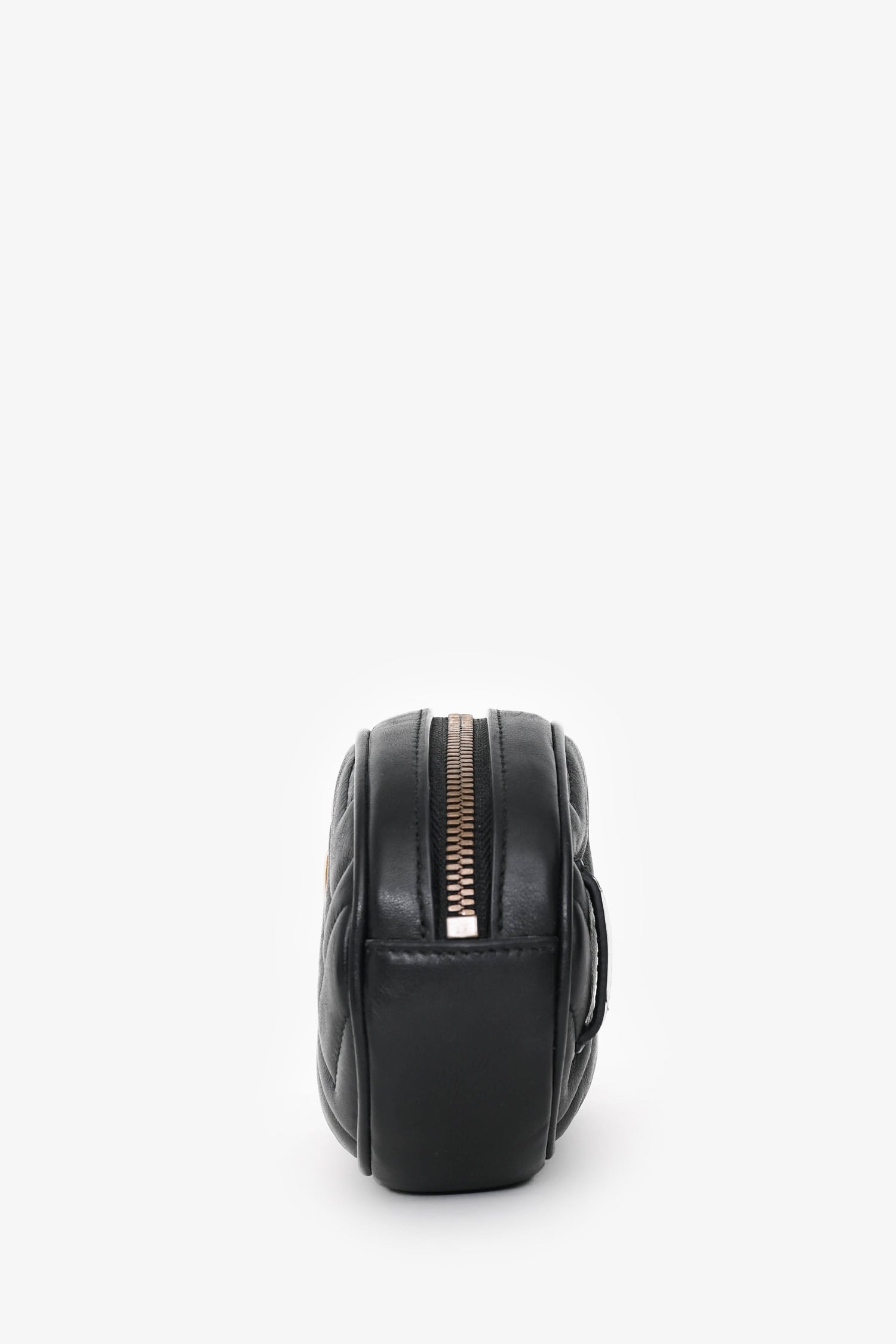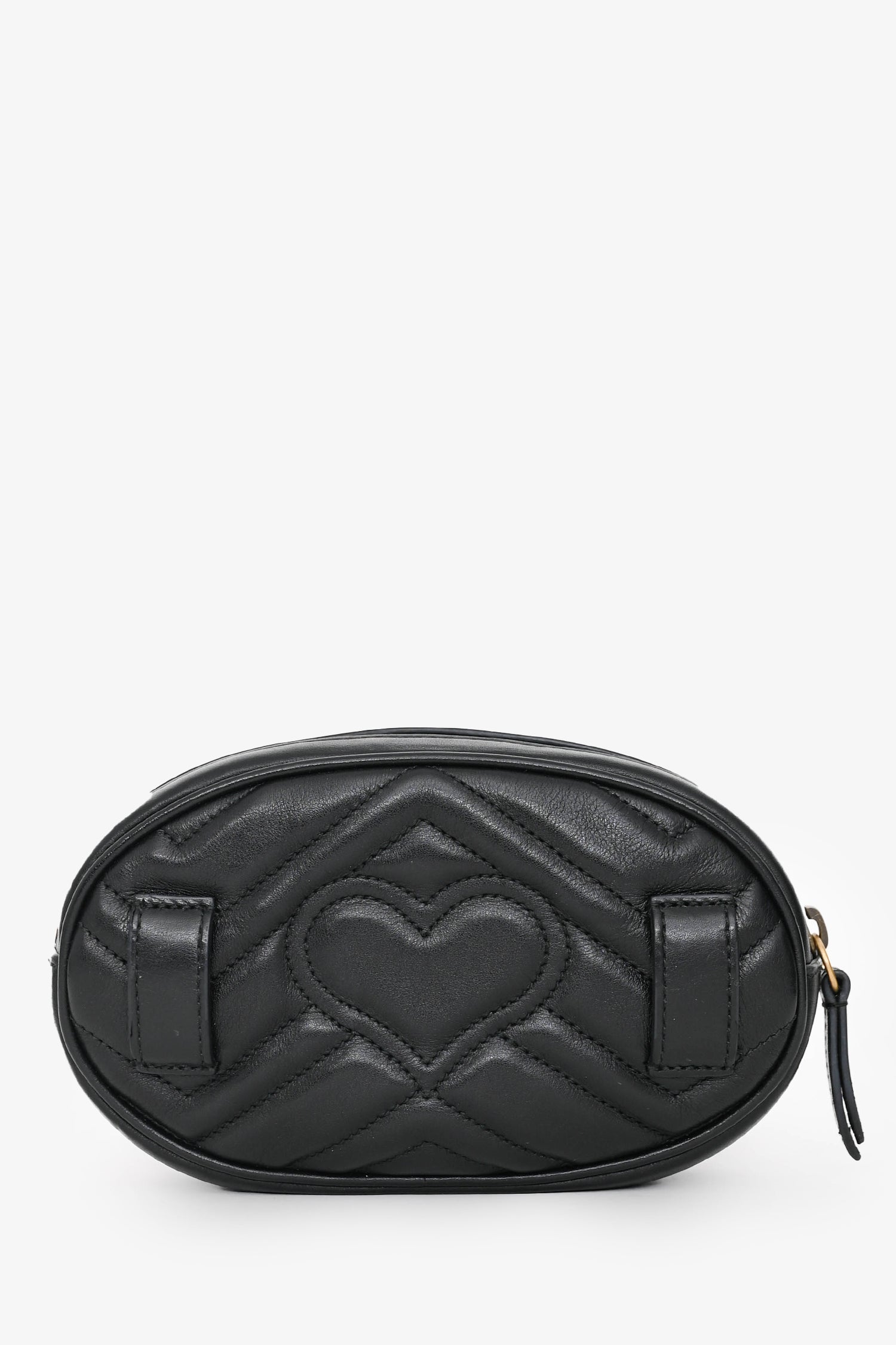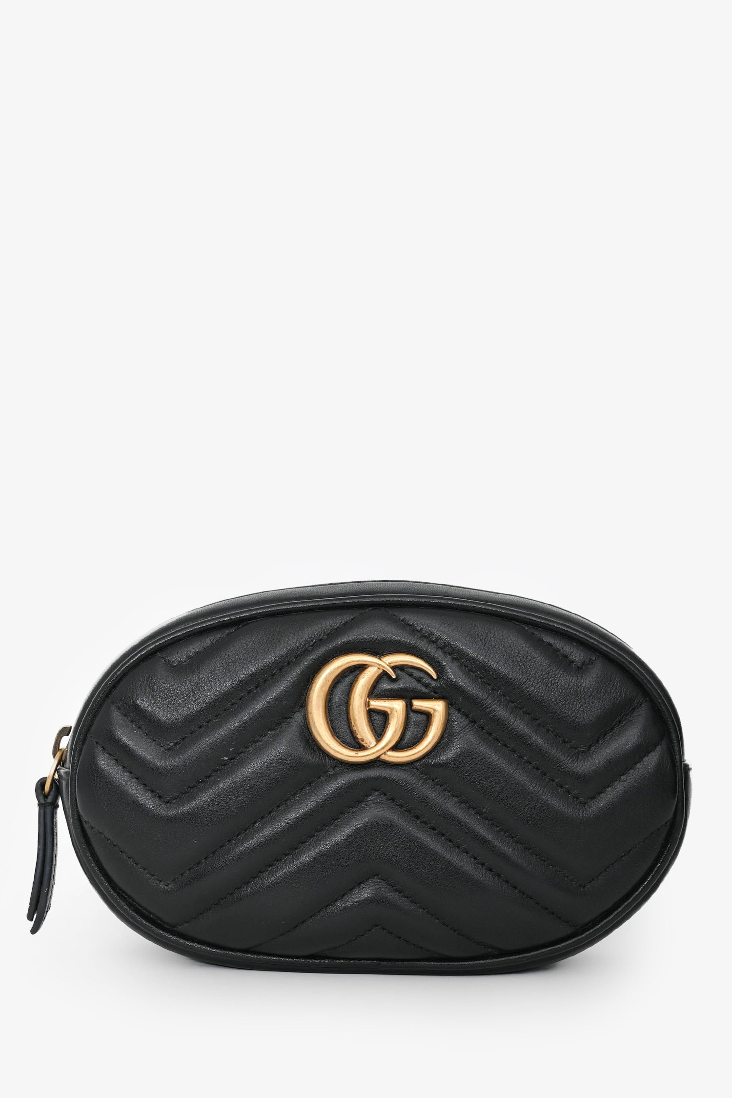 Refresh availabilityGucci Black Leather Marmont Belt Bag. Zip closure. Removable and adjustable belt strap with buckle fastening. 1 interior slip pocket. Suede interior. Gold-tone hardware. Tonal stitching.