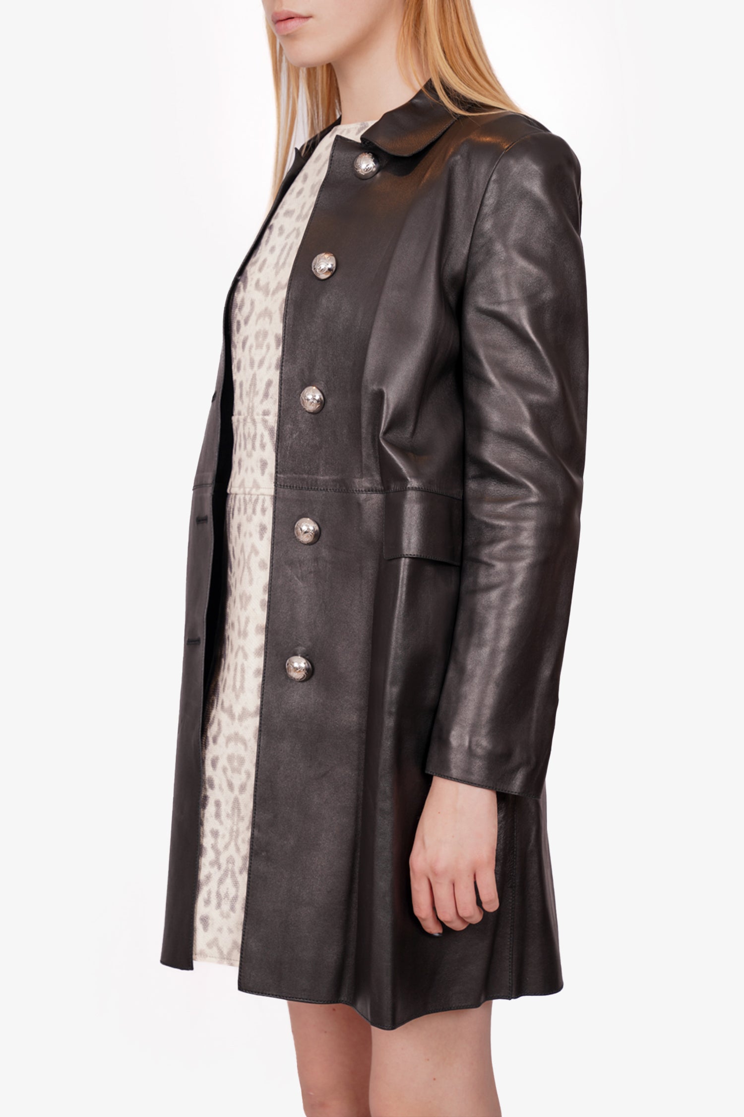 Gucci Black Leather Mid Length Coat with Silver Buttons Size 40
