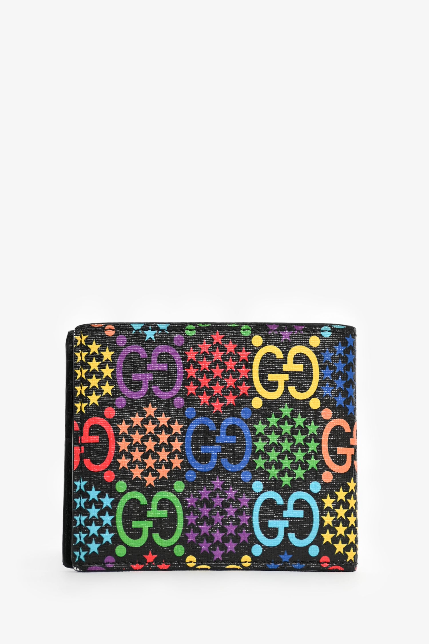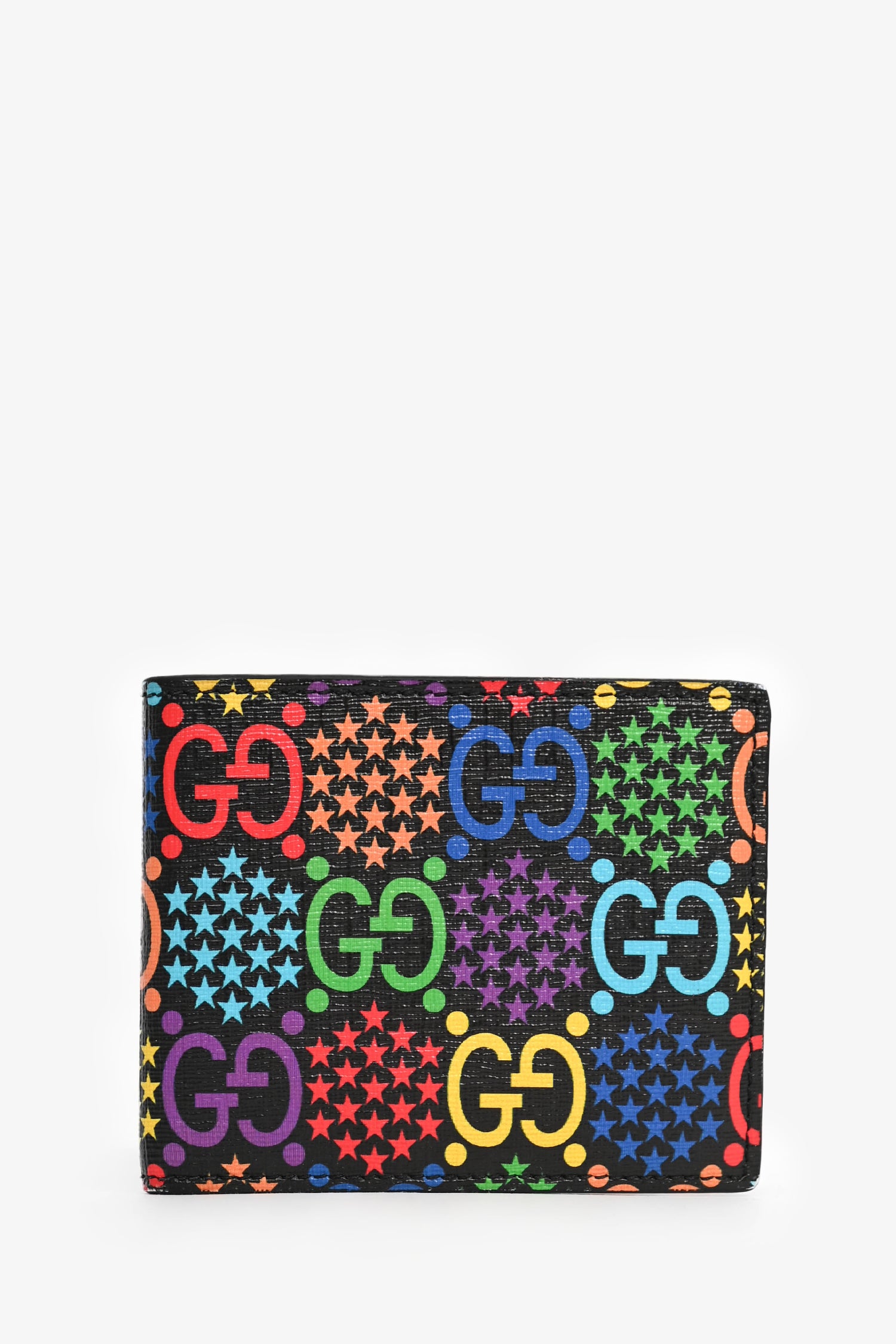 Refresh availabilityGucci Black Leather Rainbow GG Bi-Fold Wallet Mens. Bifold opening. Coated trimming. 10 card slots. 1 bill compartment. Tonal stitching.