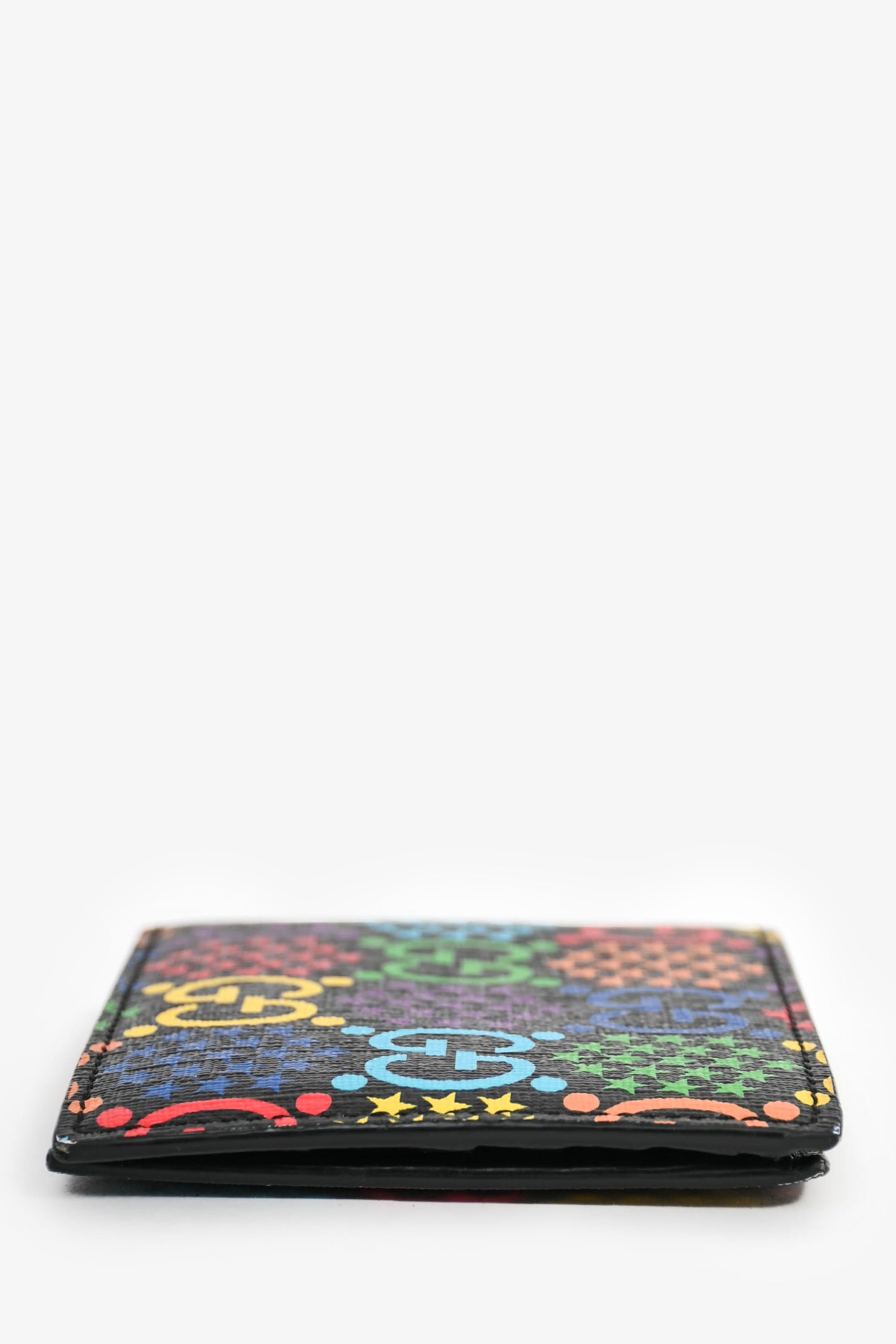 Gucci Black Leather Rainbow GG Bi-Fold Wallet Mens