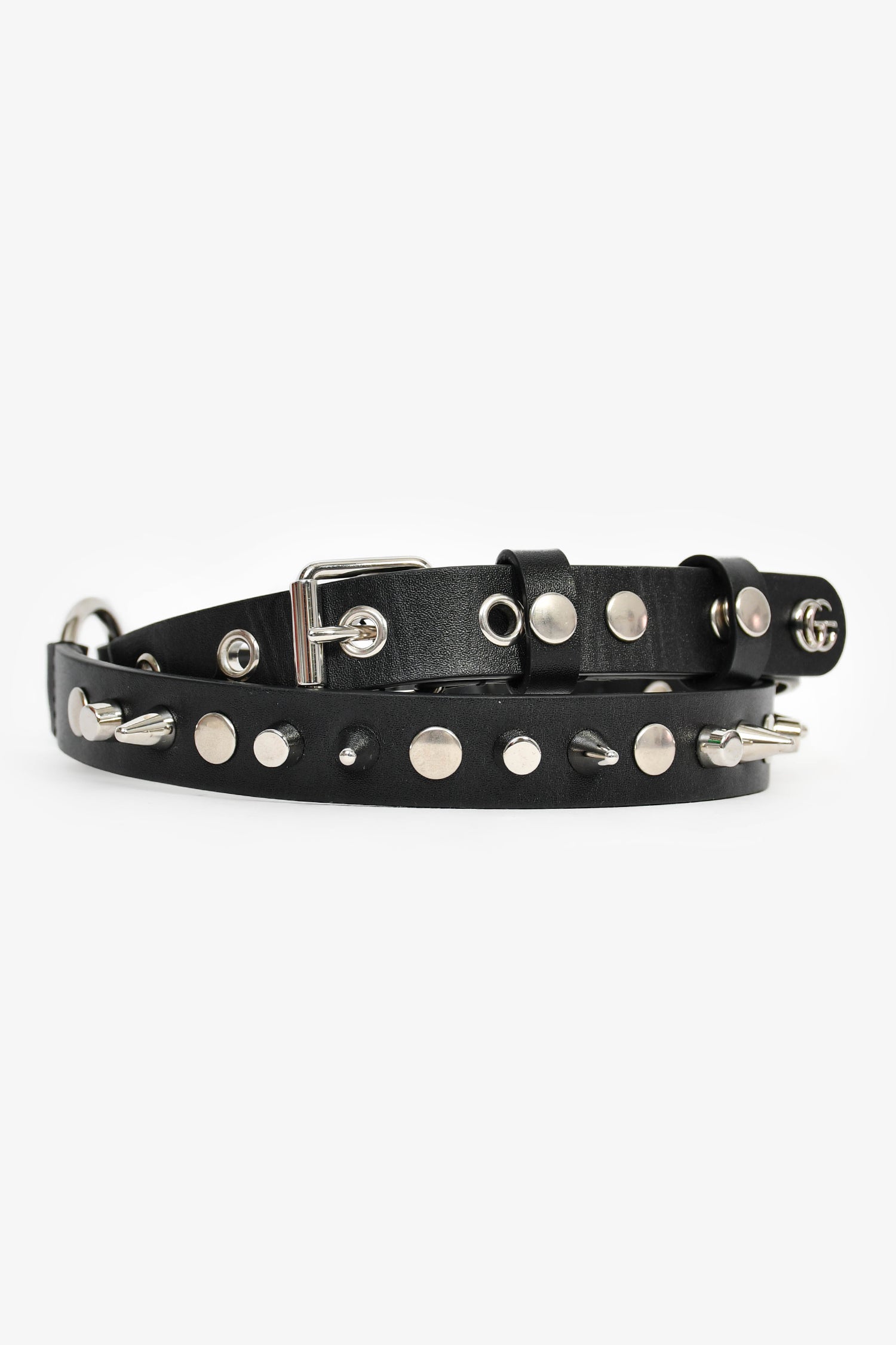 Refresh availabilityGucci Black Leather Studded Belt. Buckle closure.