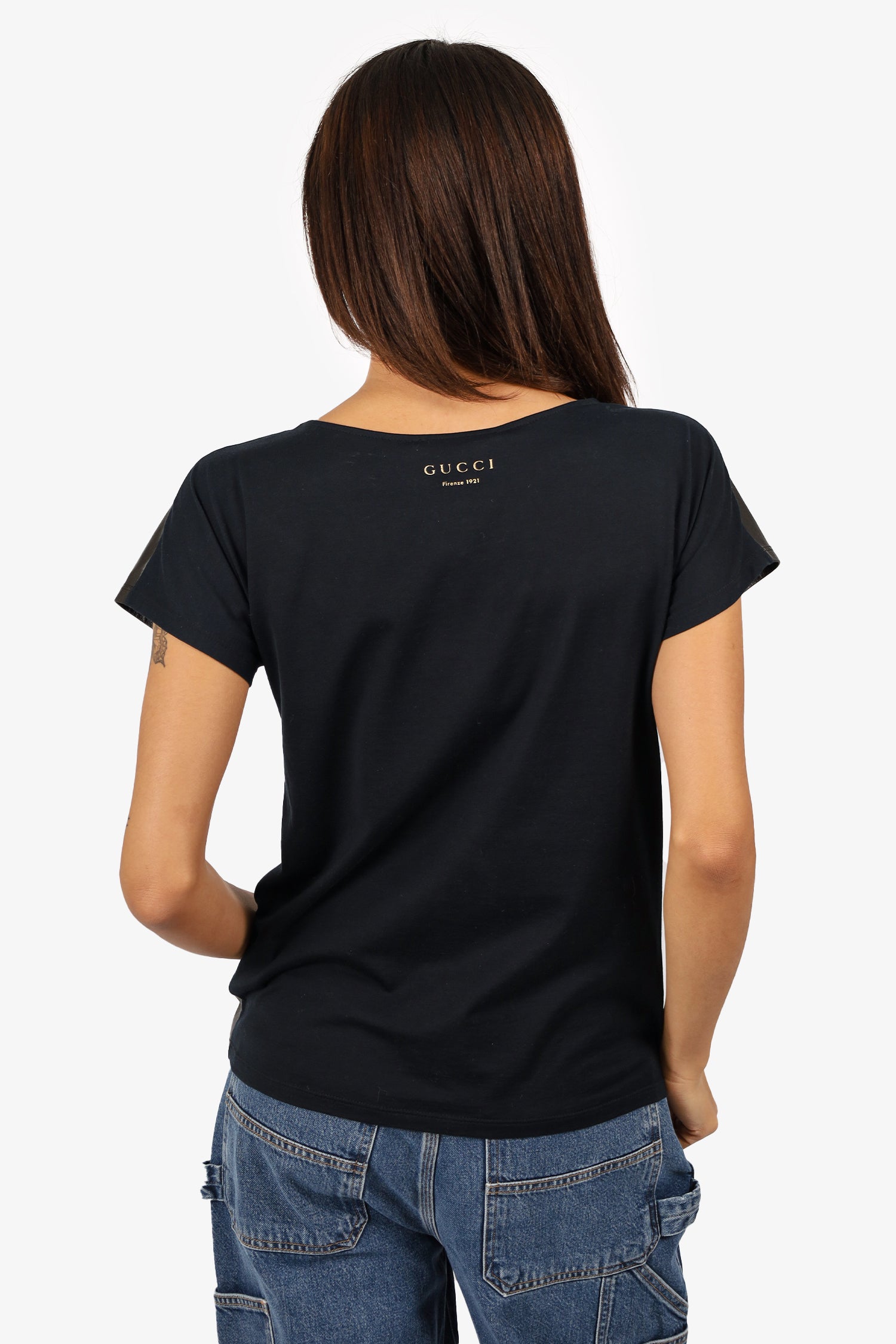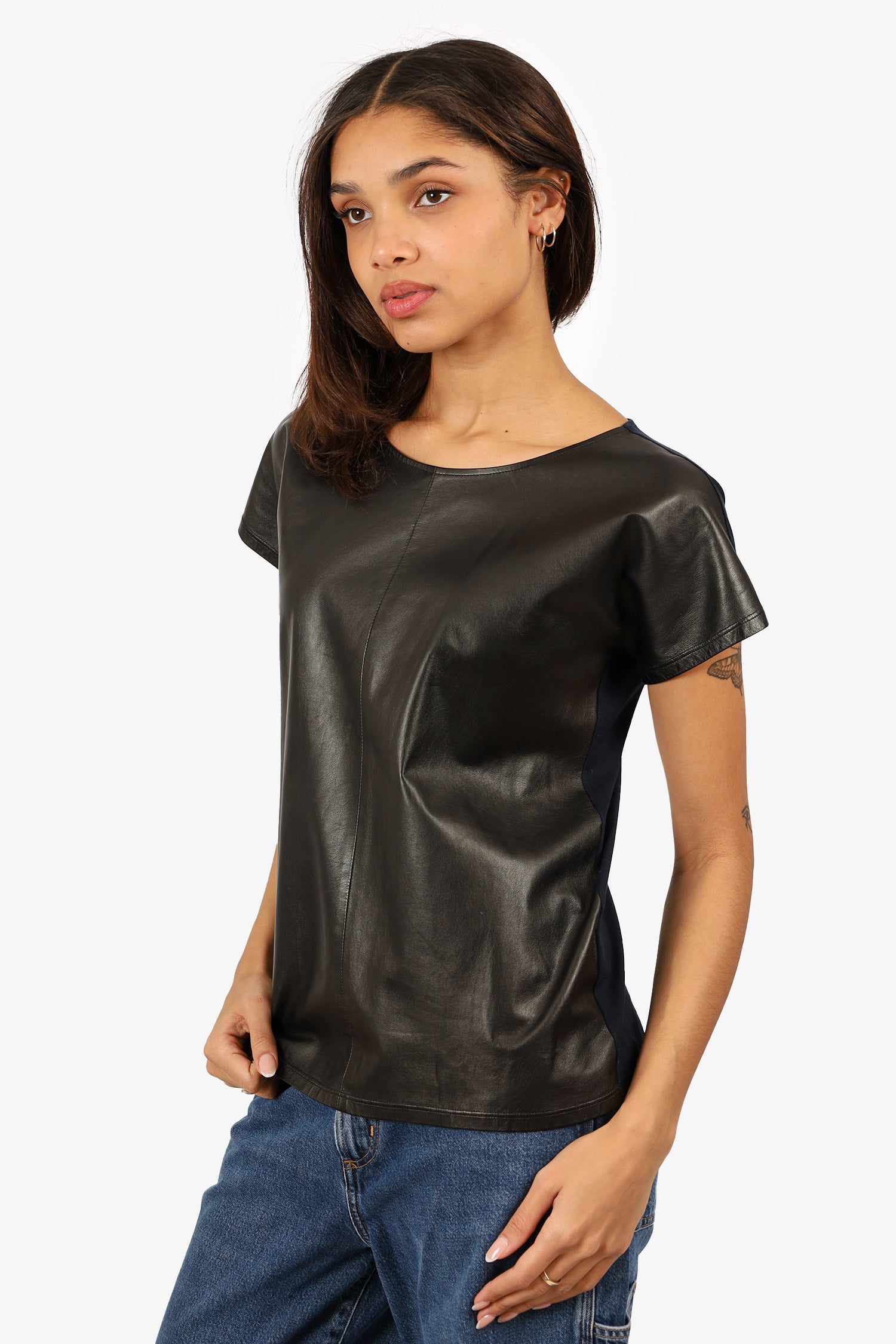 Refresh availabilityGucci Black Leather T-Shirt. Pull-on. Round-neckline. Tonal stitching.