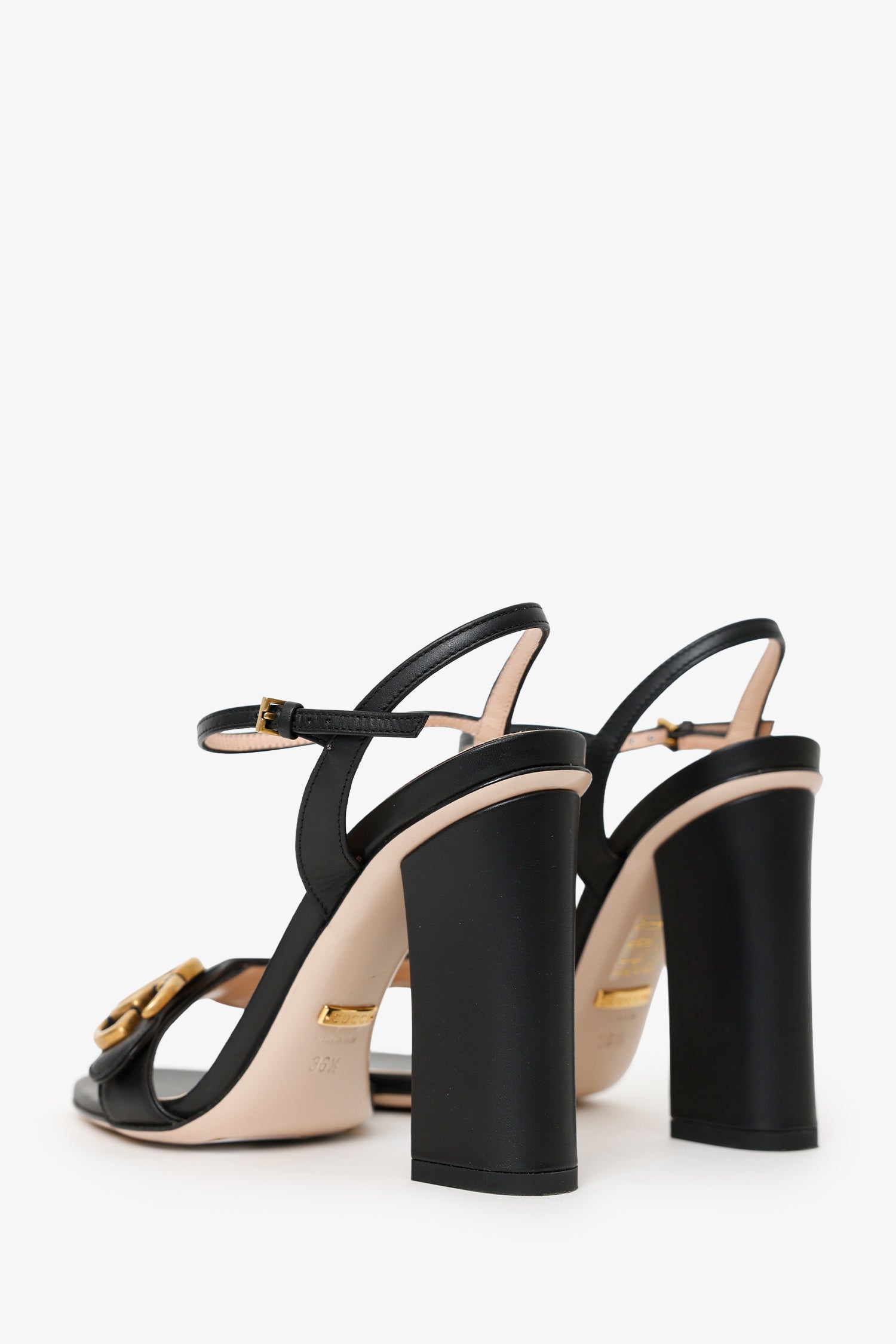 Gucci Black Leather T-Strap GG Marmont Sandals Size 36.5
