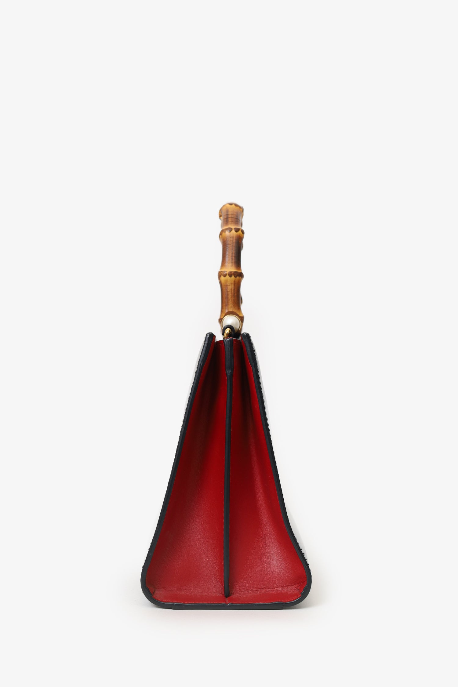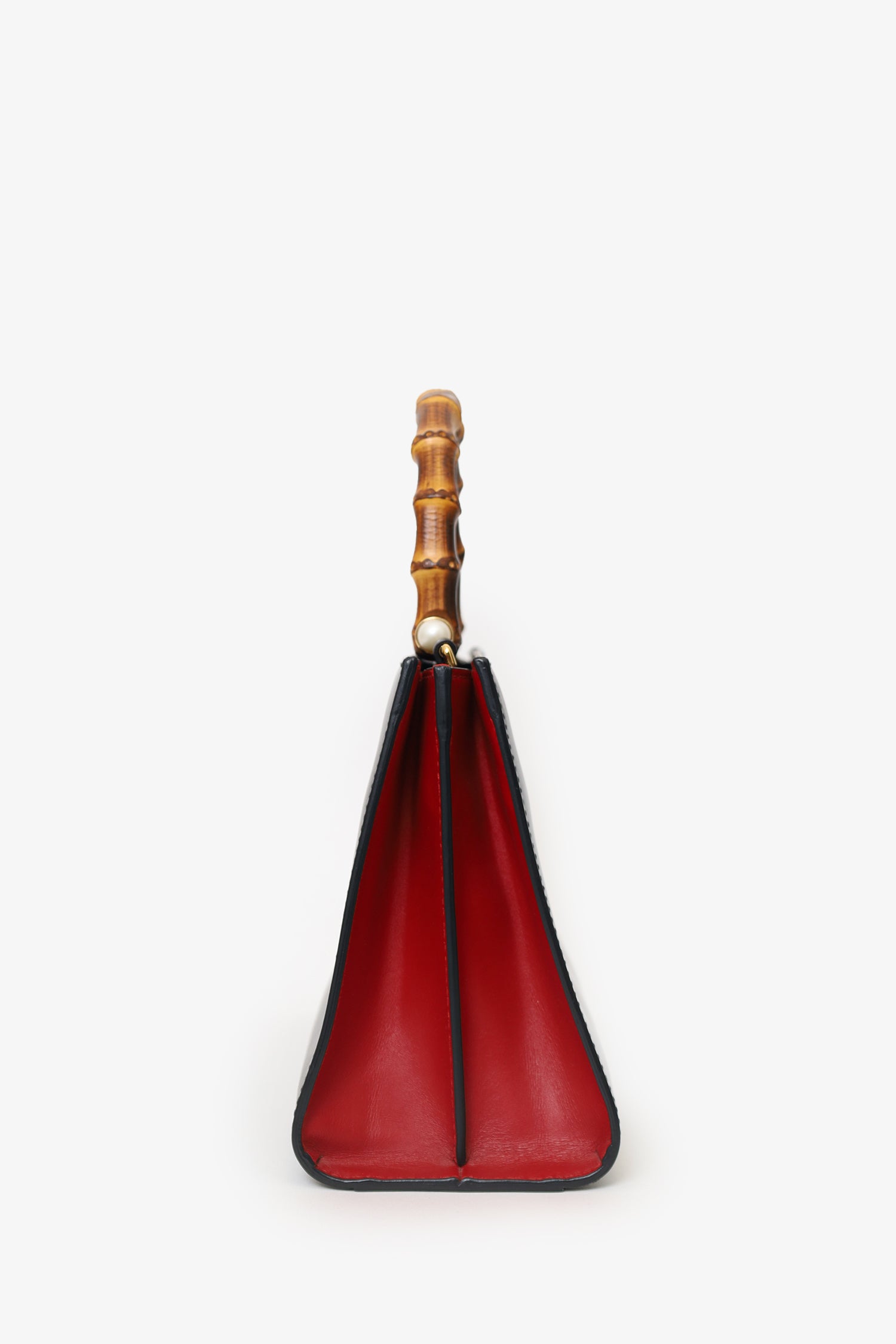 Gucci Black Nymphaea Leather Bamboo Top Handle Bag