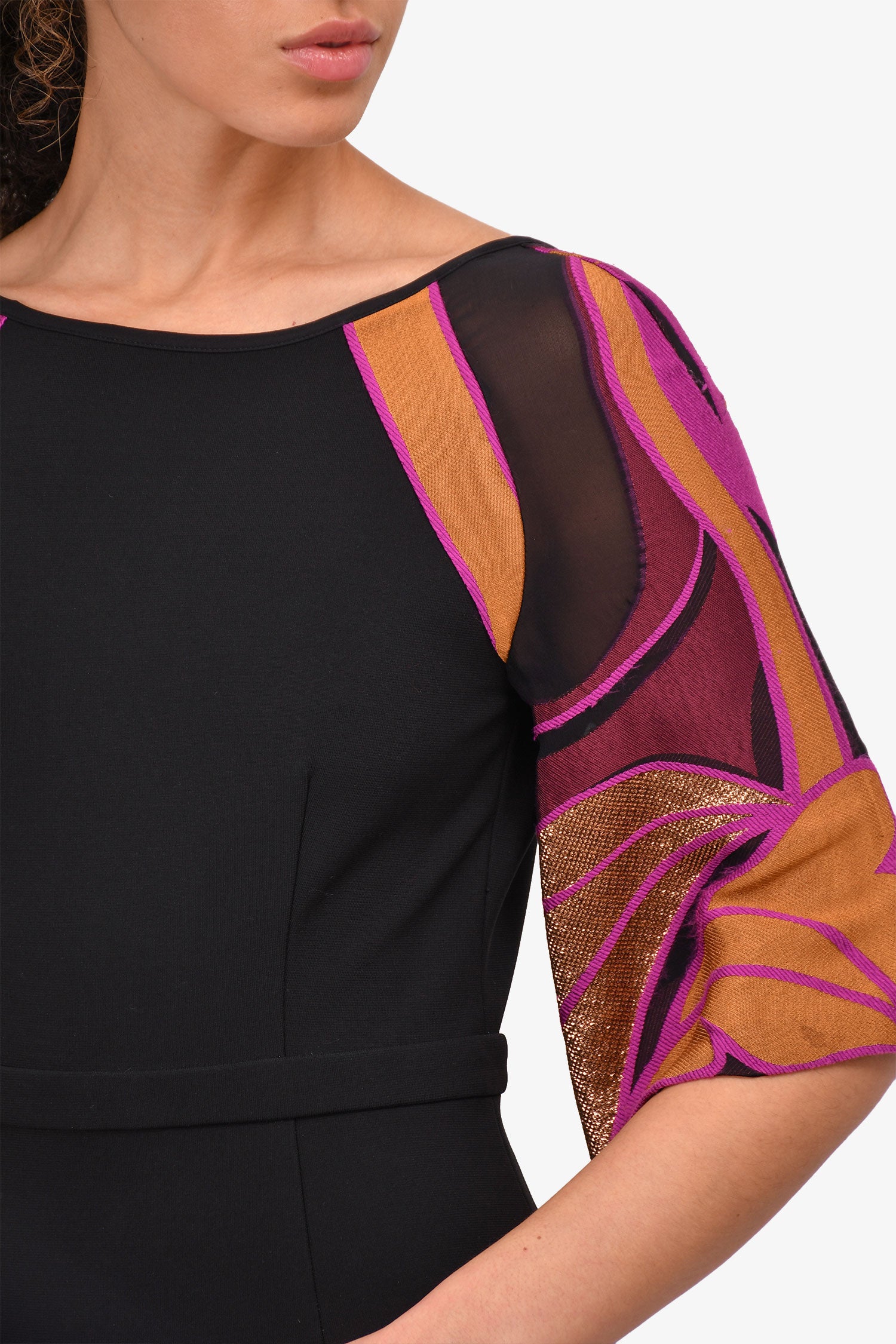 Gucci Black/Purple Pattern Sleeve Low Back Midi Dress Size XS