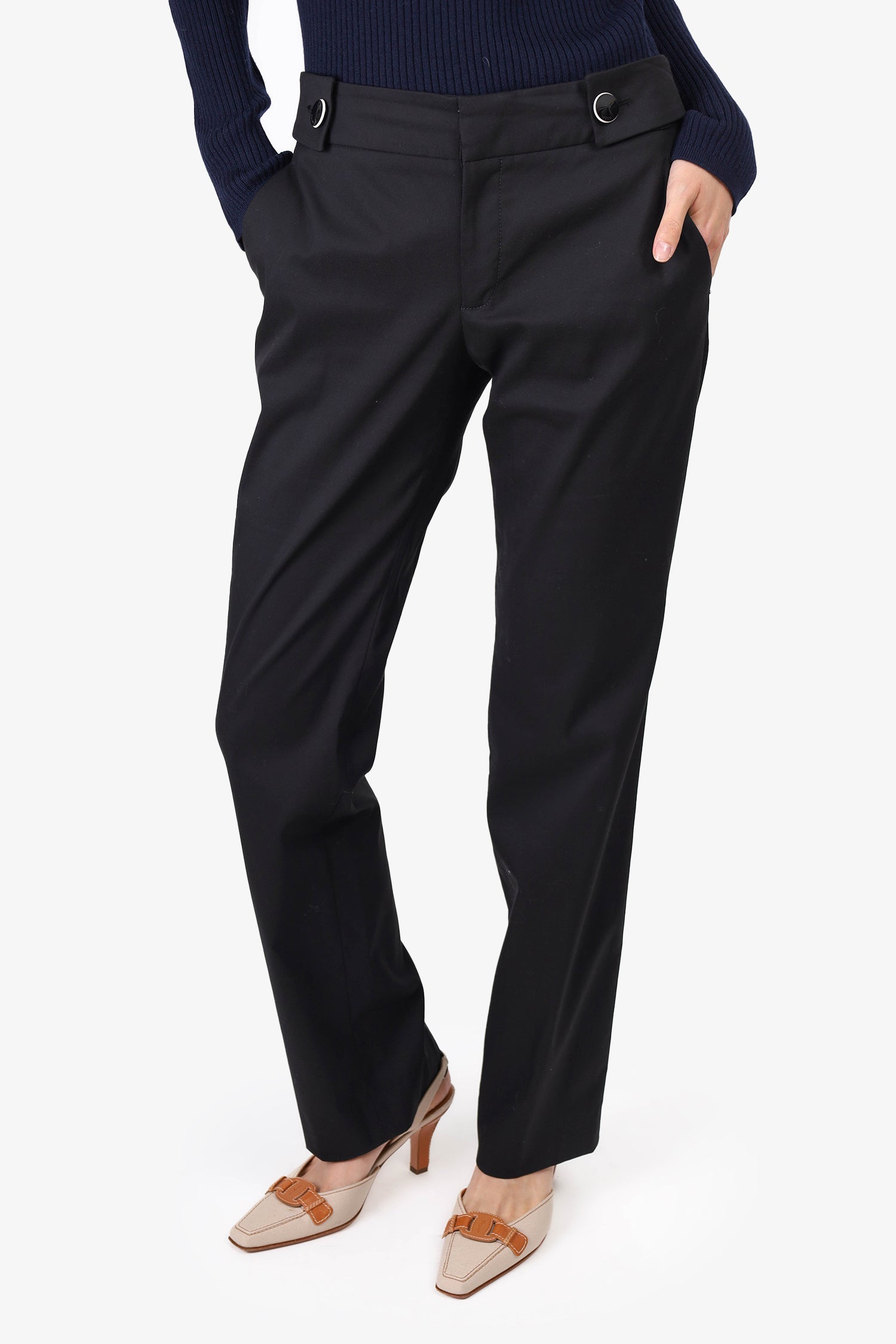 Refresh availabilityGucci Black Straight Leg Trousers. Front zip with hook and button-up closure. 2 front button details on waistband. 2 slip pockets on front and on back. Unlined. Tonal stitching.