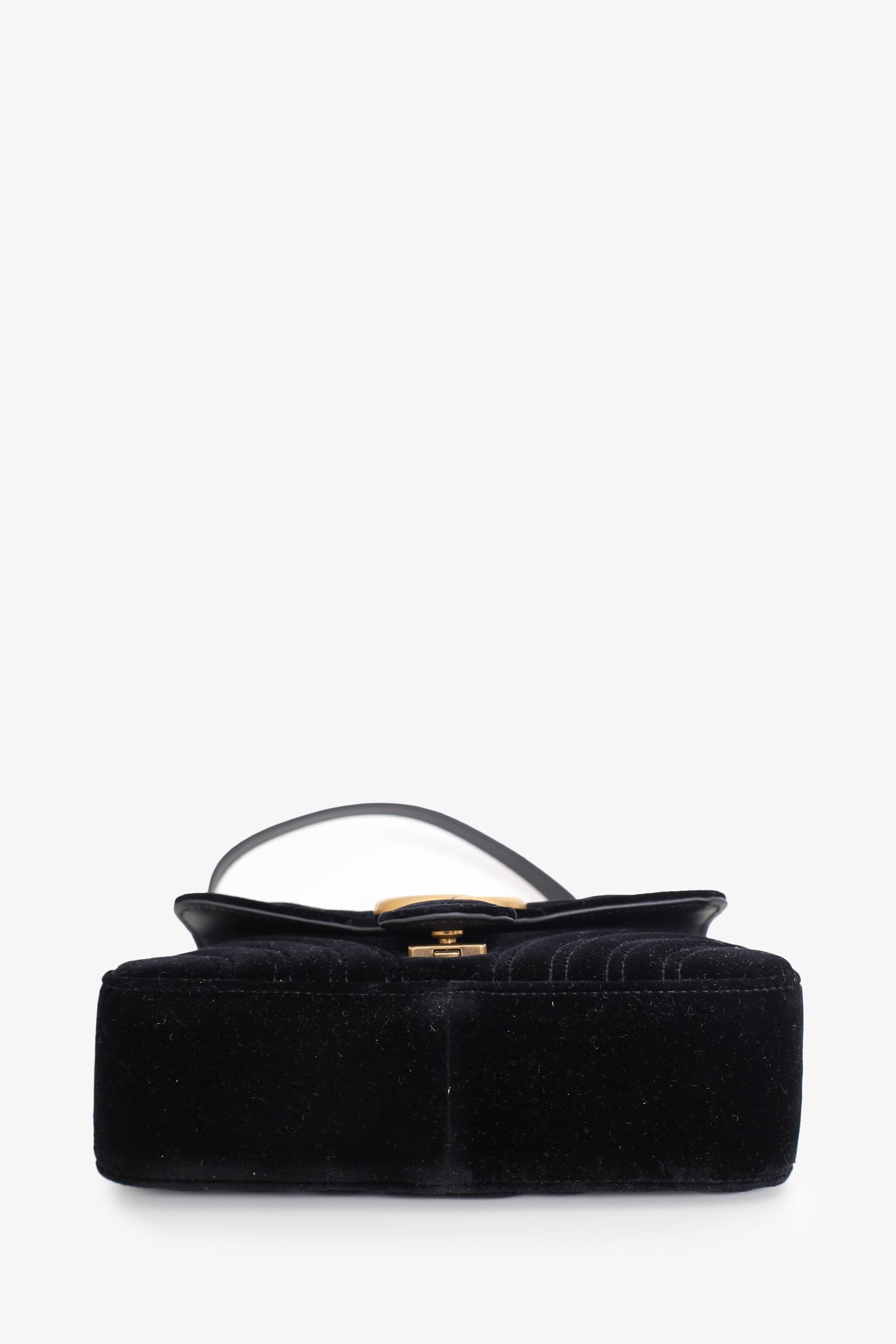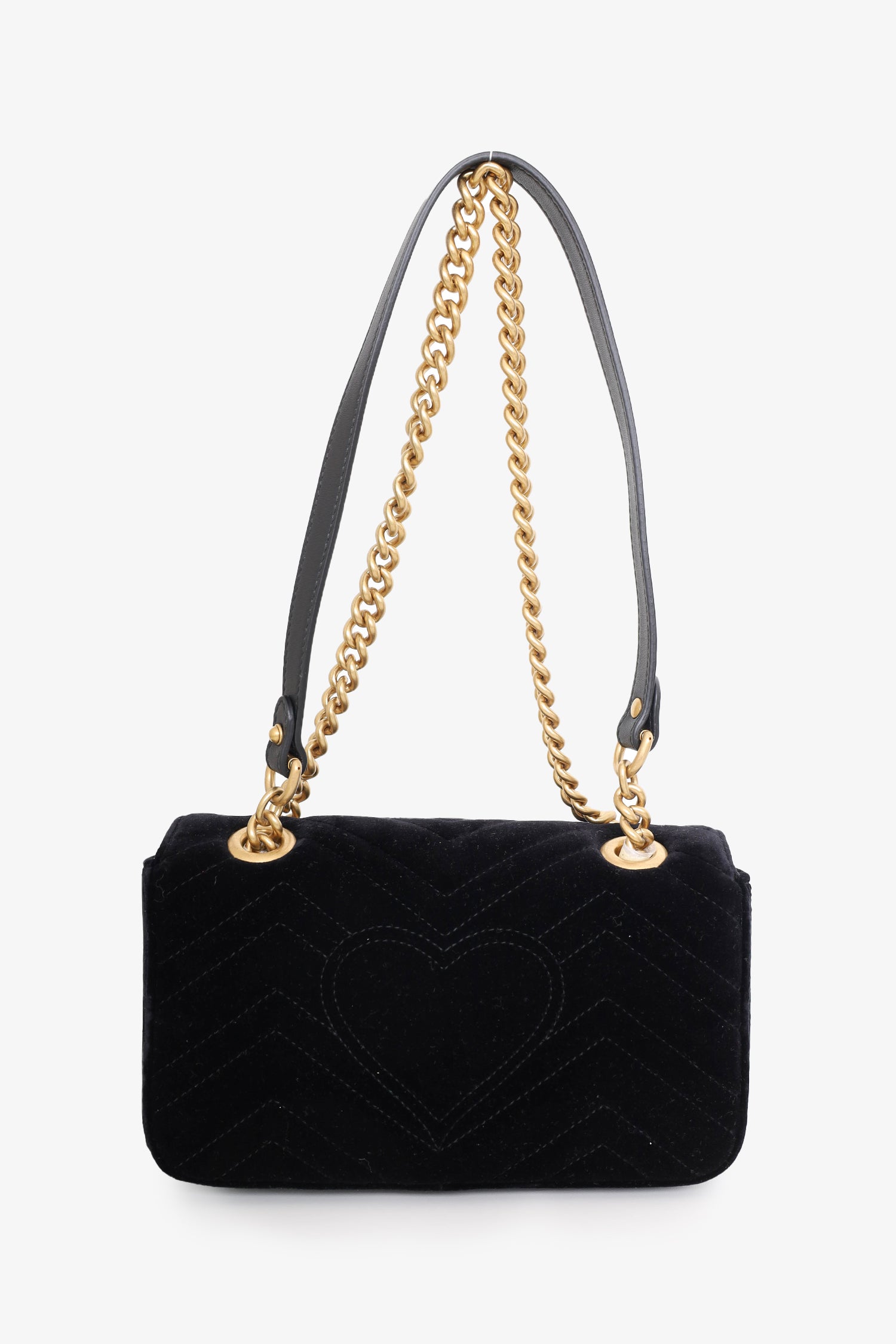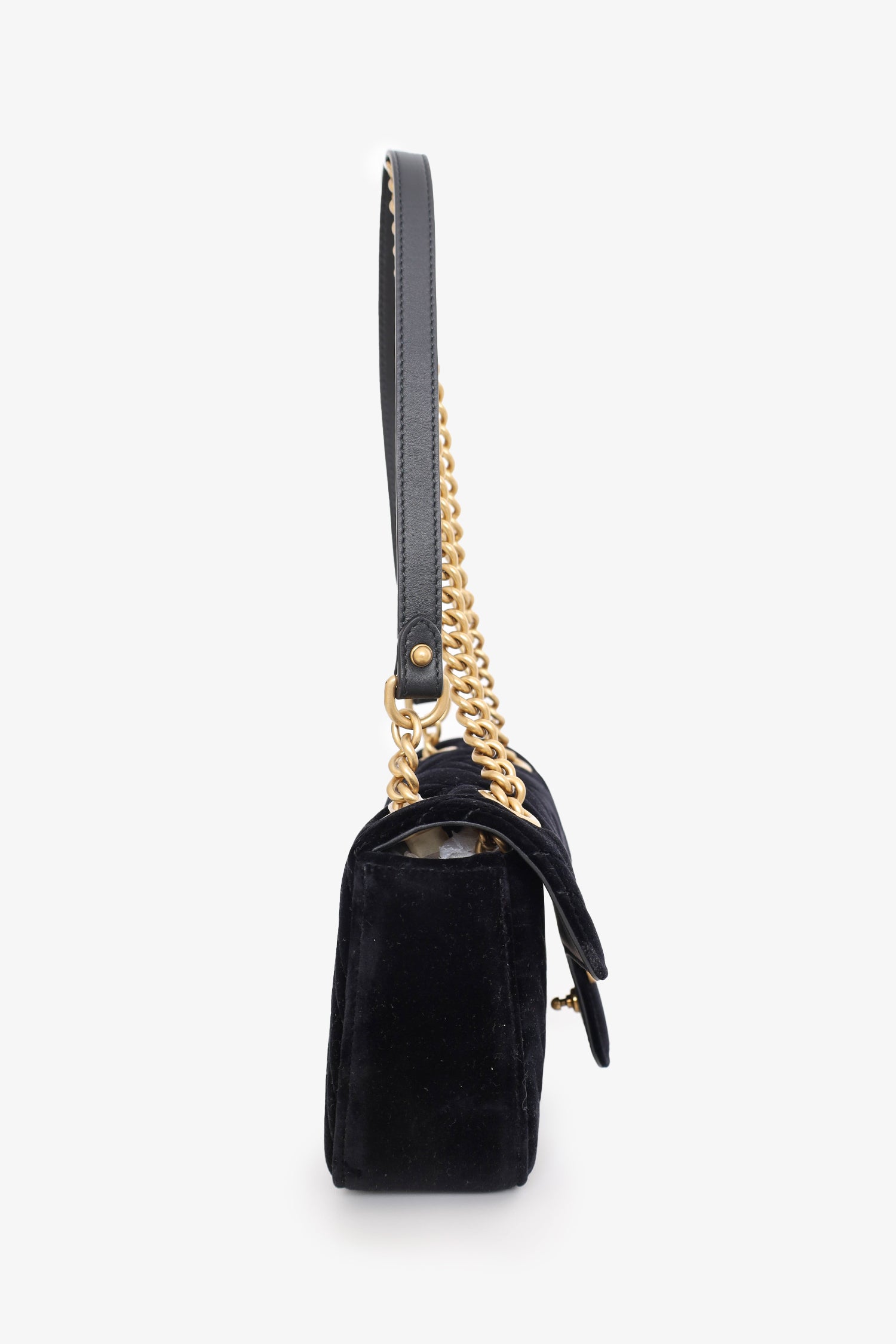 Gucci Black Velvet Mini GG Marmont Shoulder Bag