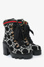Gucci Black/White Tweed Heeled Combat Boots Size 35.5
