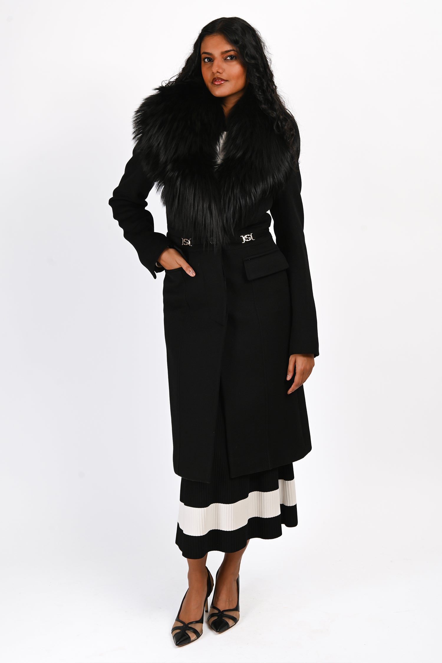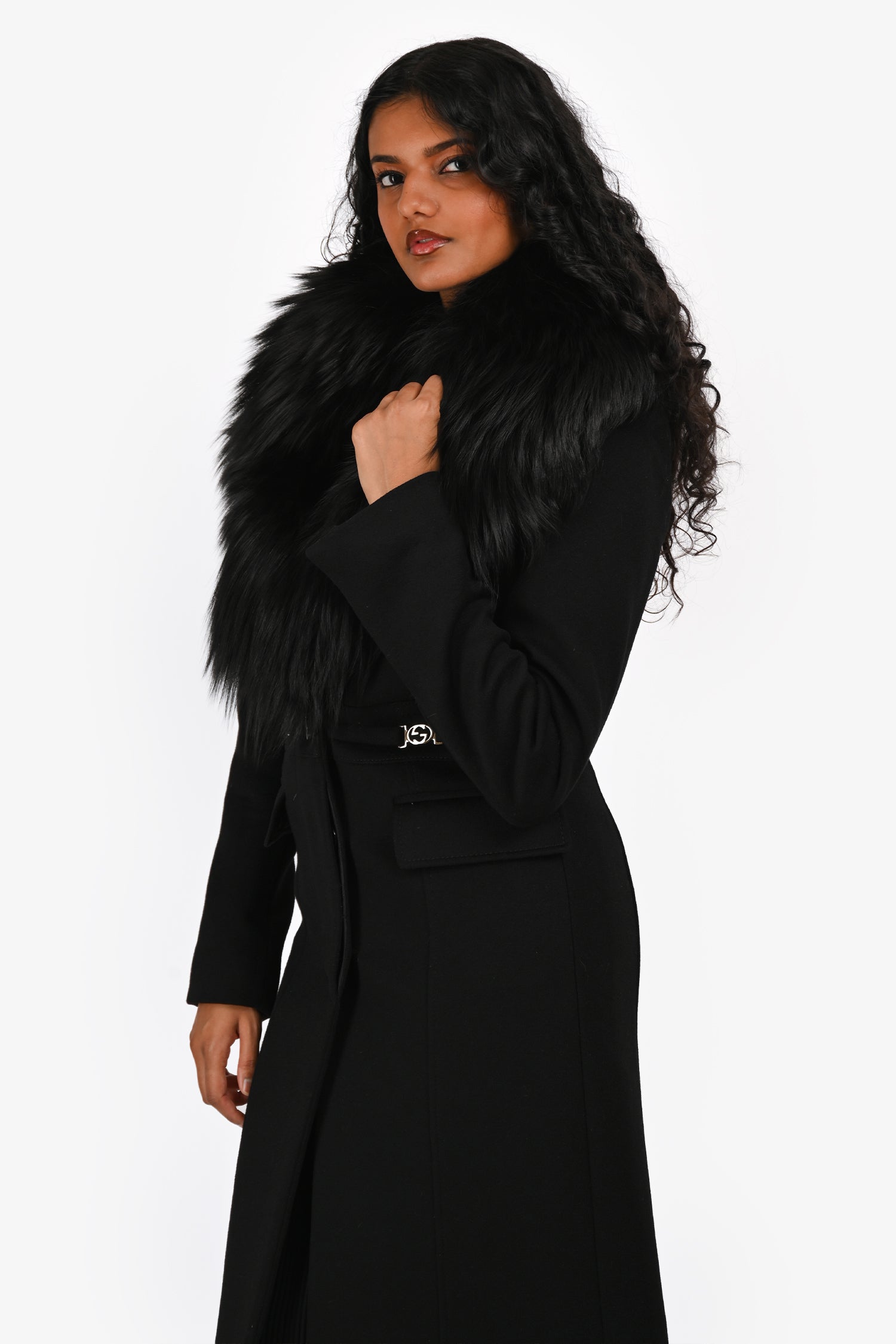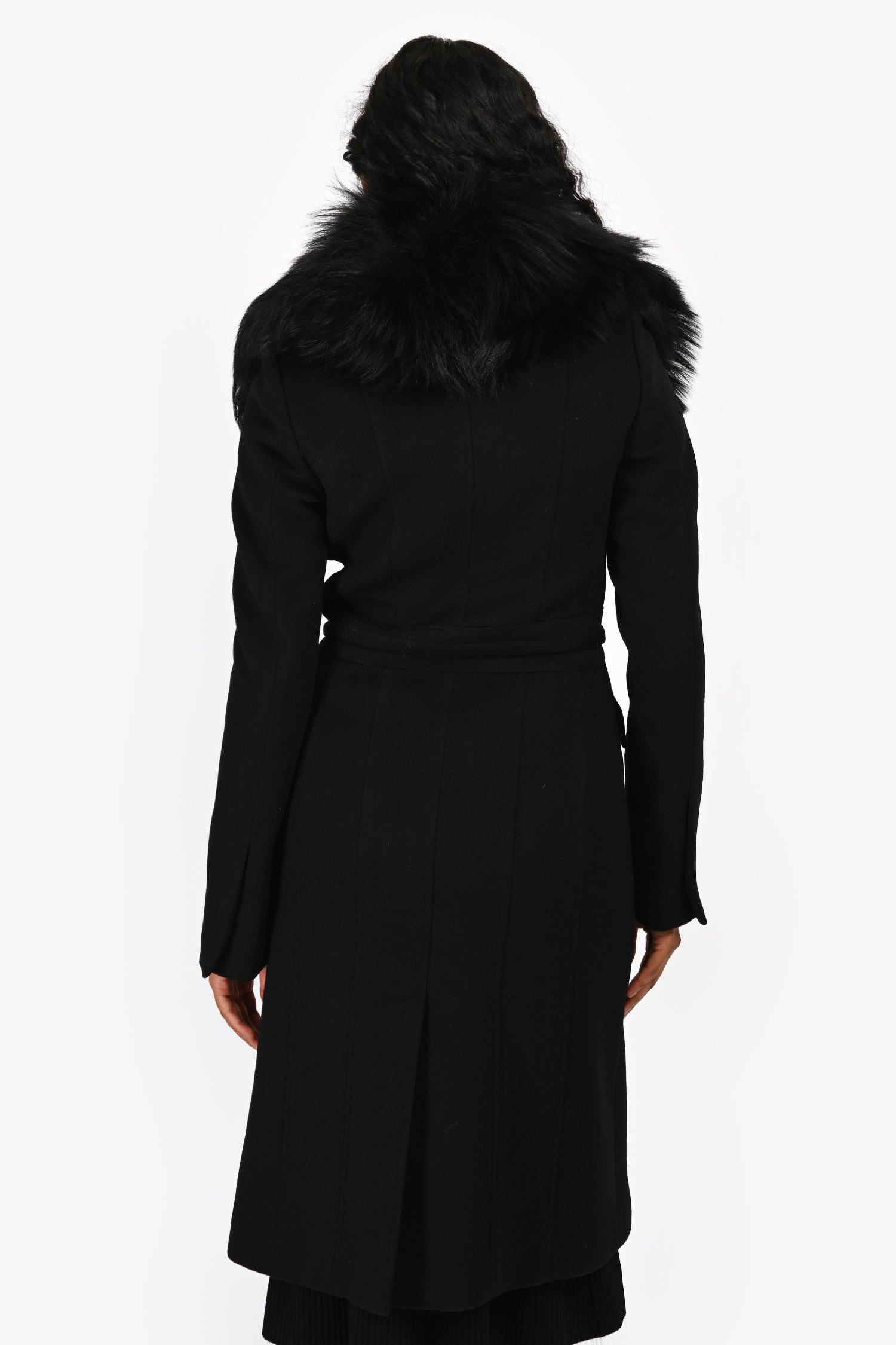 Gucci Black Wool Detachable Faux Fur Collar Midi Coat Size 38