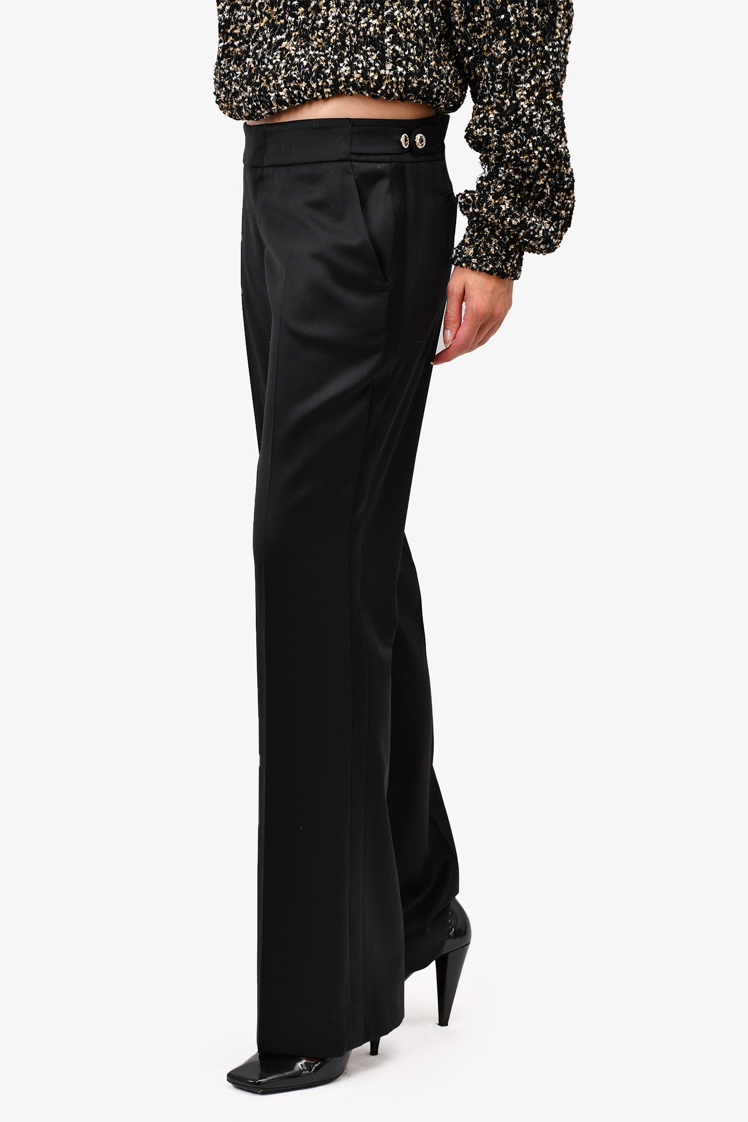 Gucci Black Wool/Silk Wide Leg Trousers Size 44