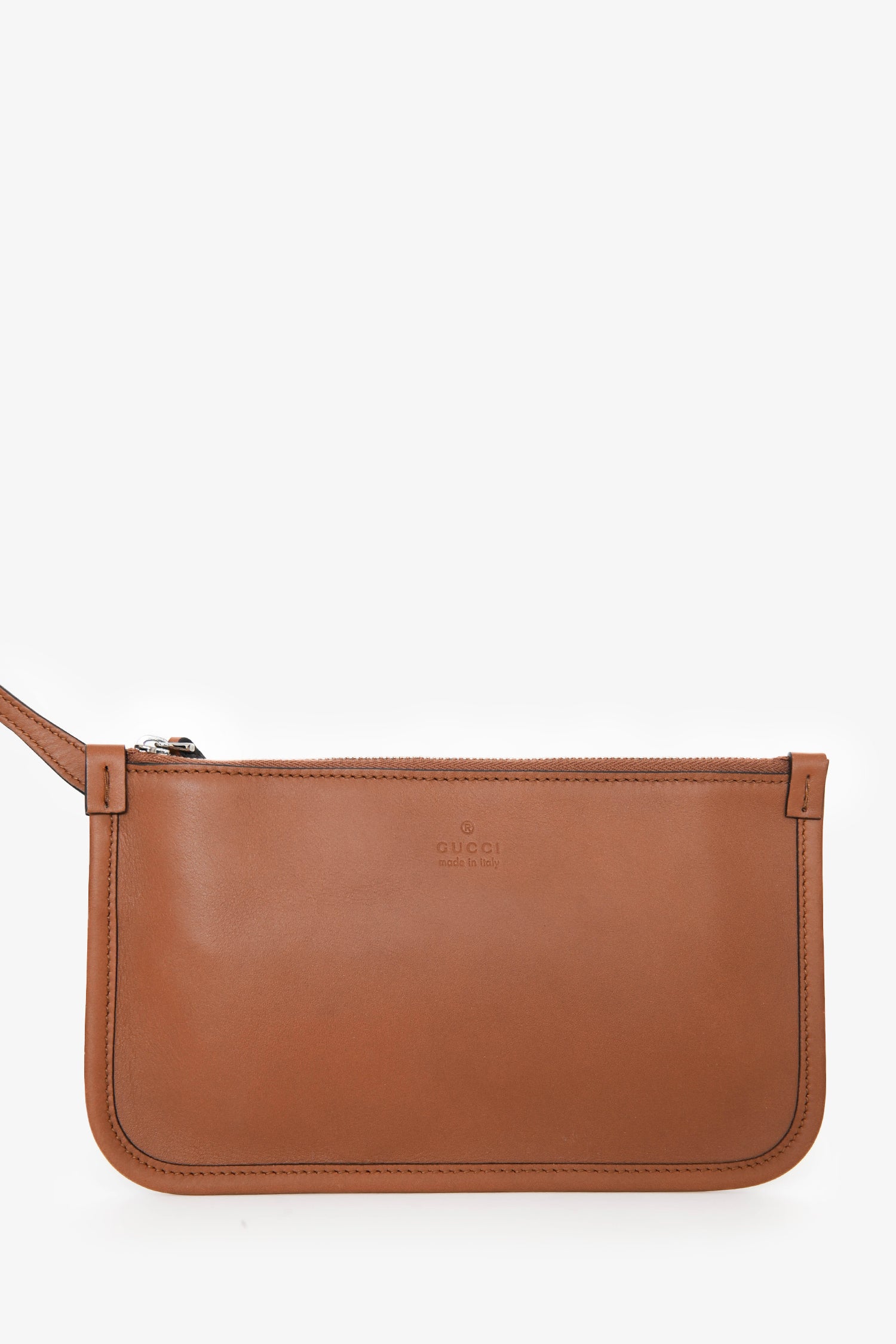 Refresh availabilityGucci Blue Monogram Denim Reversible Brown Leather Trim Totissima Tote Bag with Pouch. Open top. Twin shoulder straps. Single interior compartment. Detachable pouch on the interior with zip closure. Tonal and contrast stitching.