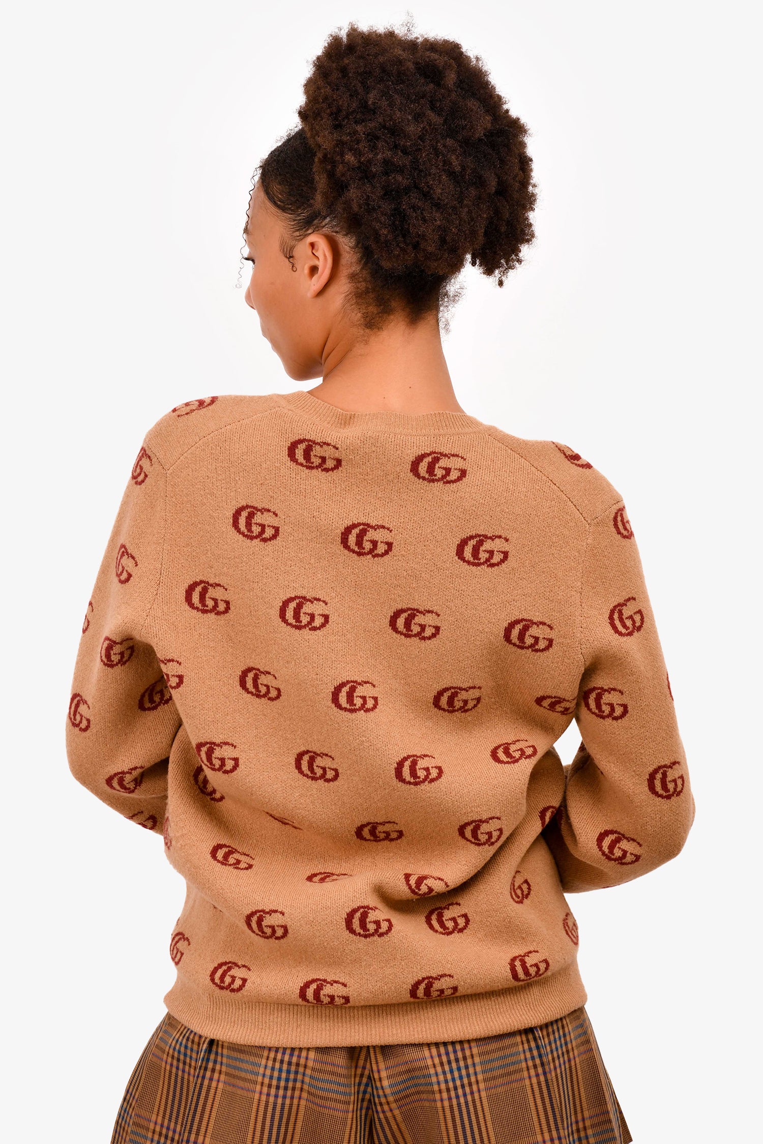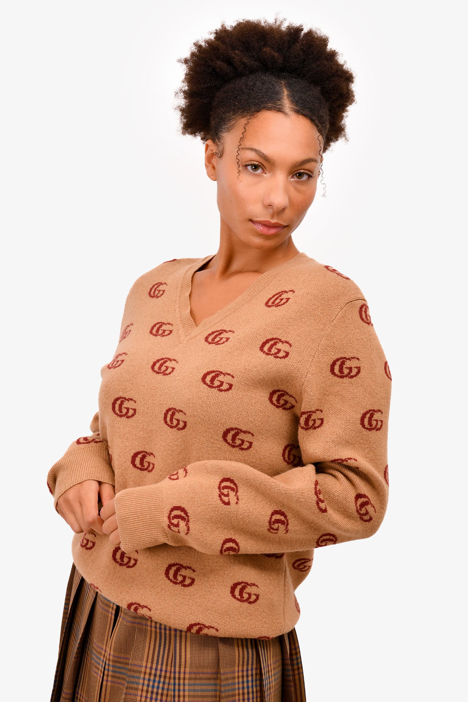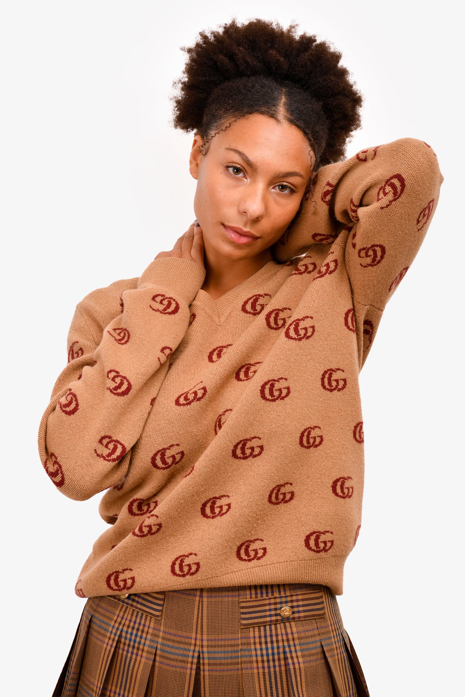 Refresh availabilityGucci Brown/Burgundy 'GG' Monogram V-Neck Sweater. V Neckline. Slip on.