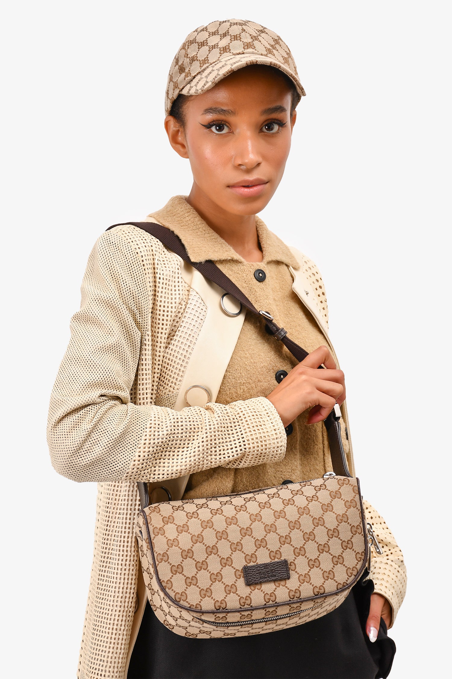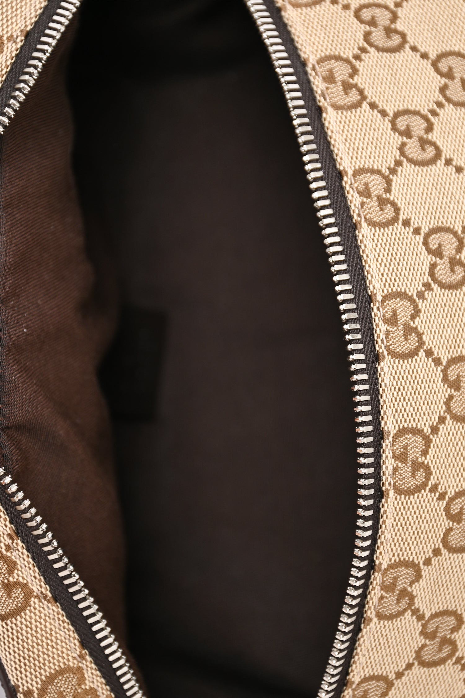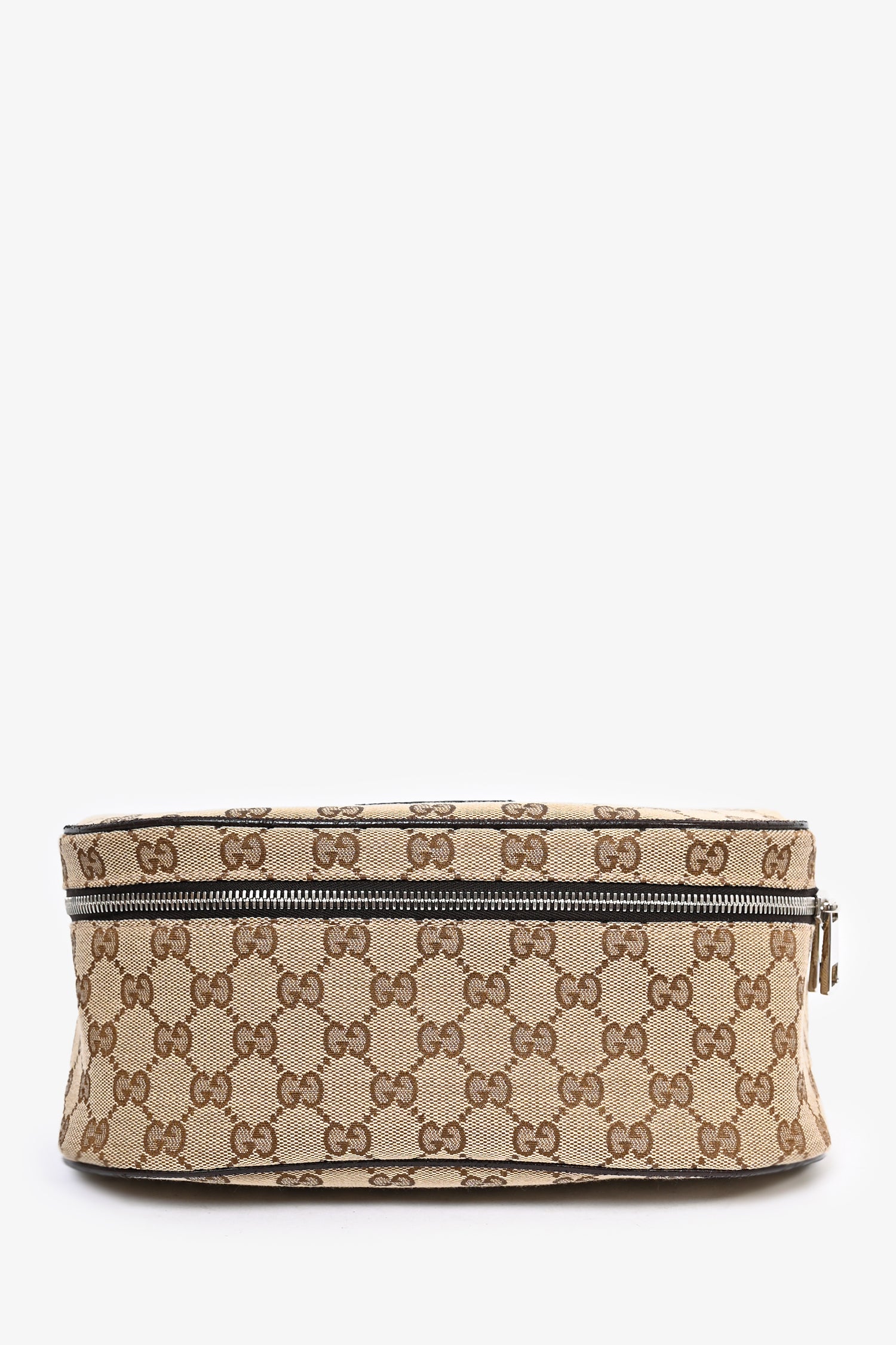 Refresh availabilityGucci Brown Canvas GG Supreme Belt Bag. Front two-way zip closure. Dark brown textile interior lining. Open interior. Adjustable strap. Silver-tone hardware.