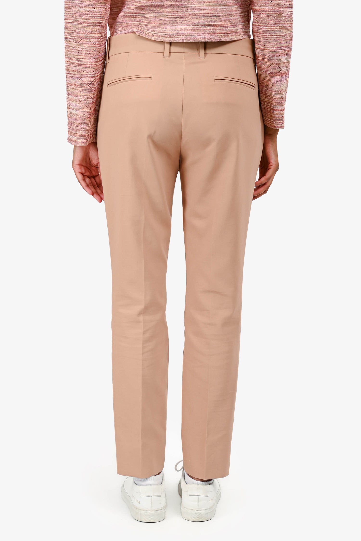 Refresh availabilityGucci Brown Cotton Tapered Pant. Zip fly with hook-and-bar closure. Belt loops. Side and back welt pockets. Tonal stitching.