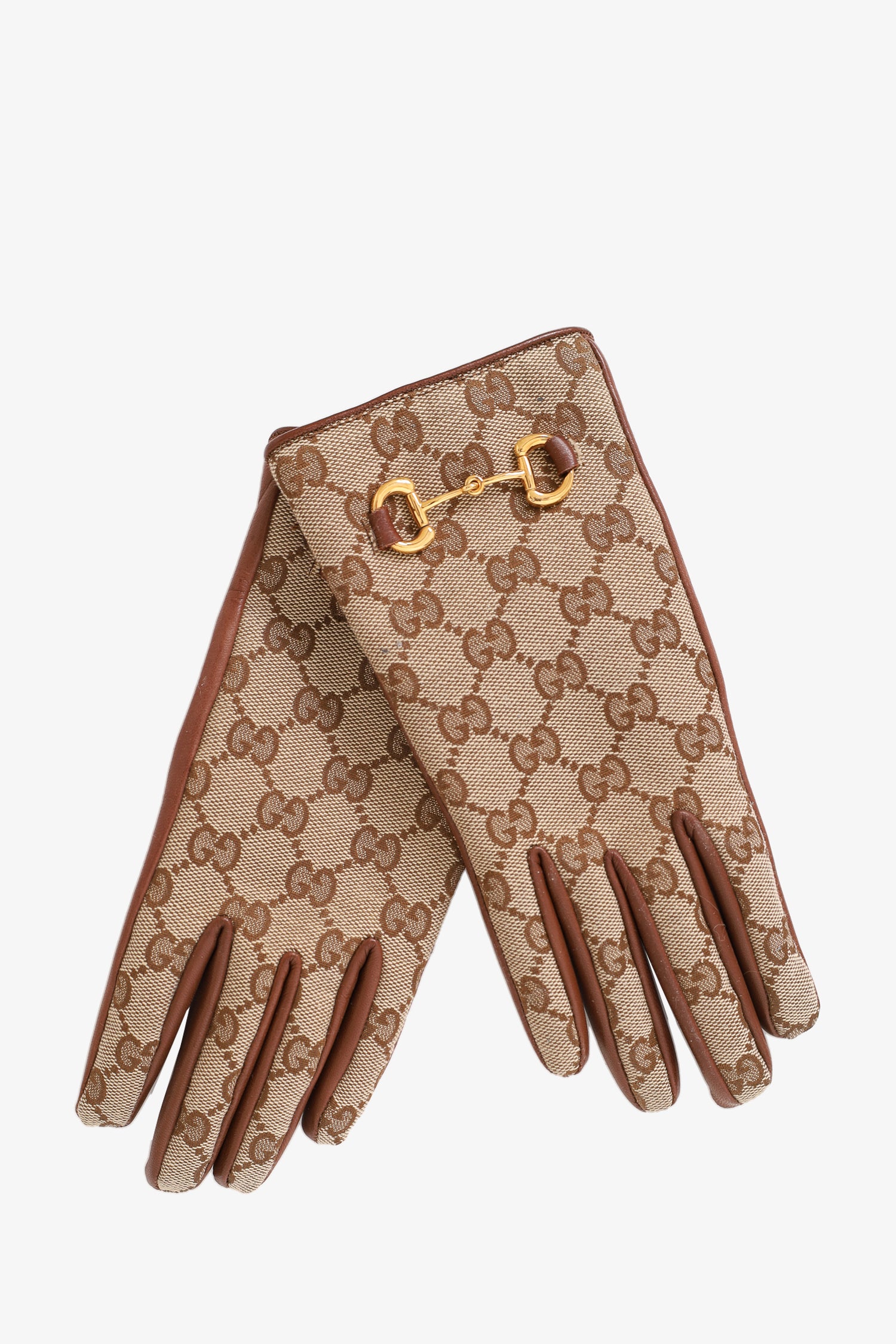 Gucci Brown GG Canvas Horsebit Gloves Size L