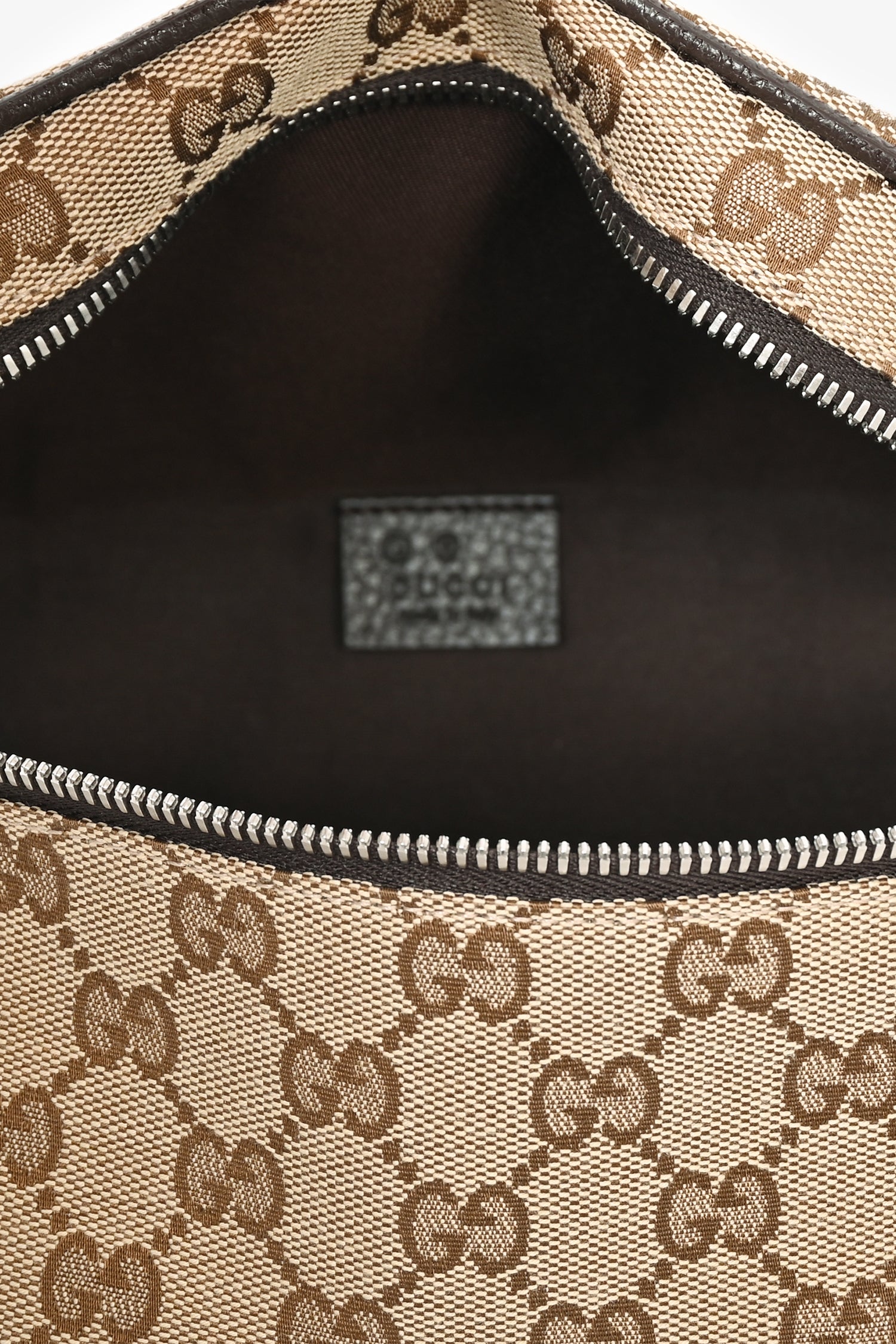 Refresh availabilityGucci Brown GG Supreme Canvas Waist Bag. Top two-way zip closure. Dark brown textile interior lining. Open interior. Outer rear zip pocket. Adjustable strap. Silver-tone hardware. Tonal stitching.