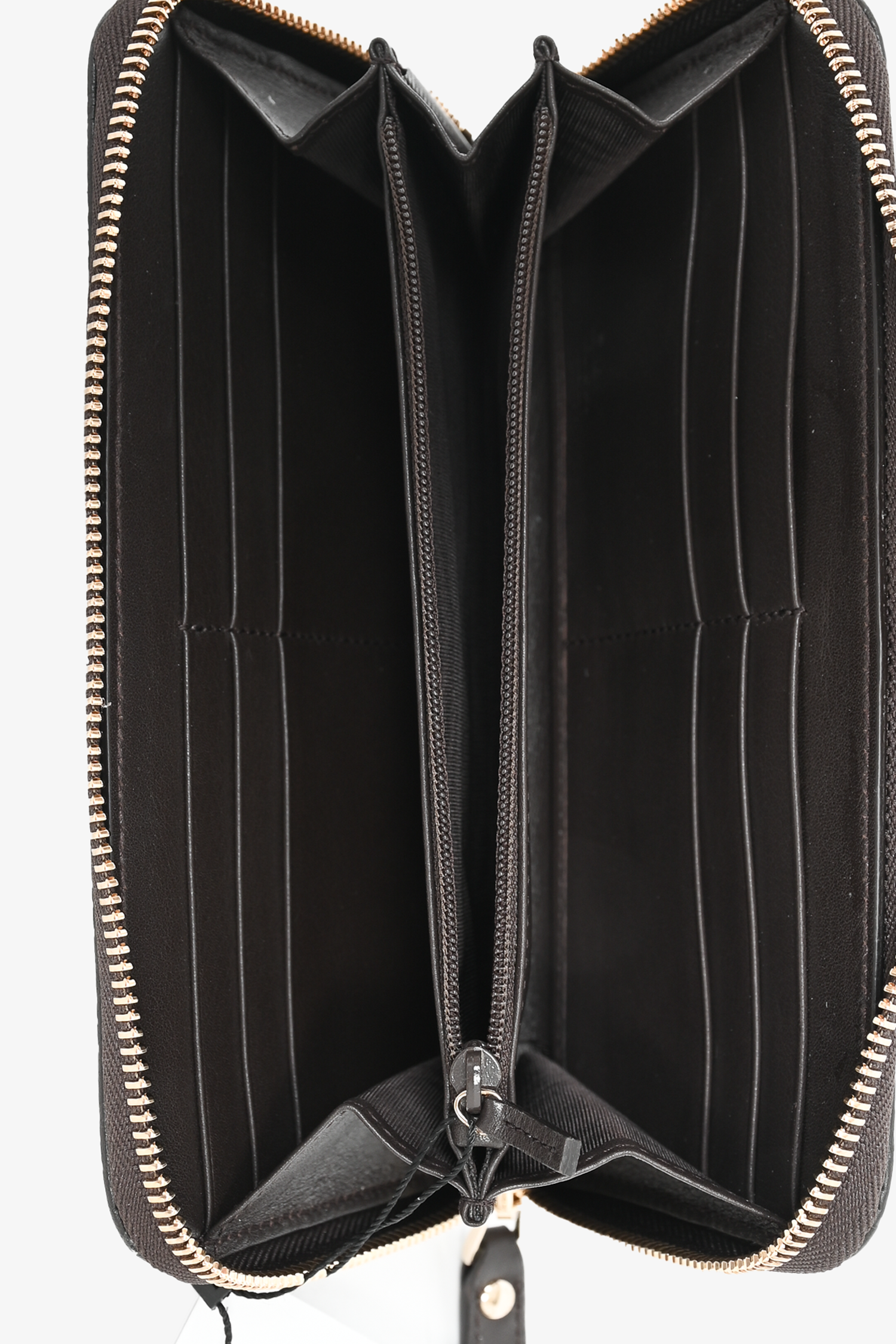 Refresh availabilityGucci Brown Guccissima Leather Long Wallet. Zip closure. 2 compartments. 1 interior wide zip pocket. 12 card slip pockets. Silver-tone hardware. Gucci logo patch at front. Tonal stitching.