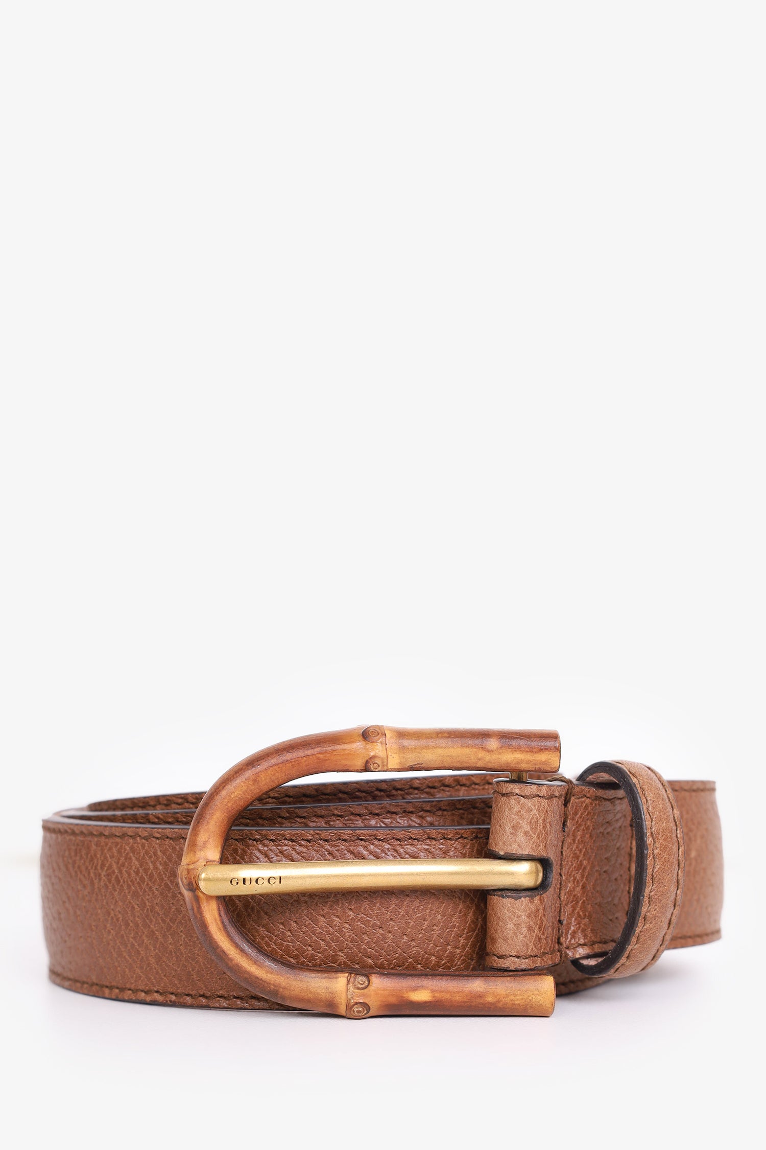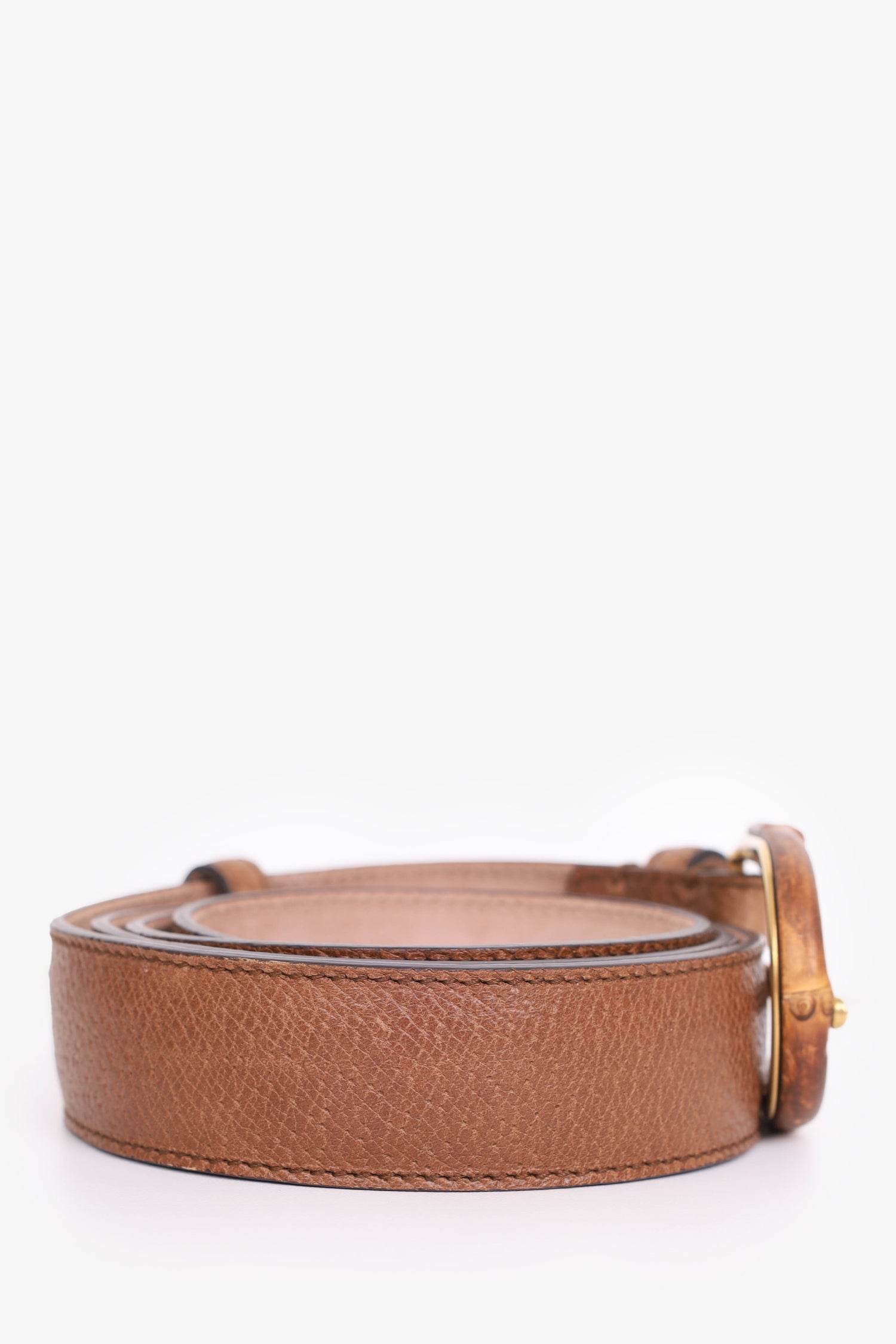 Refresh availabilityGucci Brown Leather Bamboo Buckle Belt. Adjustable pull throughout buckle closure. Tonal stitching.