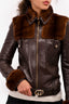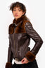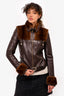 Gucci Brown Leather/Fur Detail 'GG' Belt Jacket Size 40