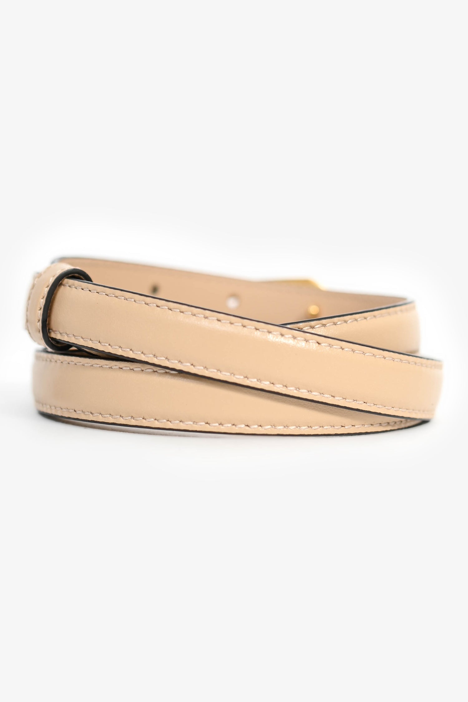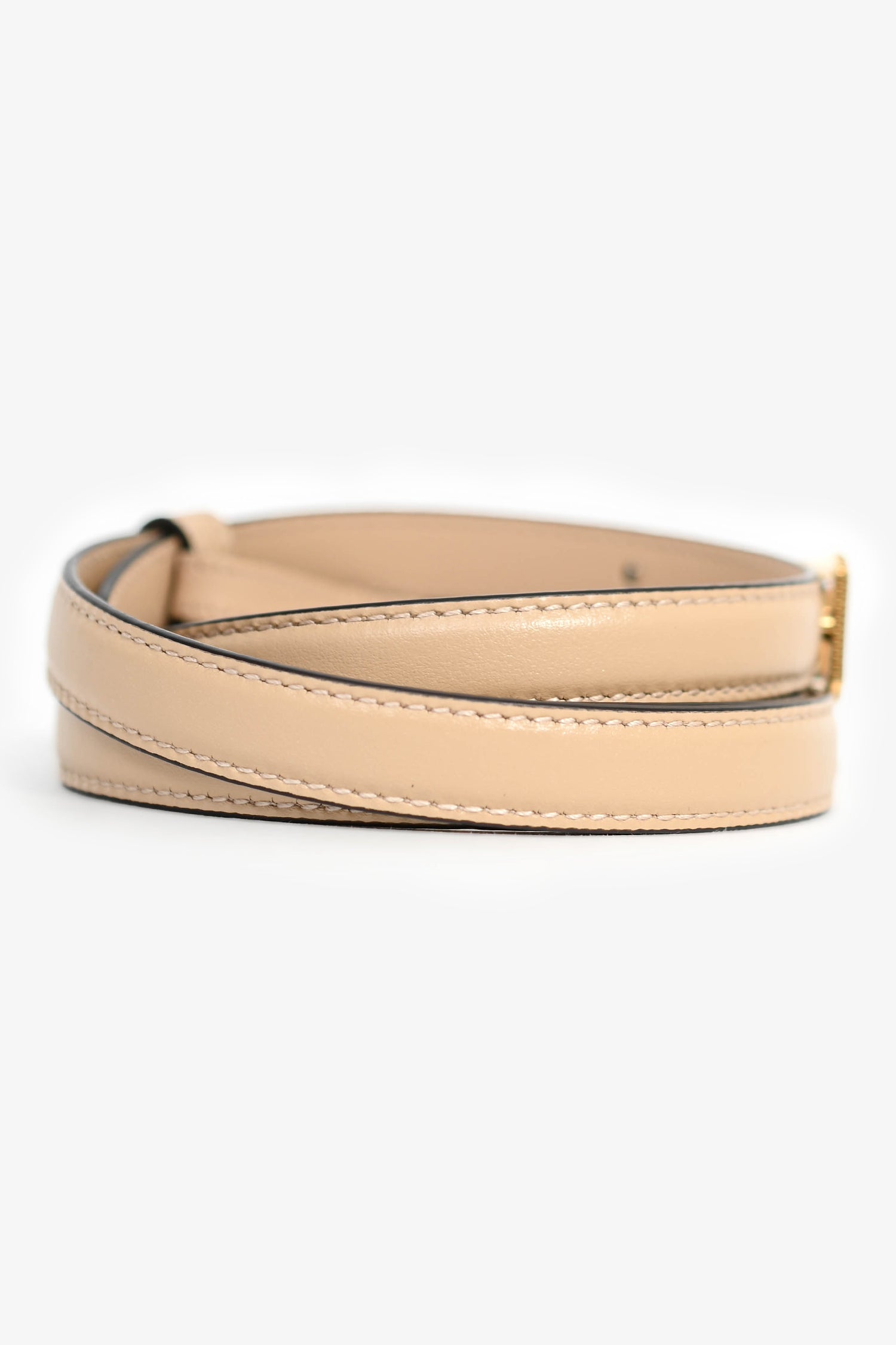 Refresh availabilityGucci Beige Leather GG Skinny Belt. Front anchor buckle closure. Gold-tone hardware. Tonal stitching