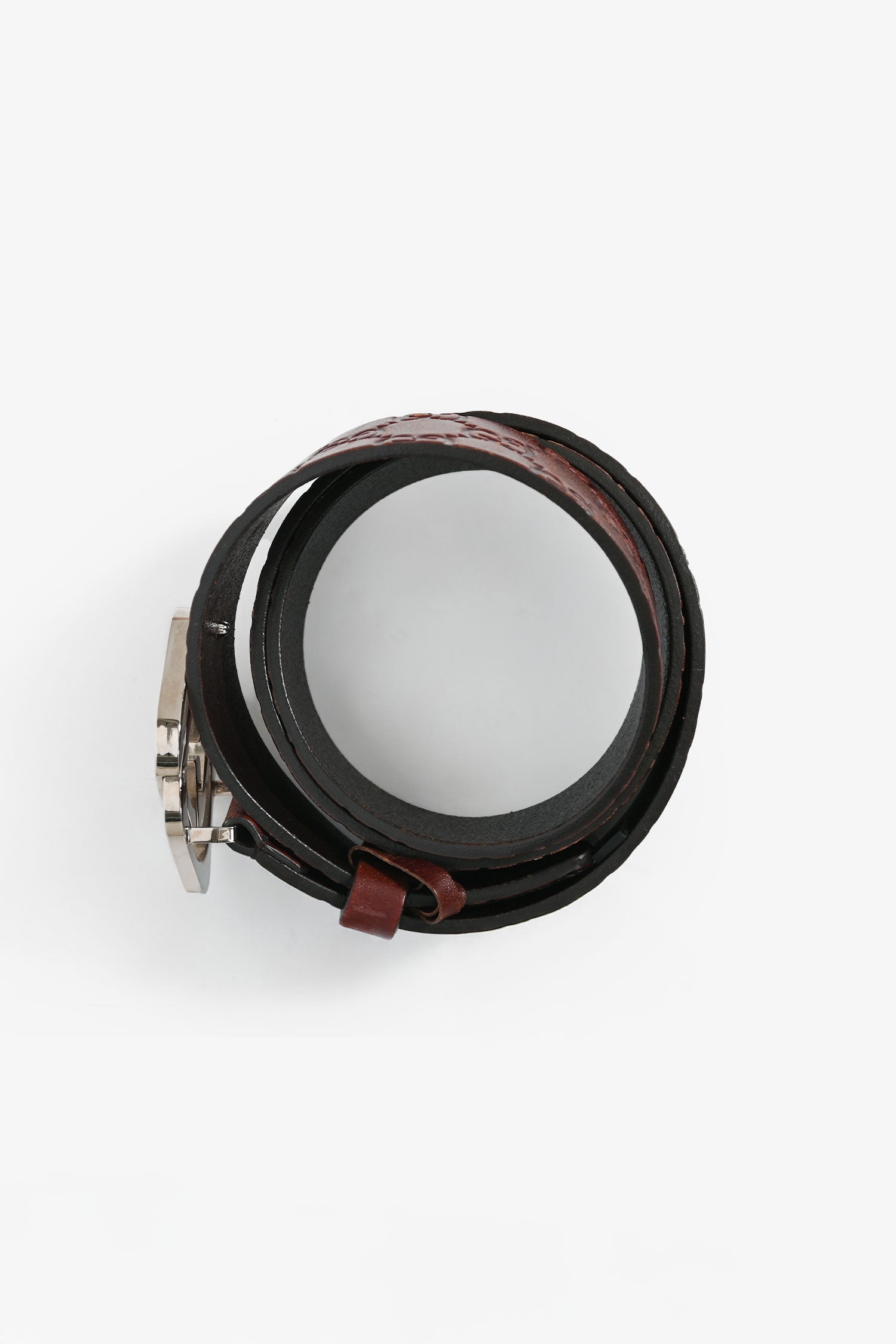 Refresh availabilityGucci Brown Leather Guccisima GG Buckle. Anchor buckle closure. Silver-tone hardware. Tonal stitching.