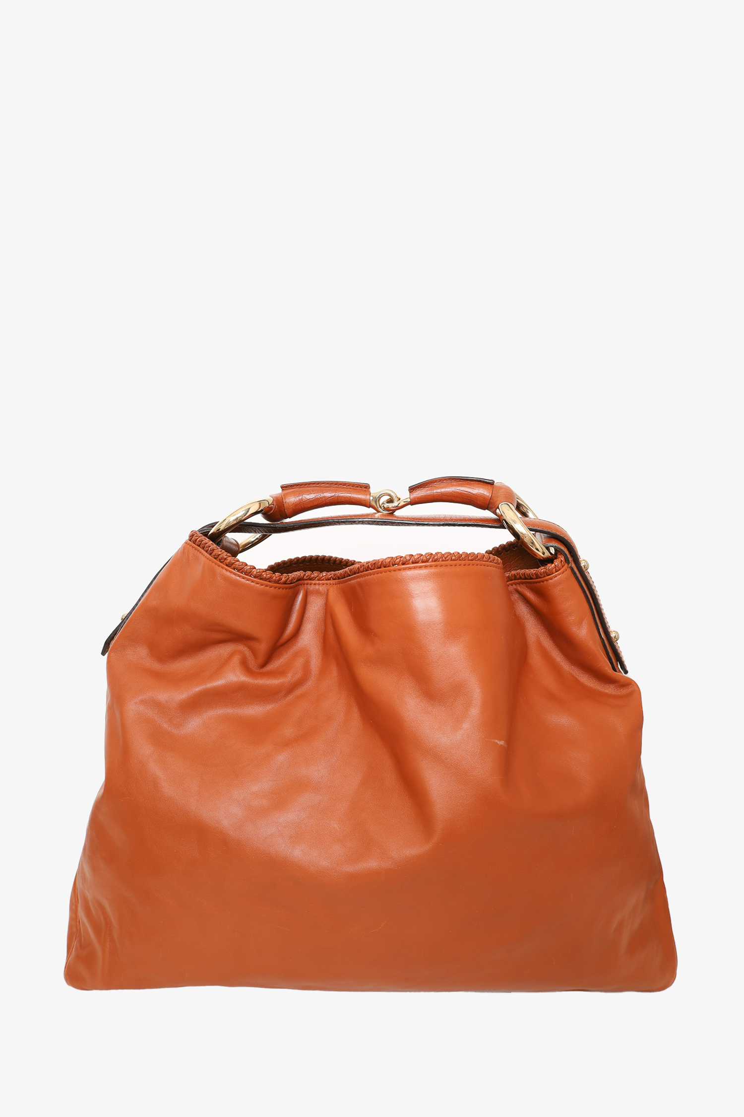 Refresh availabilityGucci Brown Leather Large Horsebit Hobo Bag. Open top. Large wall pocket with zipper closure. Gold-tone hardware. Tonal stitching.