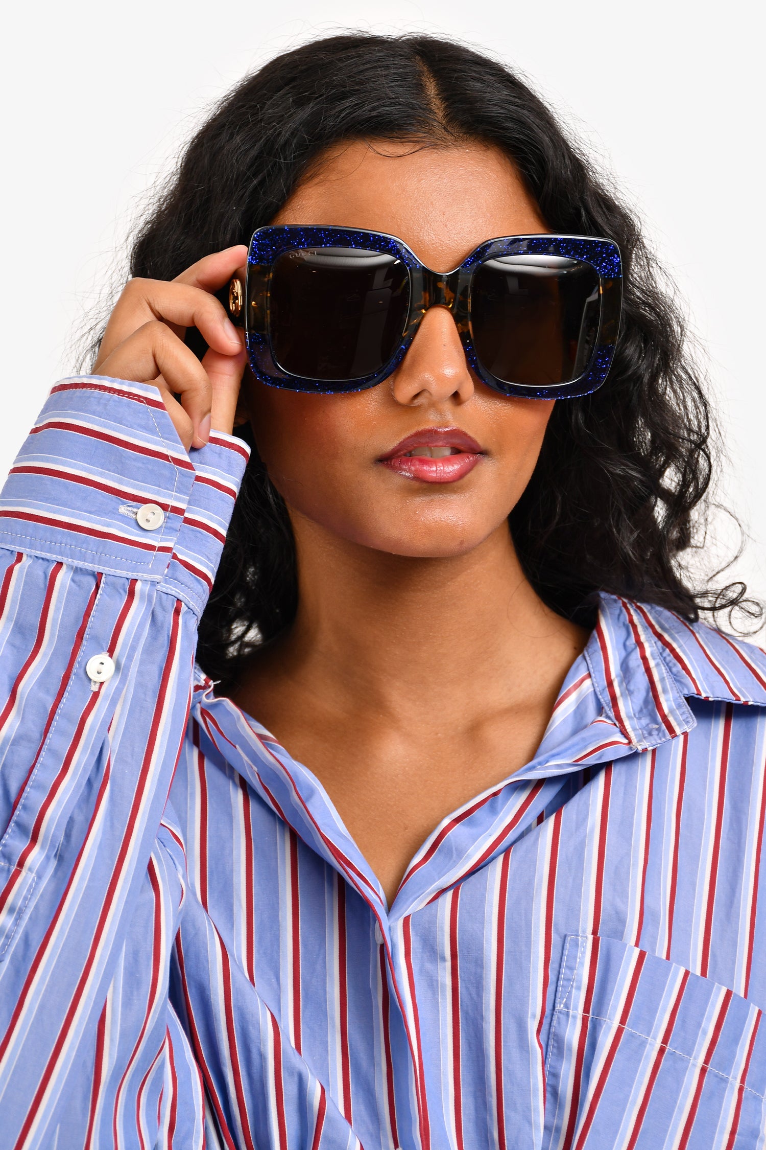 Gucci Brown/Navy Tortoise Shell/Sparkled Square Framed Sunglasses