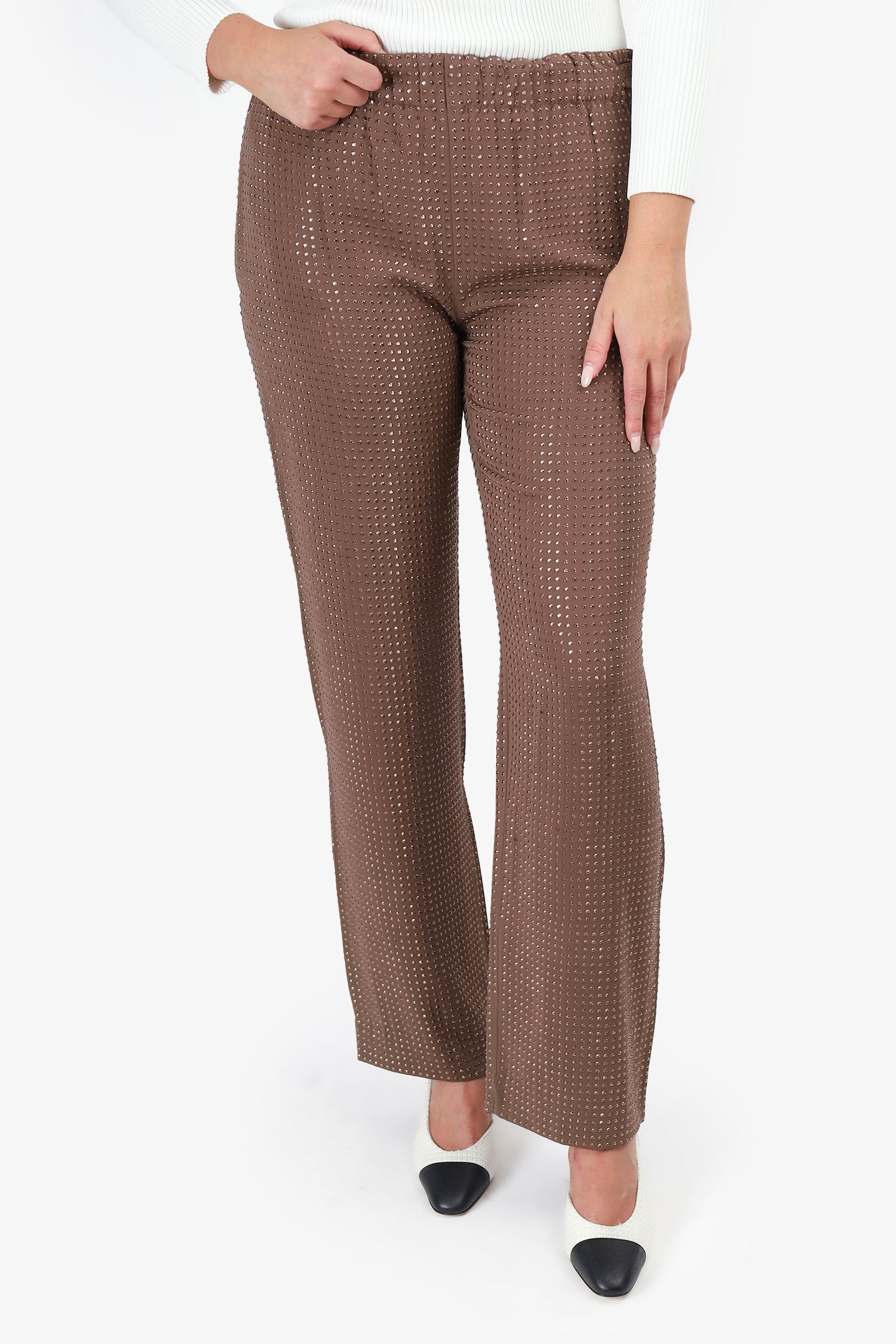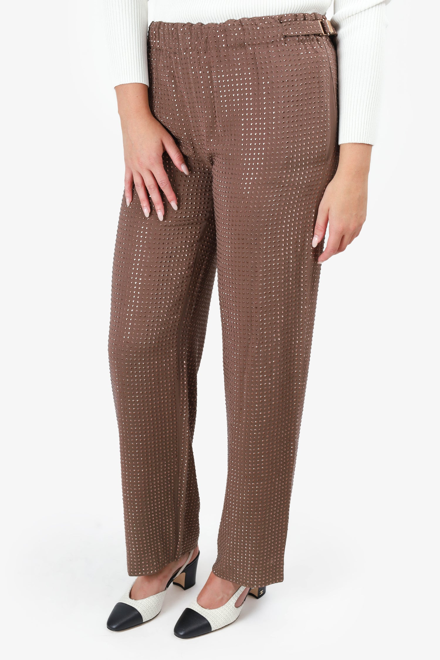 Gucci Brown Rhinestone Wide Leg Pants Size 36