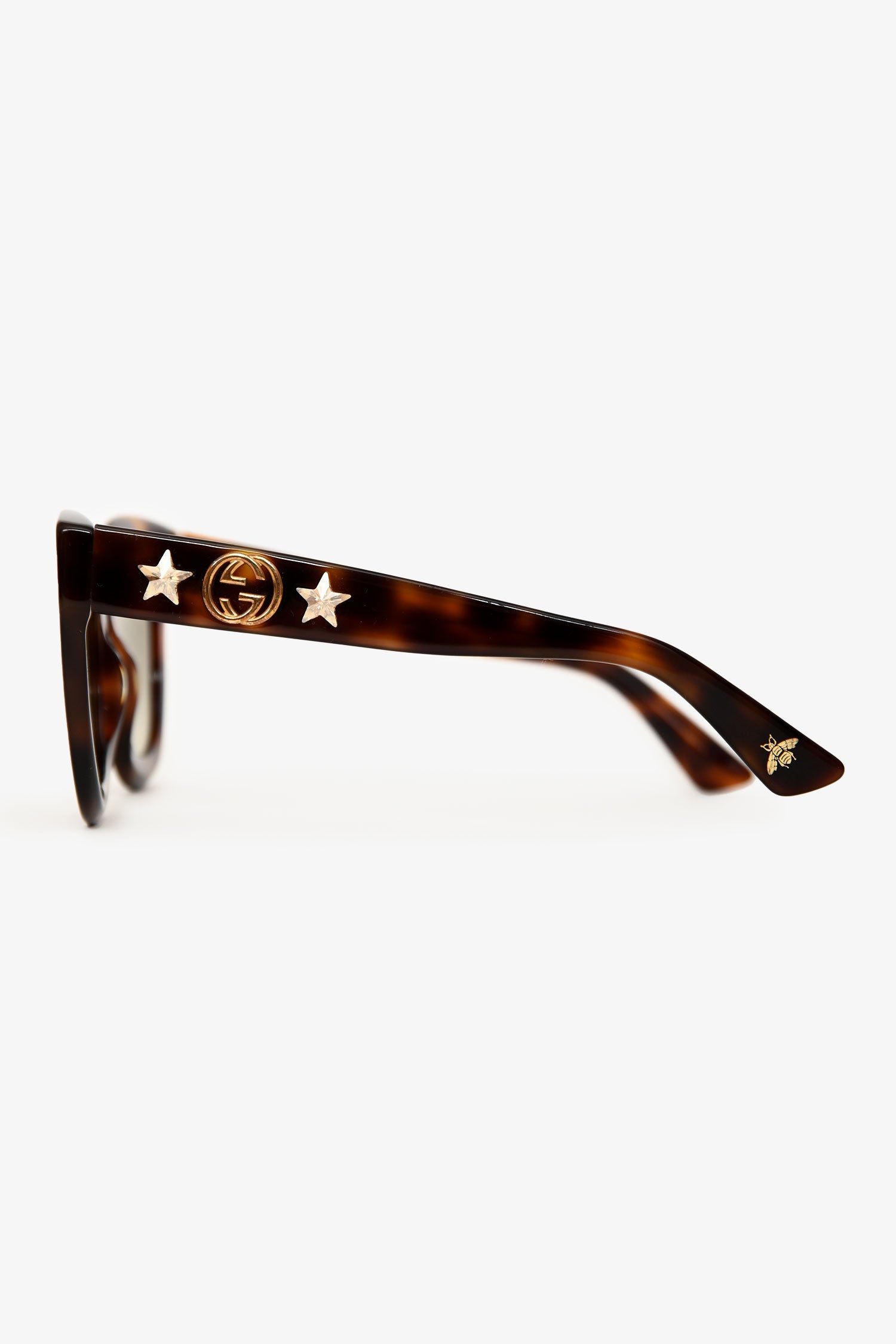 Refresh availabilityGucci Brown Tortoise GG Star Handle Sunglasses. Built-in nose pads. Gold-tone hardware.