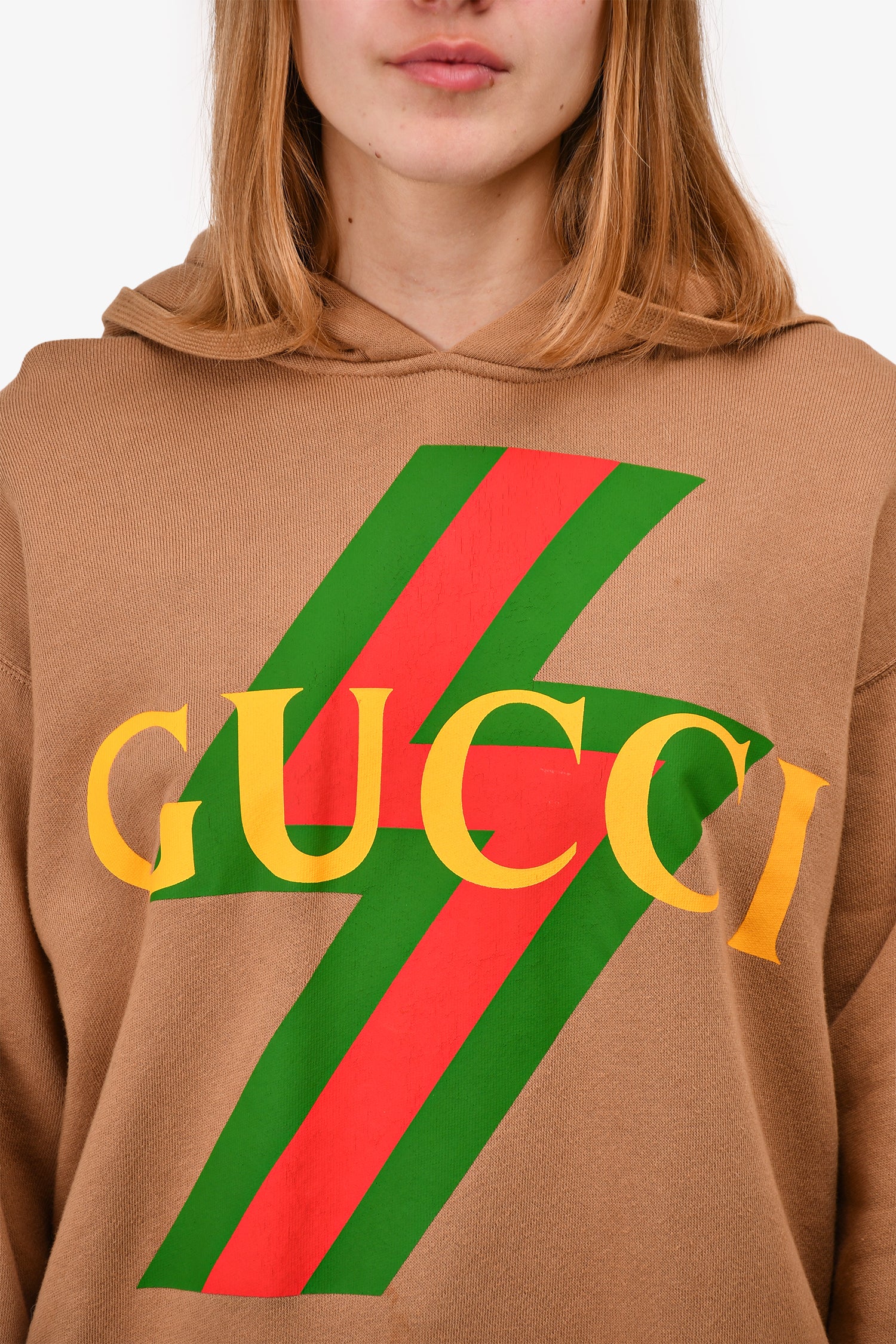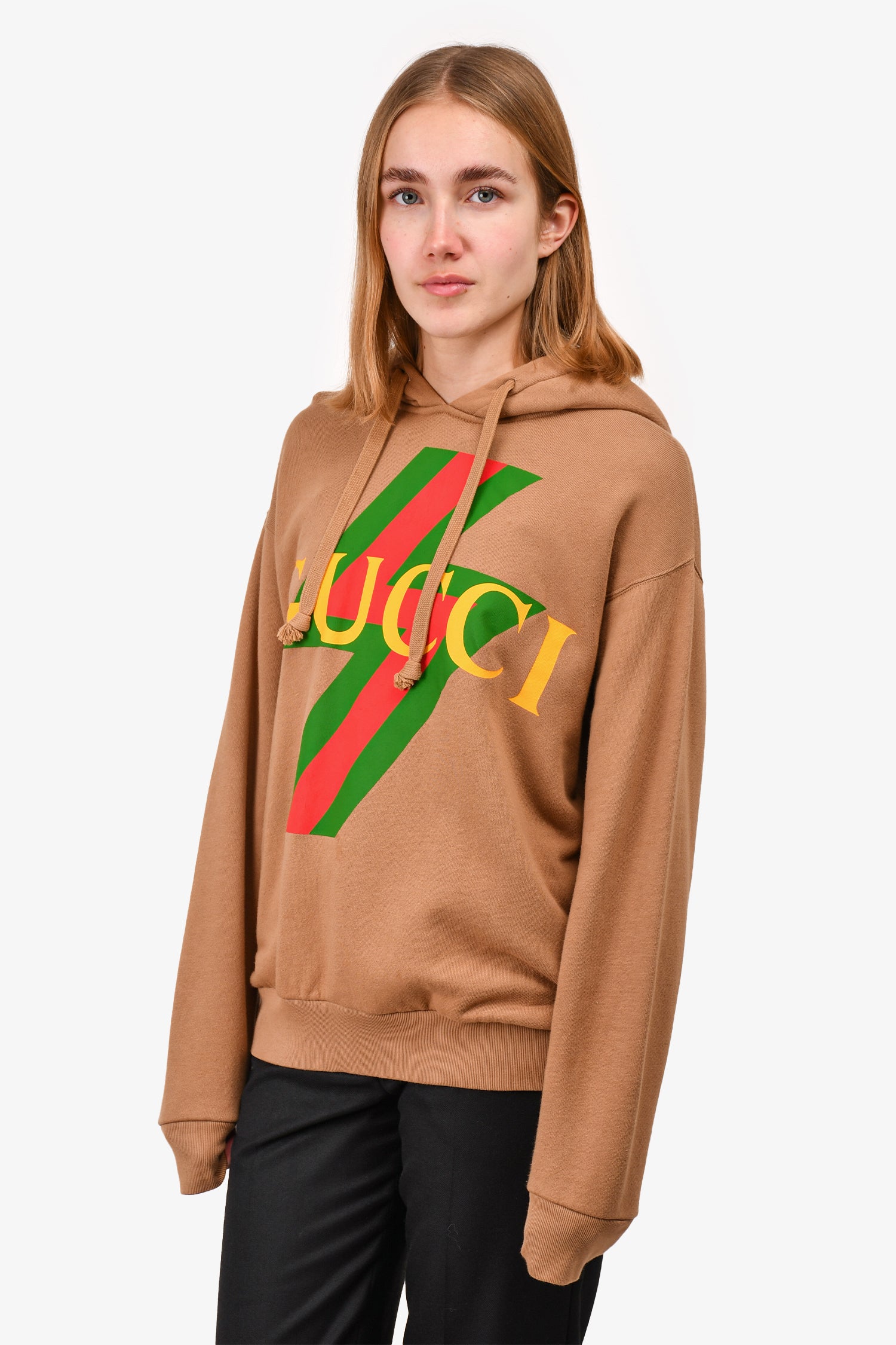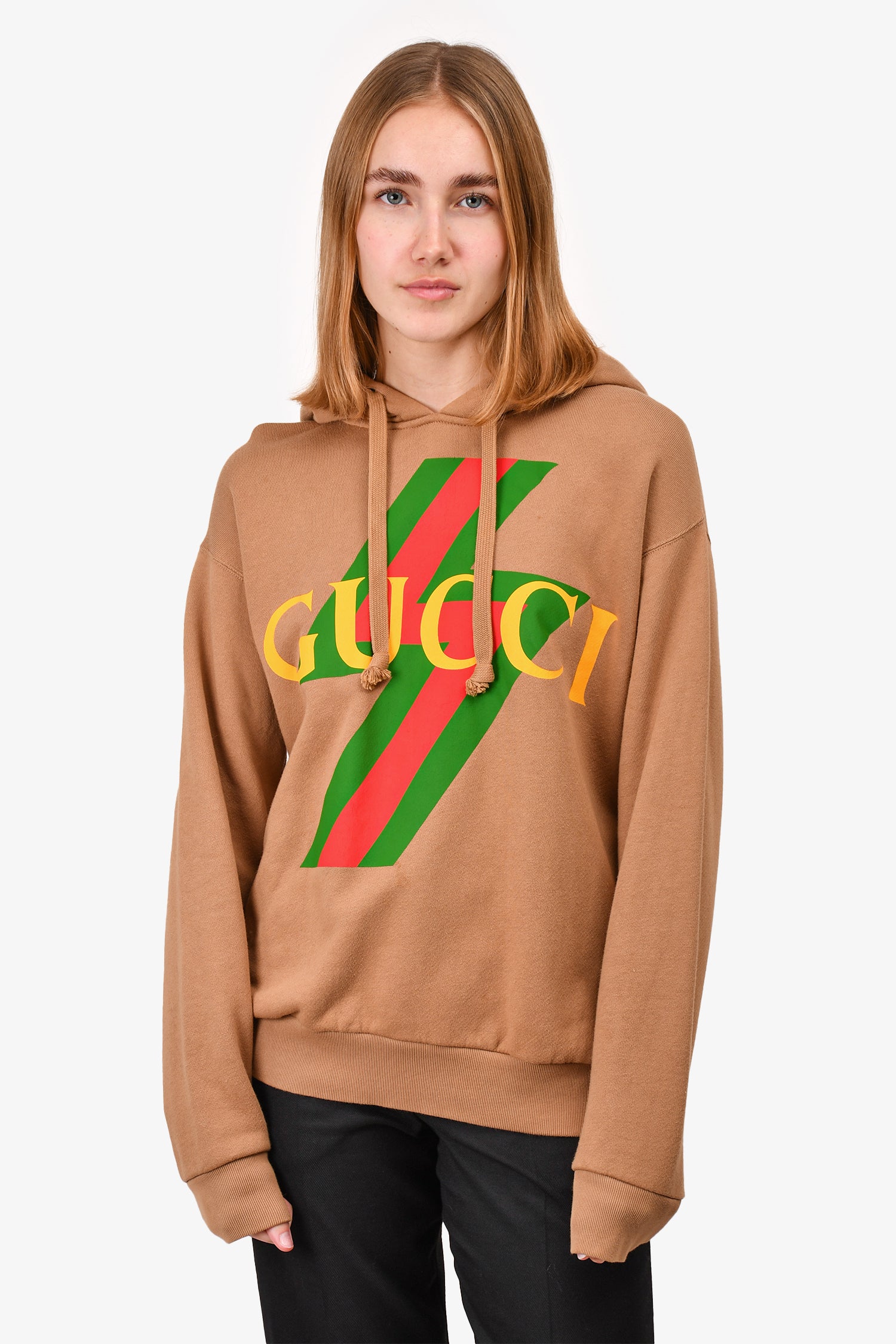 Refresh availabilityGucci Brown Web Lightning Logo Hoodie Mens. Pull-on. Drawstring hood. Tonal stitching.
