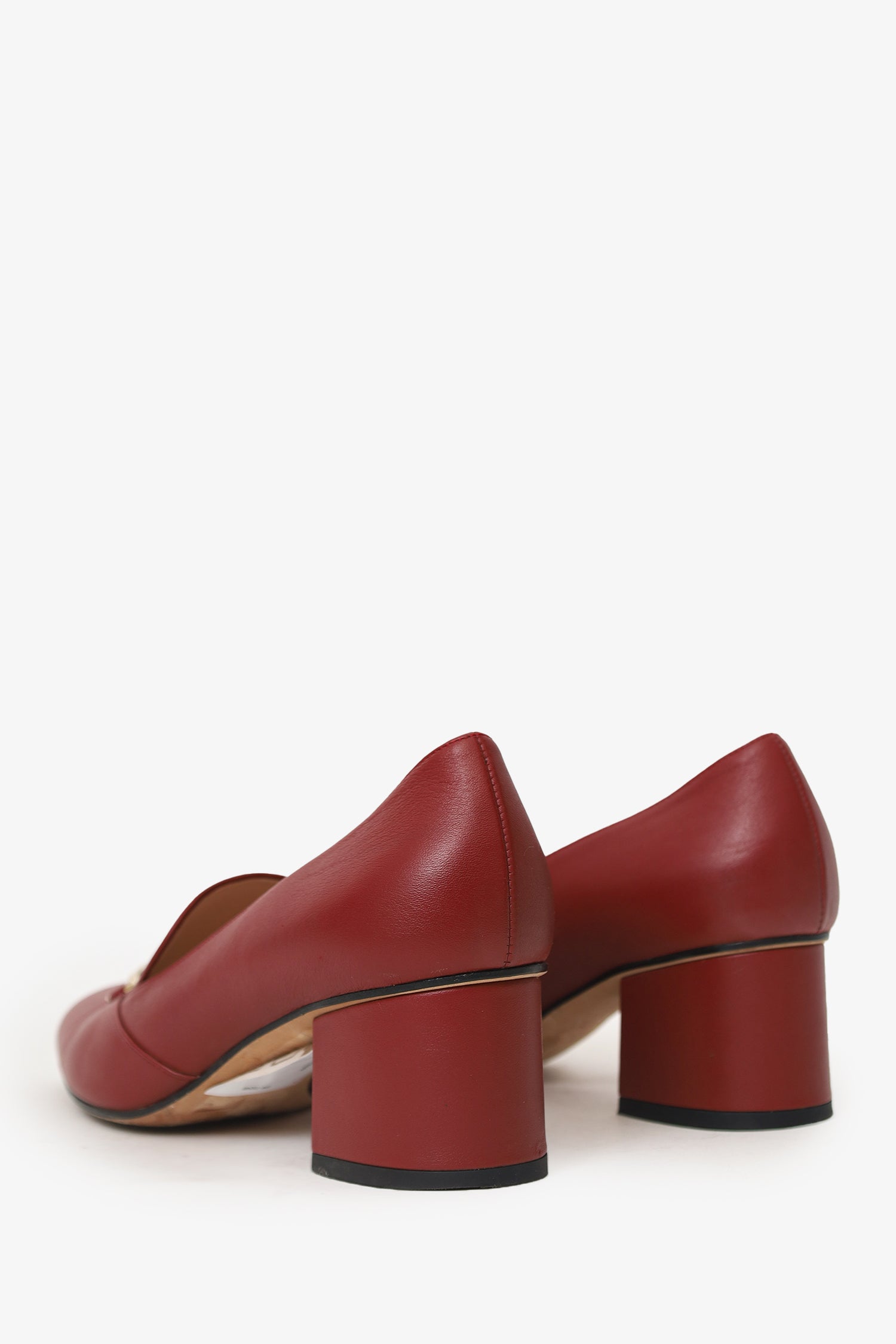 Gucci Burgundy Leather Horsebit Block Heels Size 38