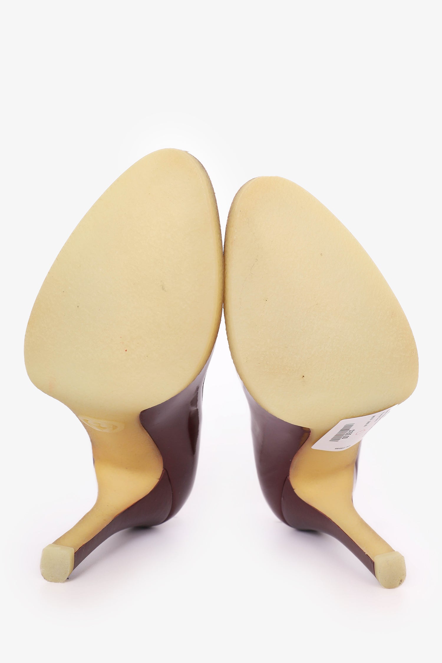 Gucci Burgundy Patent Leather Round Toe Pumps Size 9