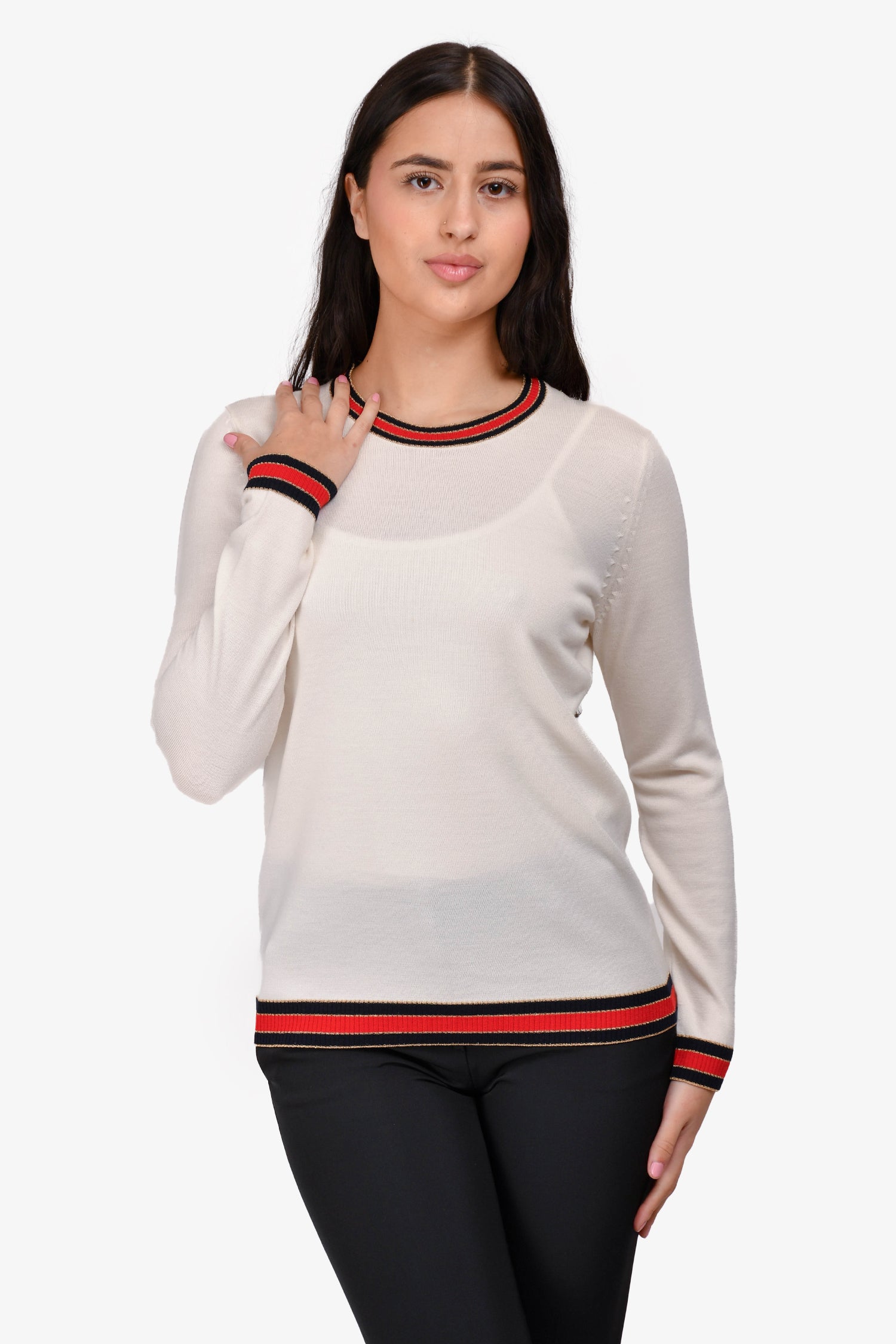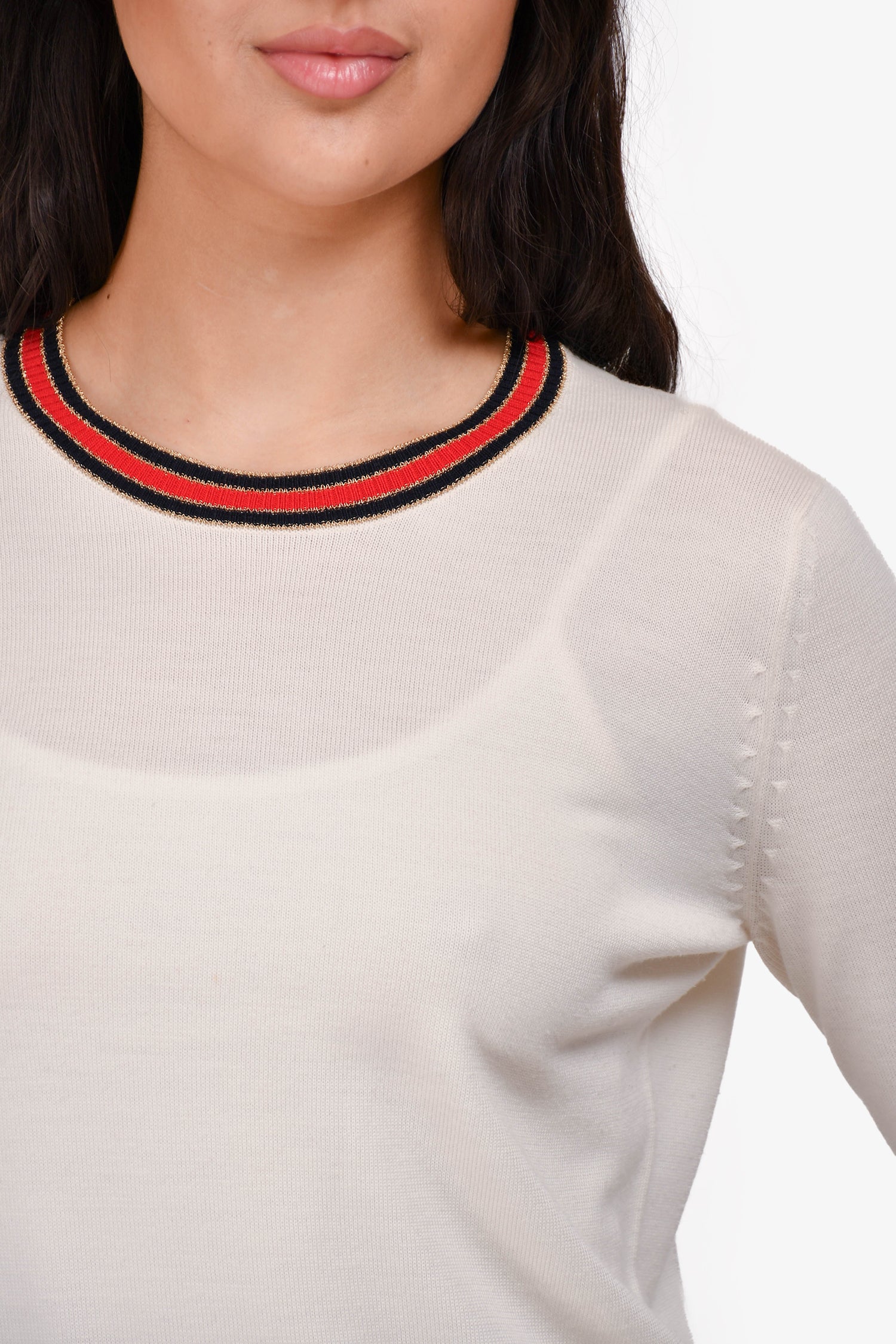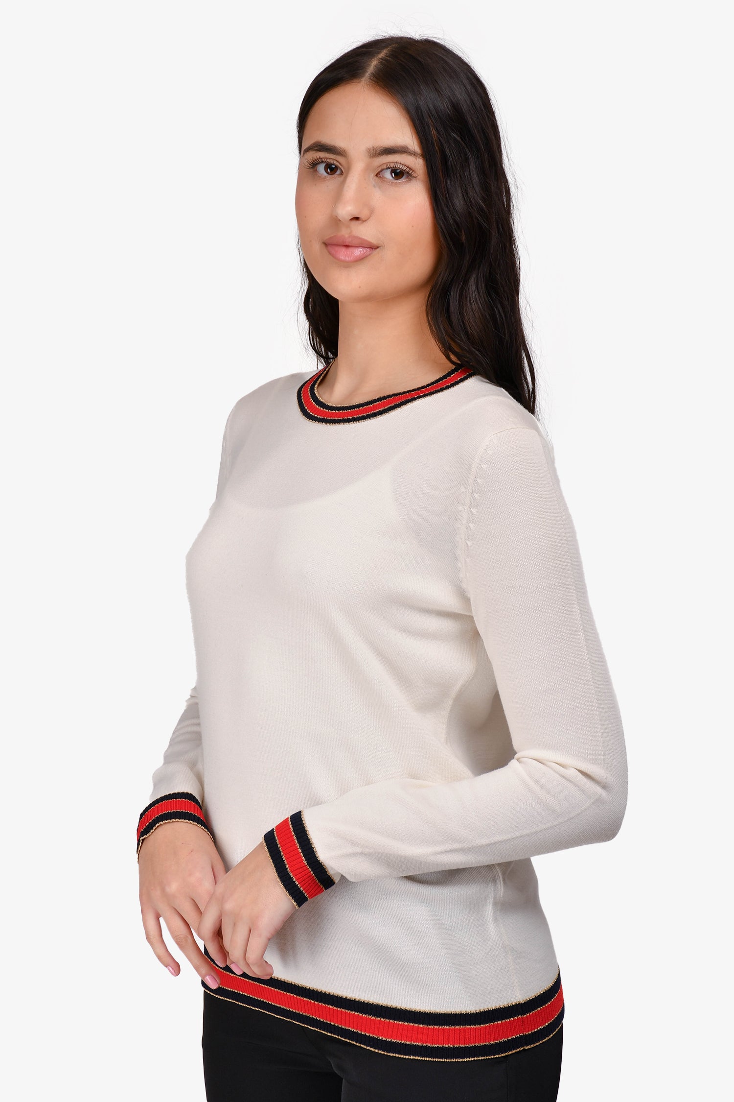 Refresh availabilityGucci Cream/Red/Black Wool Trim Detail Sweater. Lightweight. Semi-sheer. Tonal stitching.