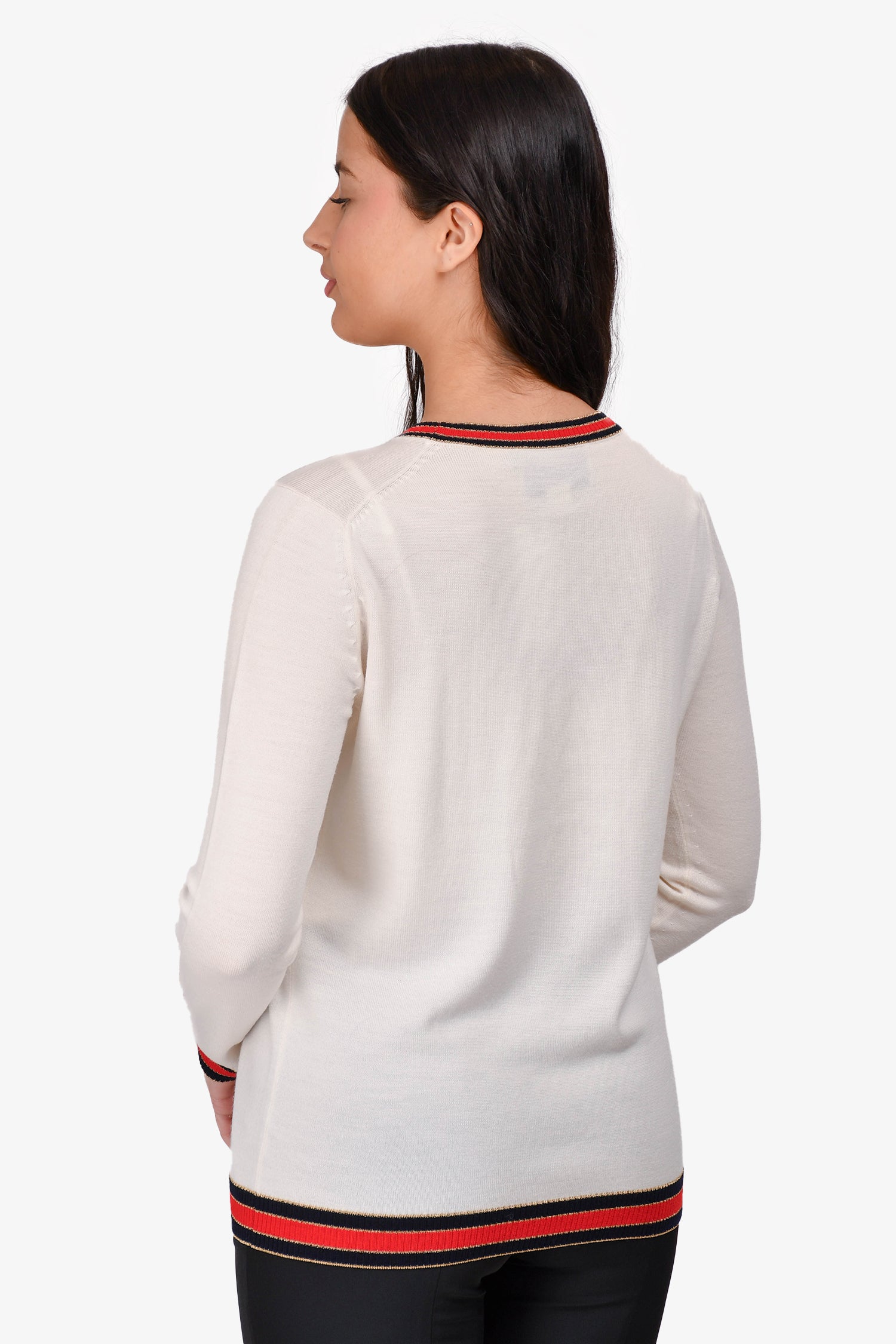 Gucci Cream/Red/Black Wool Trim Detail Sweater Size XL