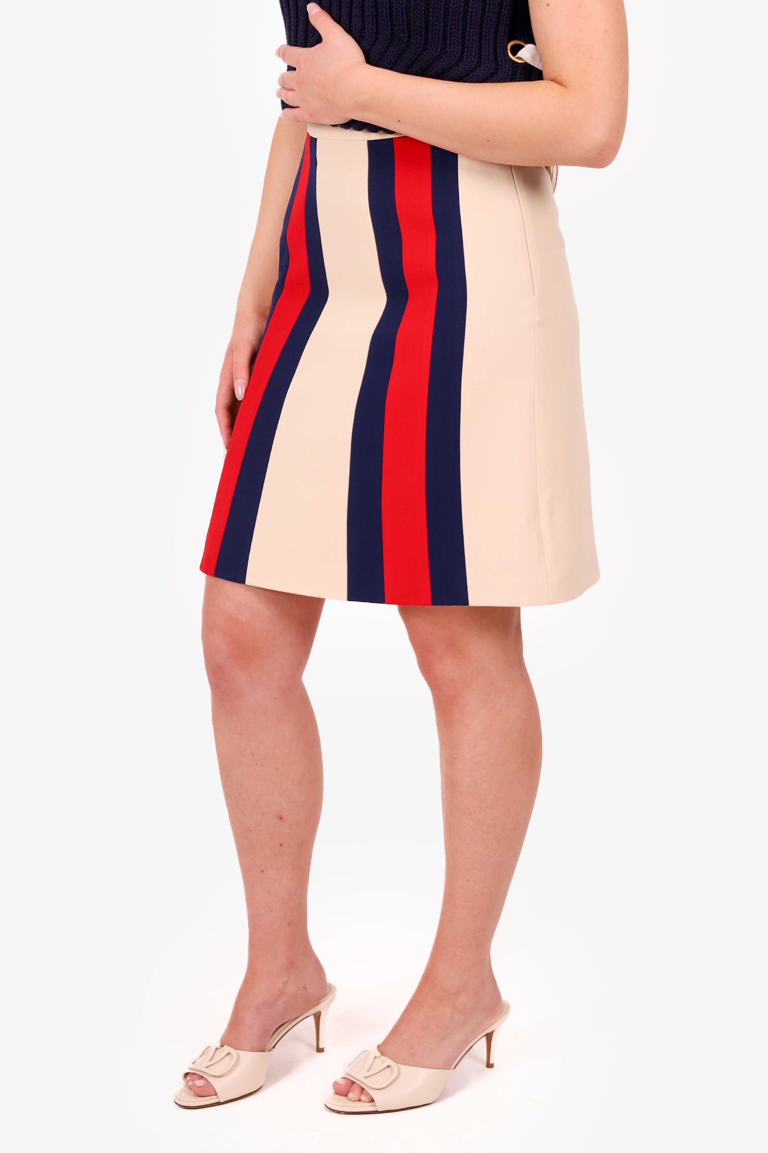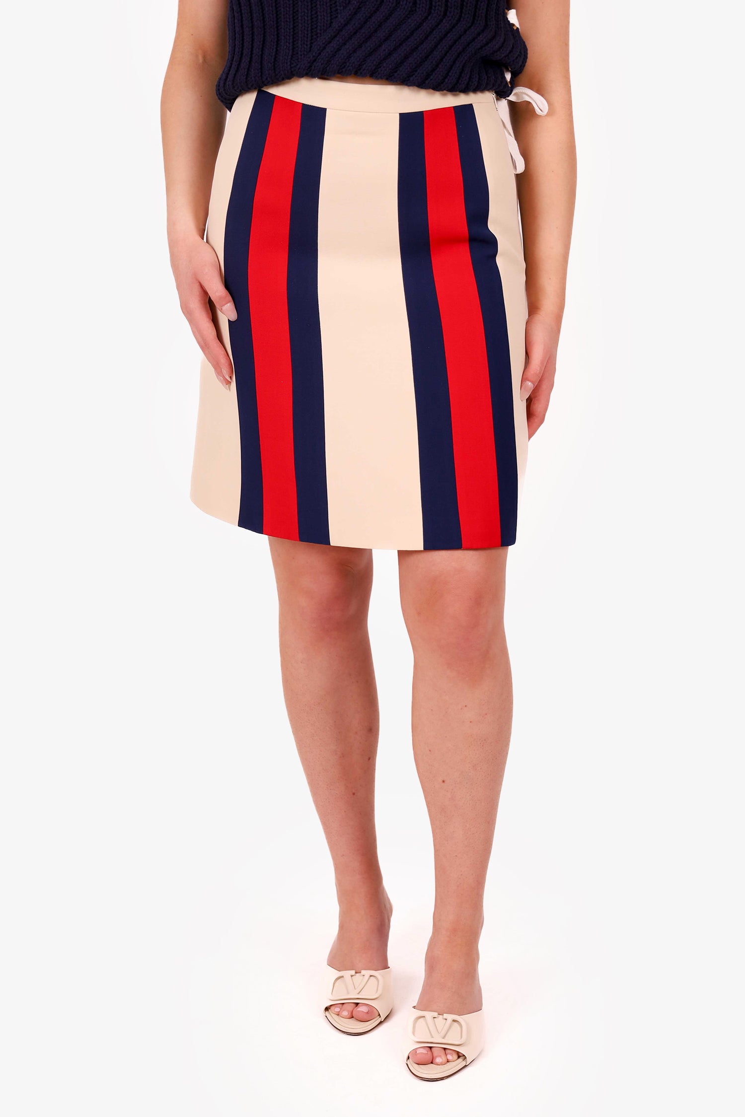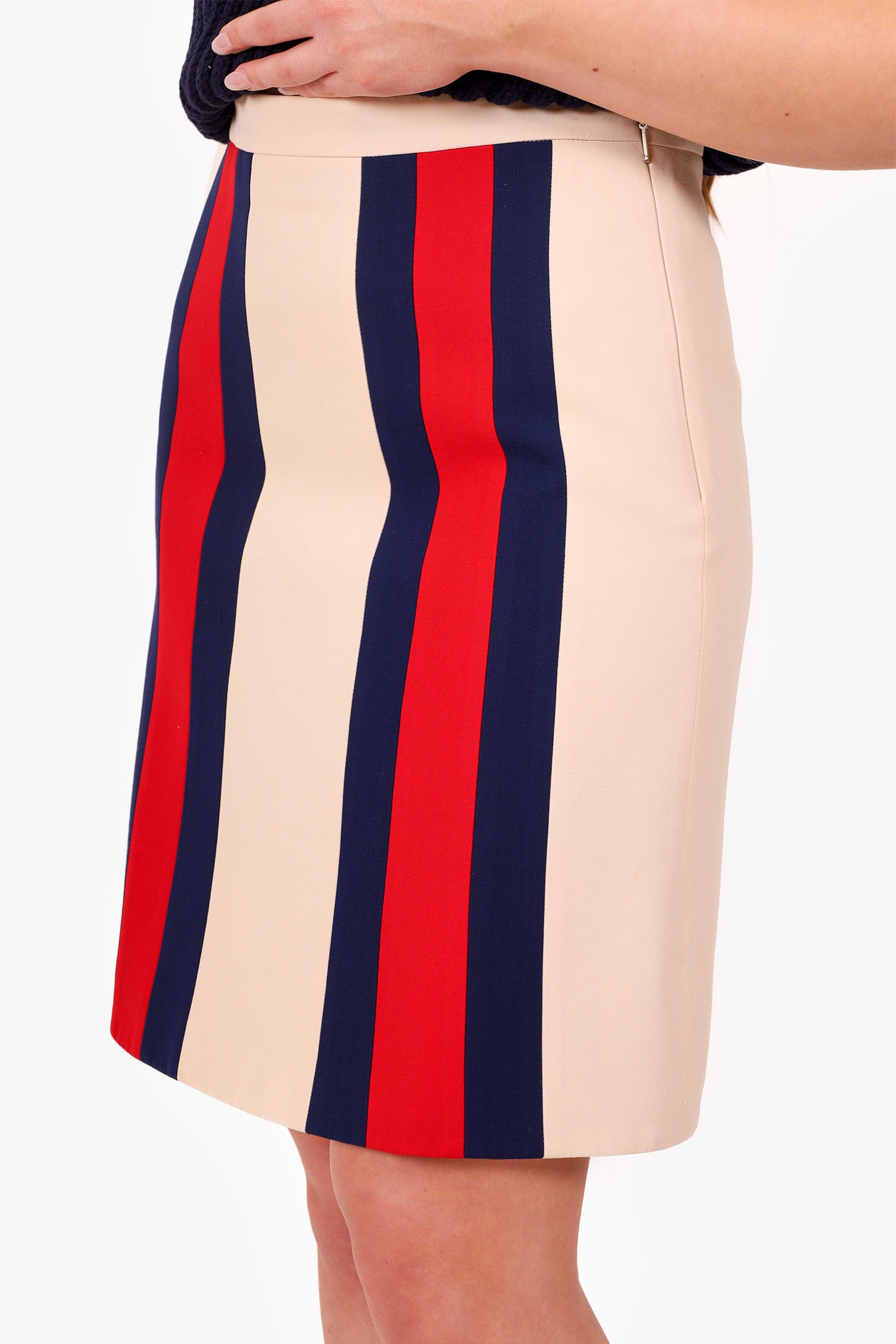 Refresh availabilityGucci Cream/Red/Navy Striped Skirt. Slip-on. Side zip with hook closure. Lined interior. Tonal stitching.