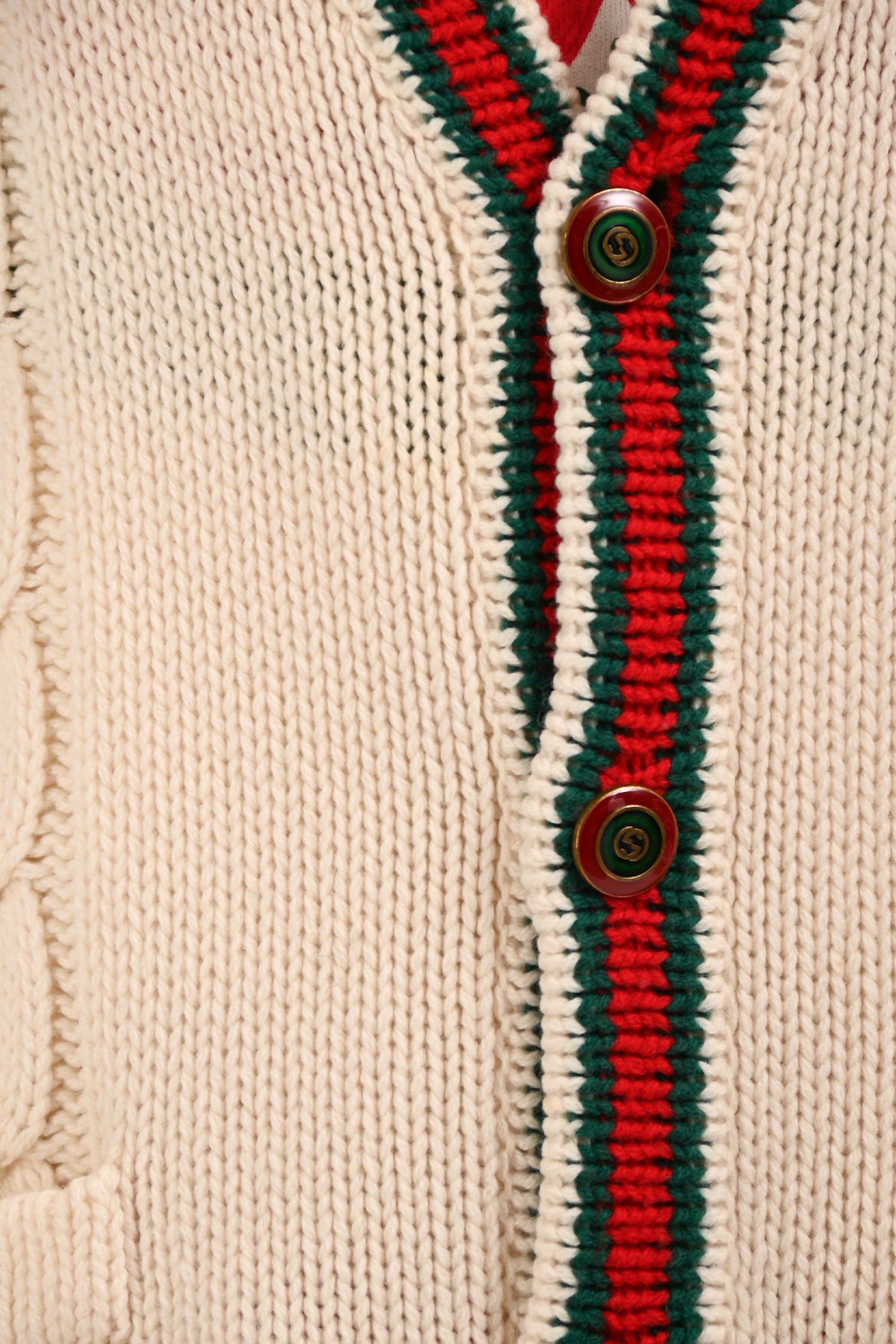 Gucci Cream/Web Wool Knit Cardigan Size S Mens