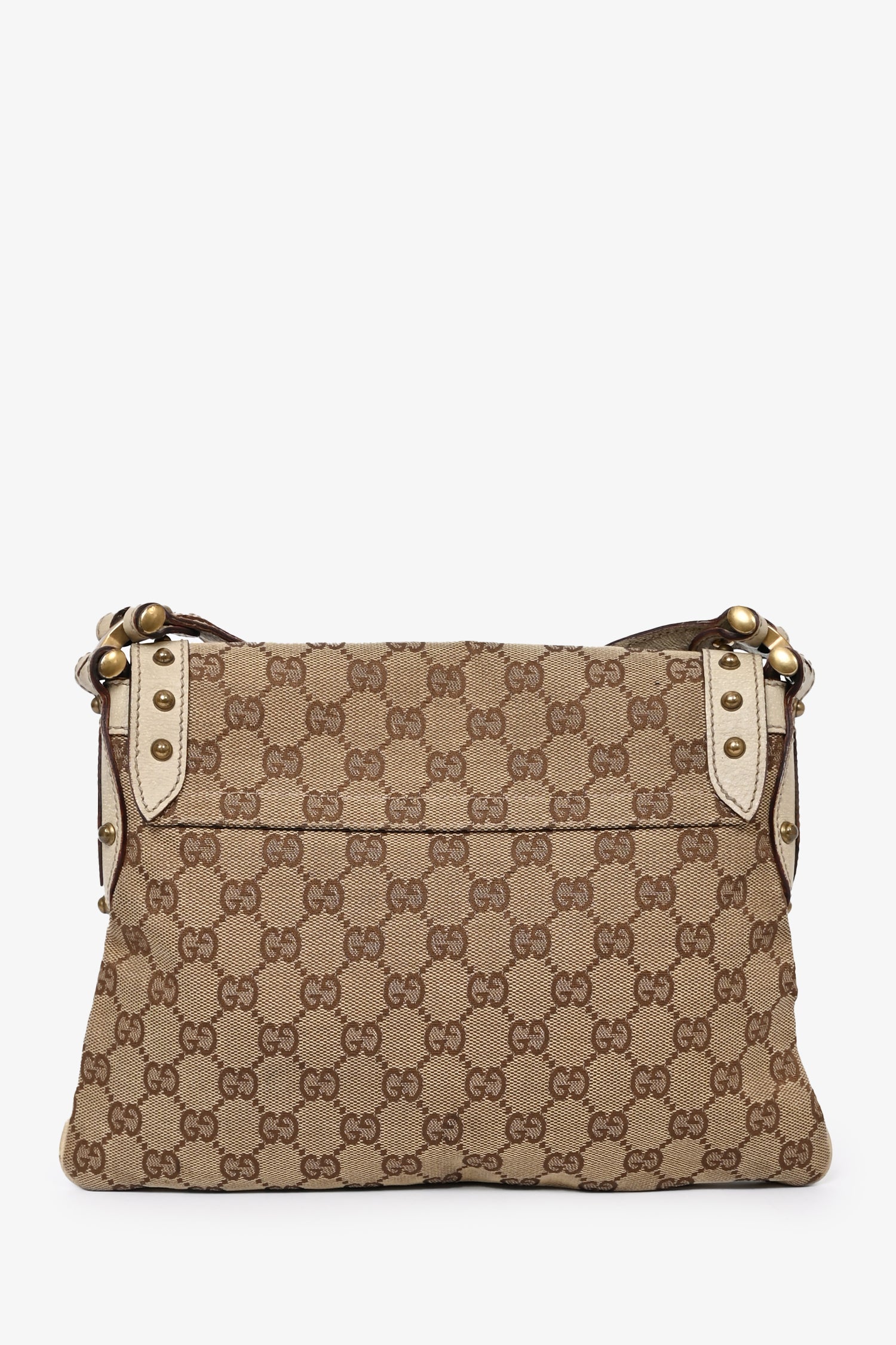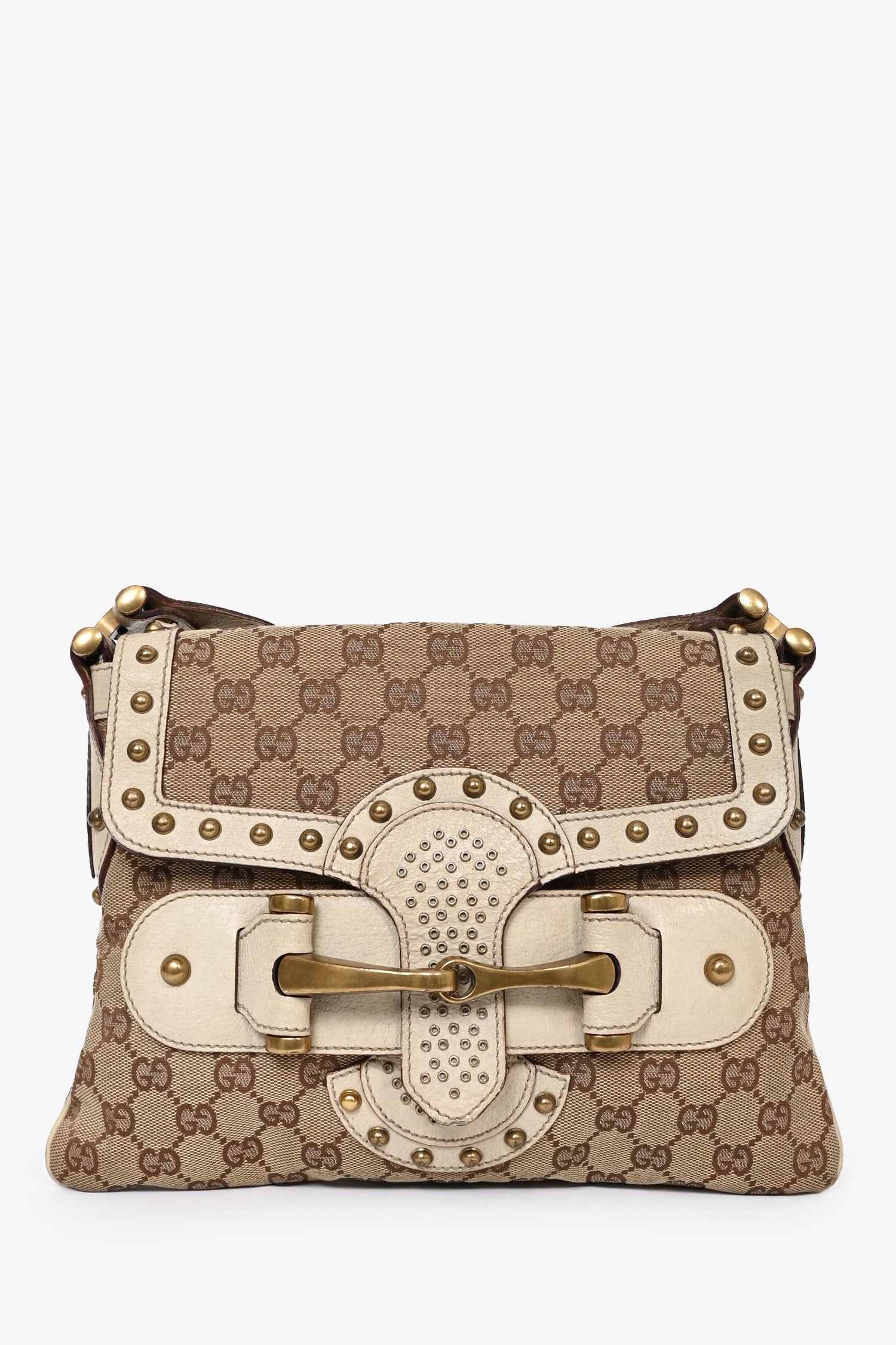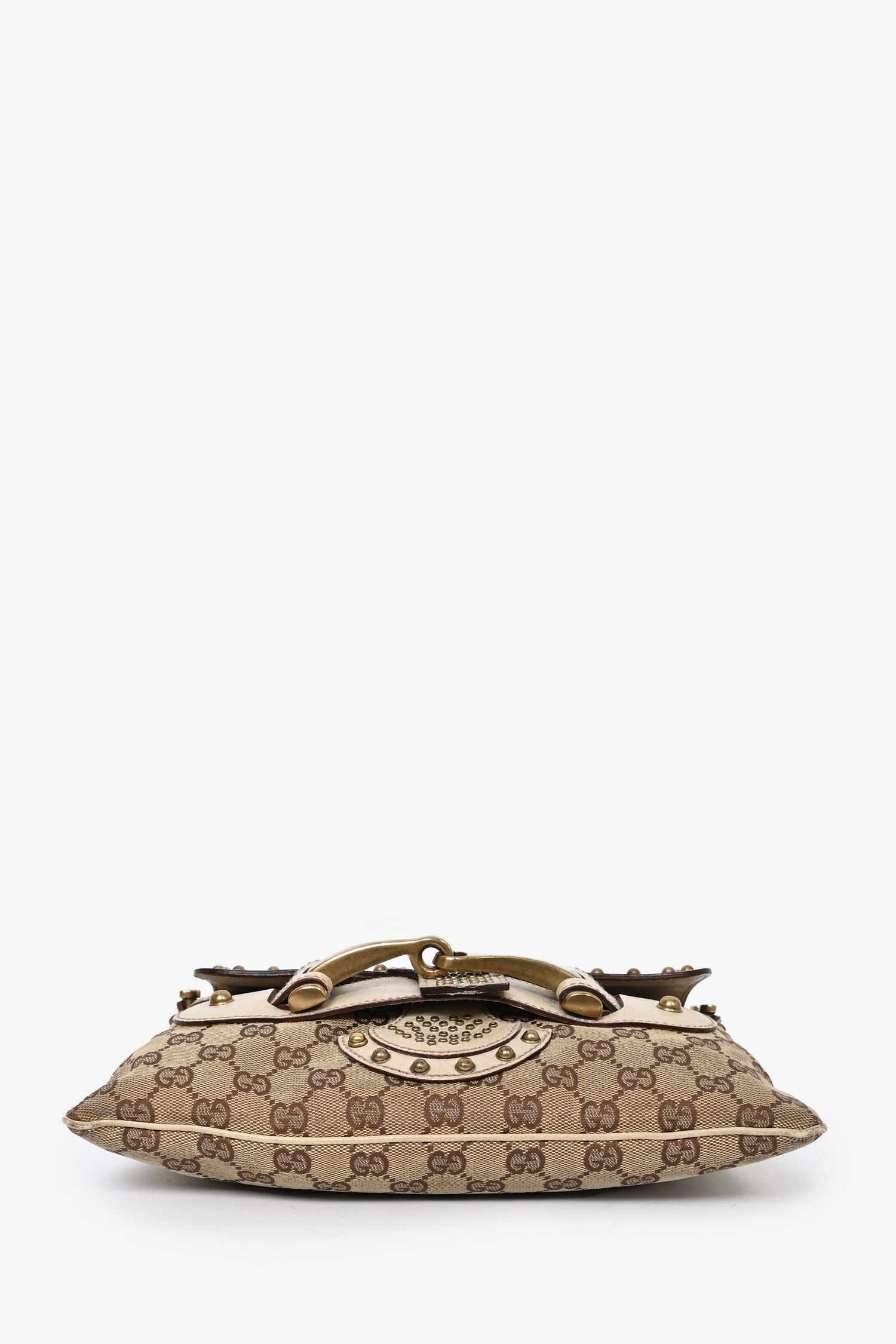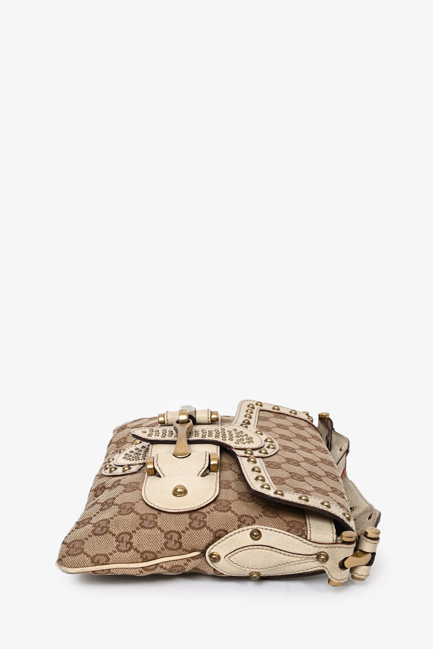Gucci GG Canvas/Cream Leather Studded Pelham Web Shoulder Bag