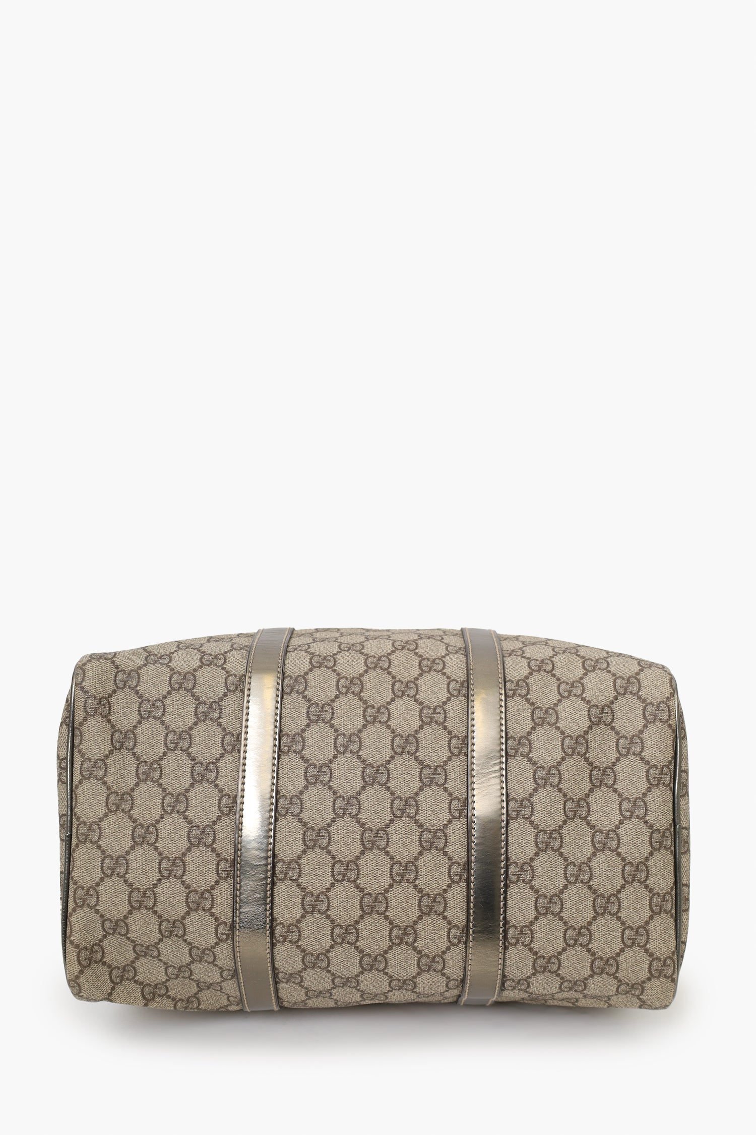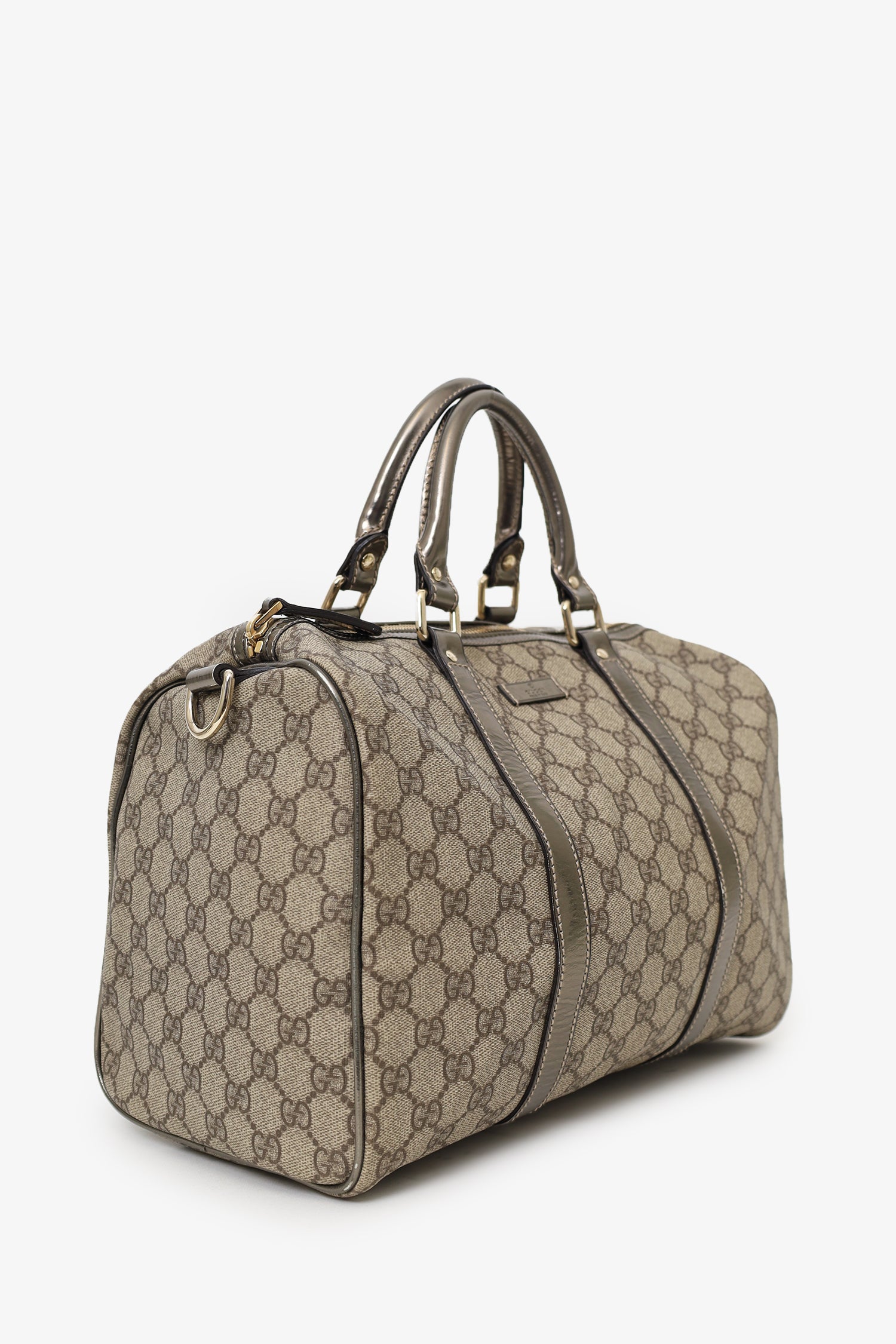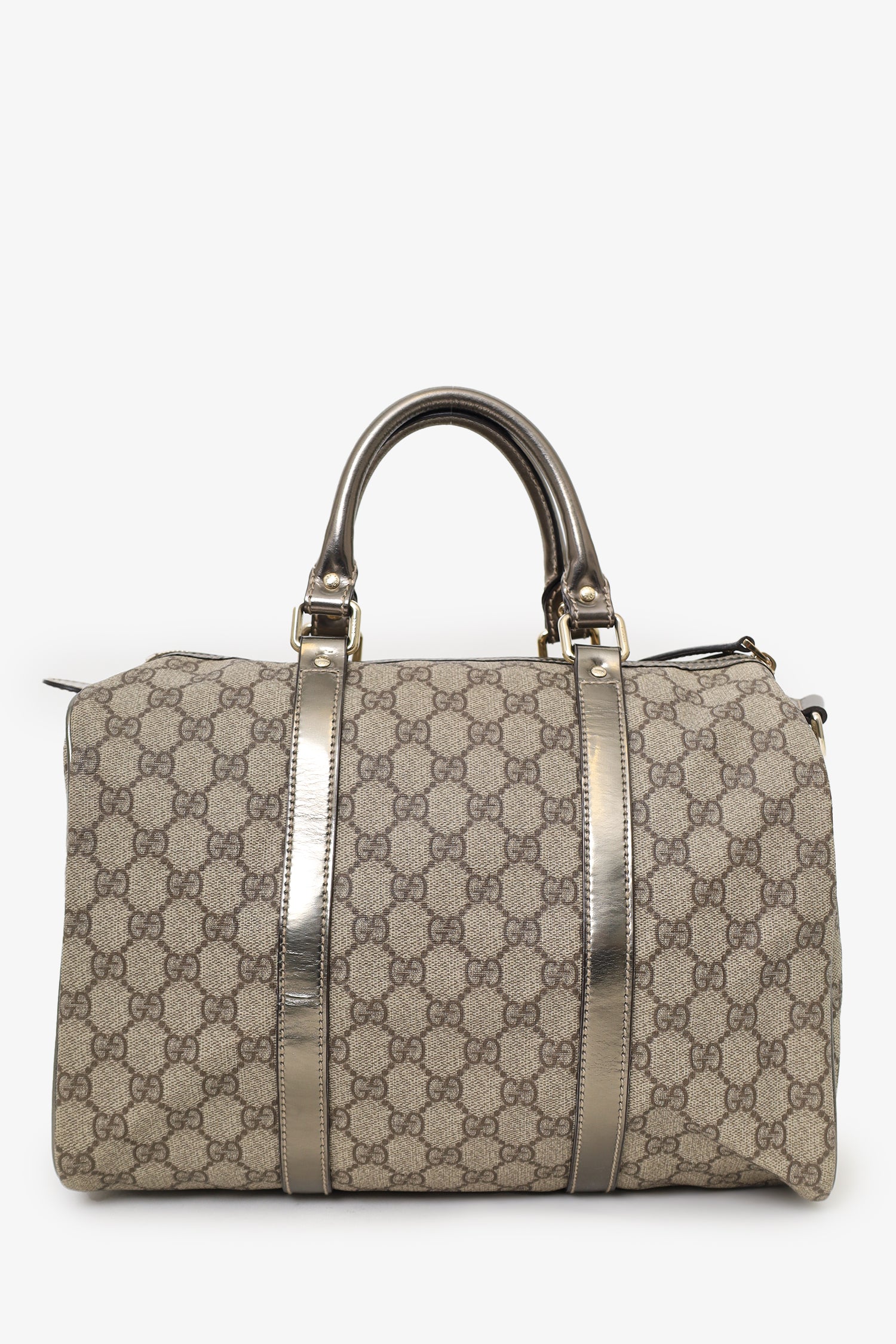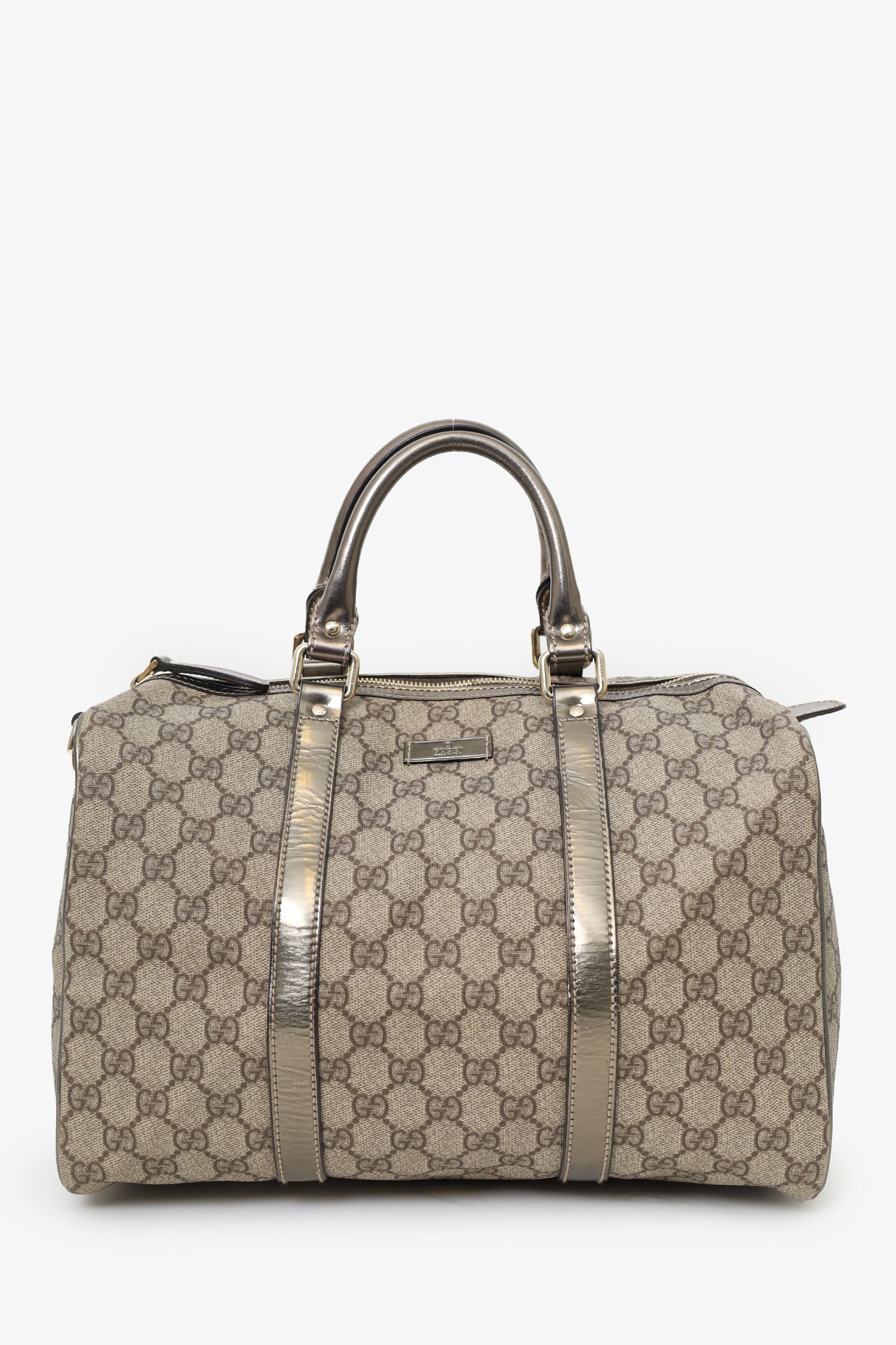 Refresh availabilityGucci GG Supreme Joy Medium Boston Bag. Top-zip closure. Dual top handle straps. Chain ring on exterior of bag. Fabric-lined interior. Silver-tone hardware. Tonal stitching.