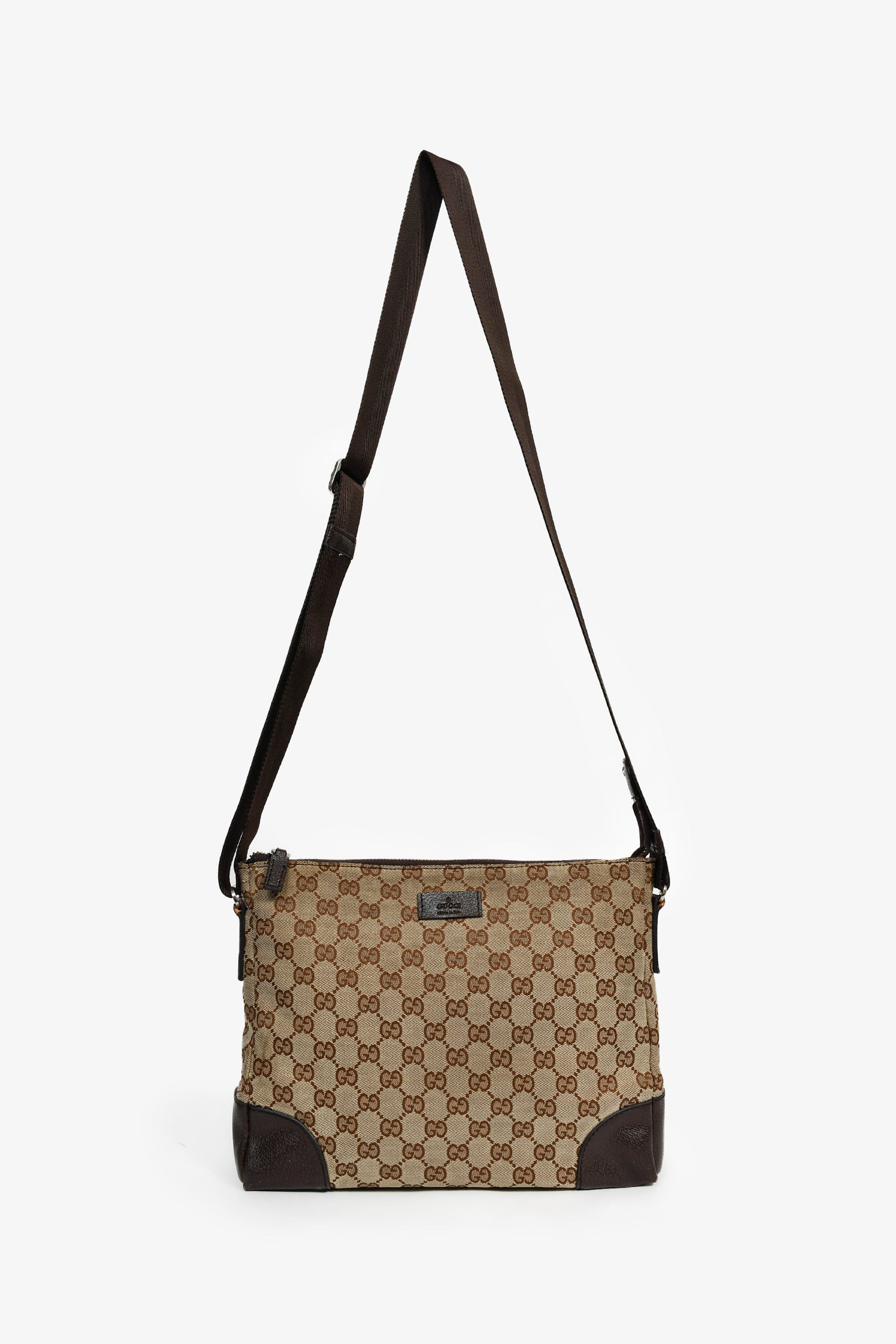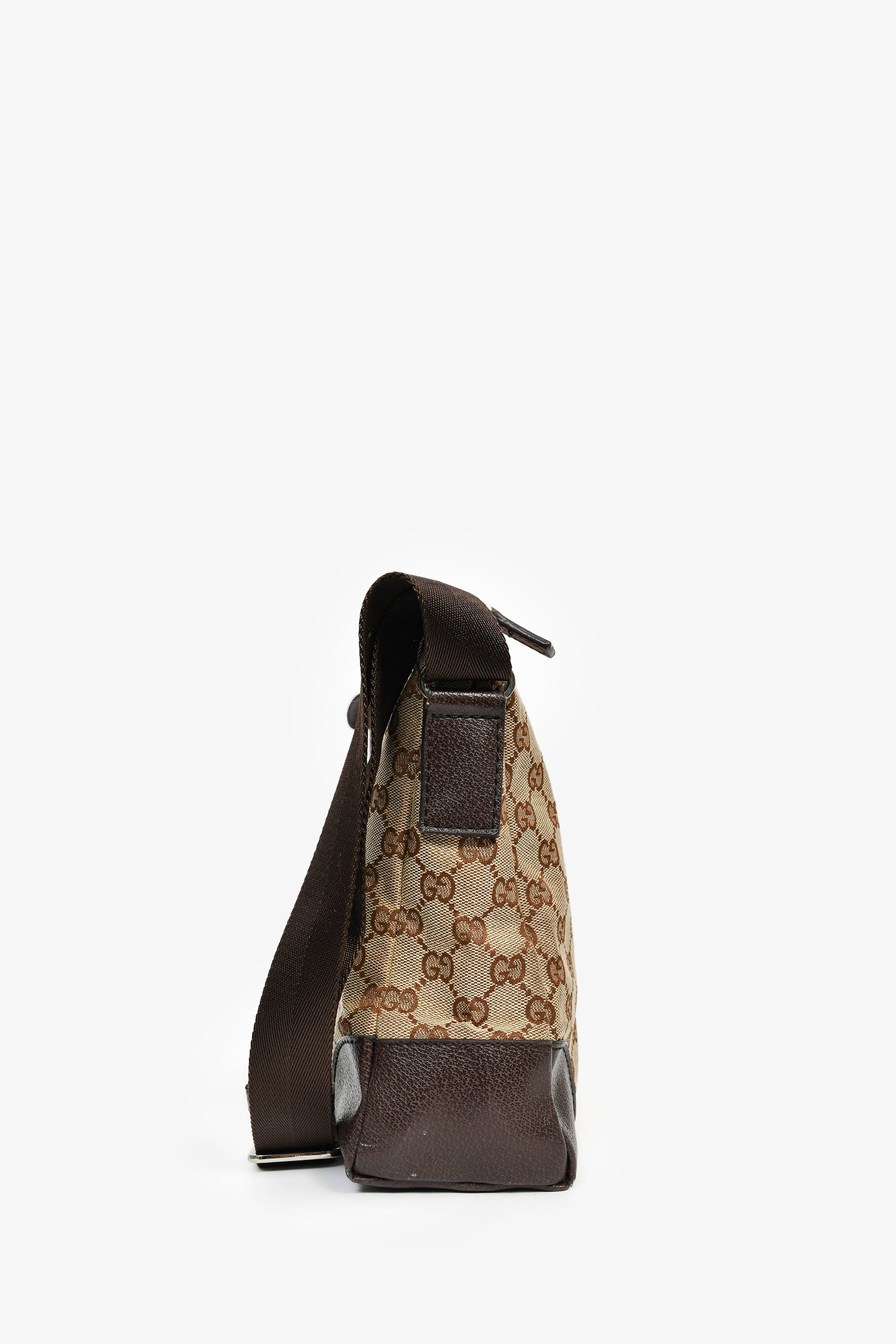 Refresh availabilityGucci GG Supreme Messenger Bag. Top zip closure. Tonal textile interior lining. Three interior wall pockets; two slip and one with zip closure. Silver-tone hardware. Adjustable strap.
