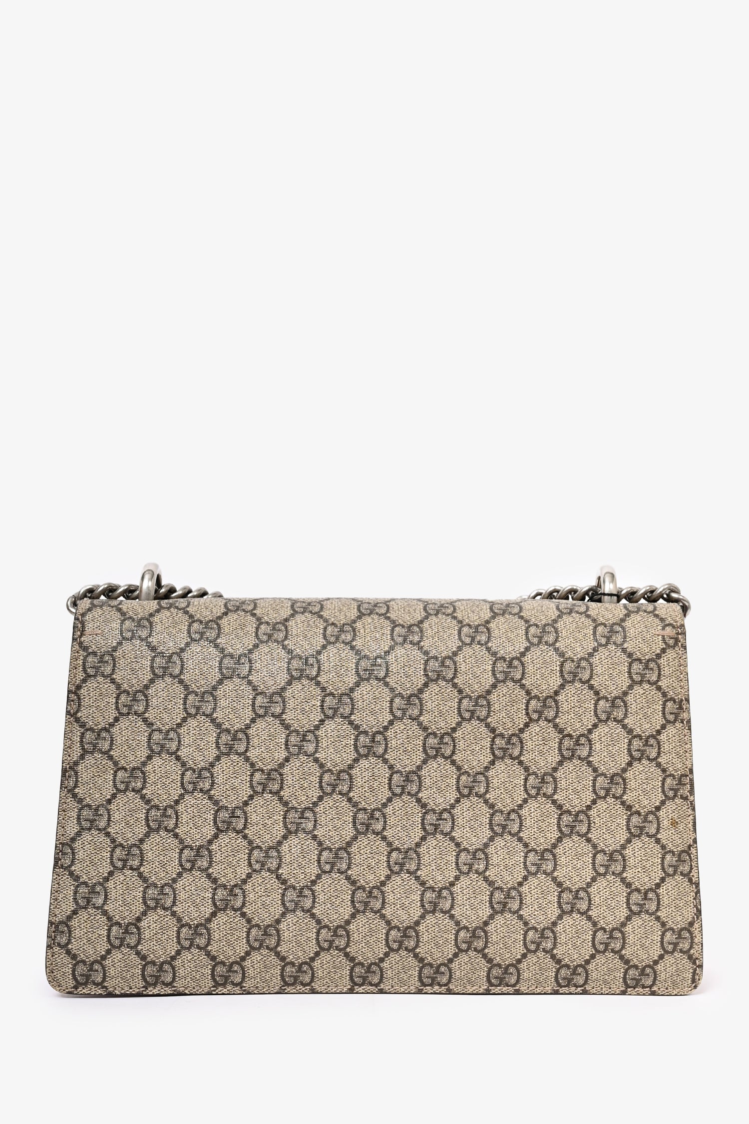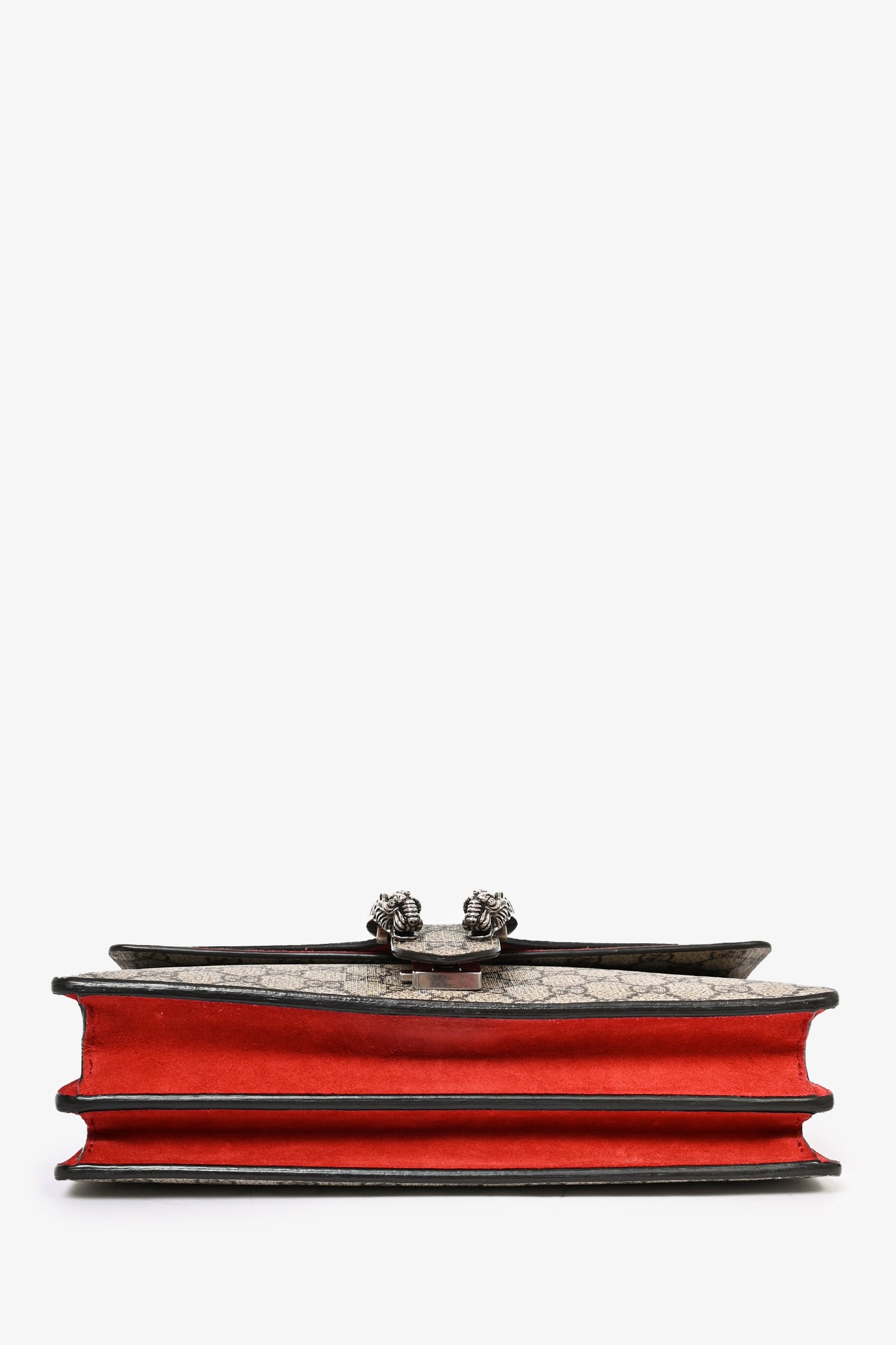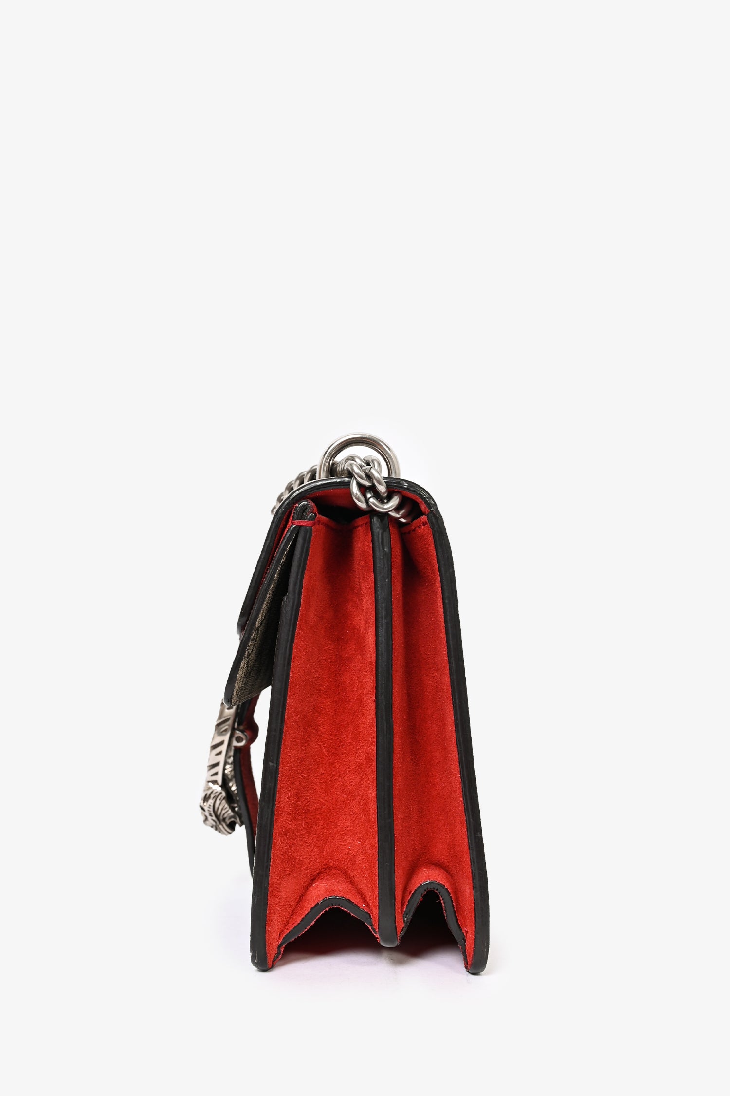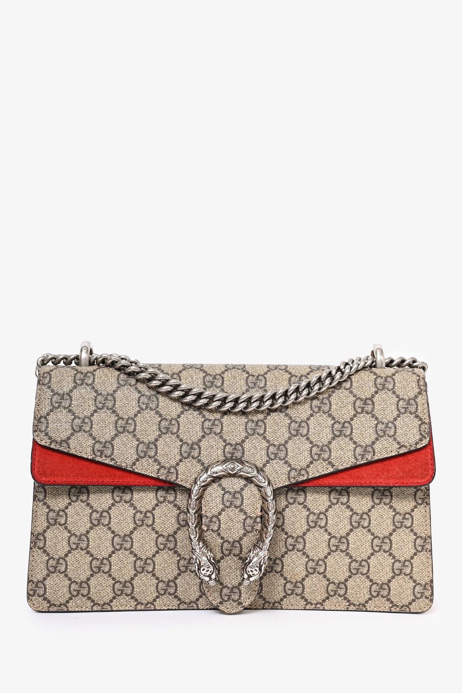 Refresh availabilityGucci GG Supreme Red Suede Small Dionysus Chain Shoulder Bag. Tonal stitching. Antiqued silver-tone hardware. Push-open closure. Chain-link shoulder strap. Fold-over flap. Zipped interior compartment. 2 interior compartments. Leather trimming.