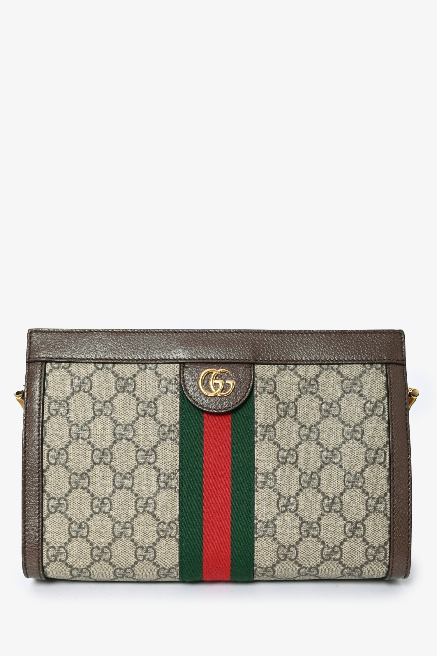 Refresh availabilityGucci 'GG' Supreme Small Ophidia Chain Shoulder Bag. Tonal stitching. Leather trimming. Chain-link shoulder strap. GG Supreme canvas. Accordion sides. Logo motif throughout. Magnetic closure at top. 2 interior compartments. 1 interior wall pocket. Contrast interior.