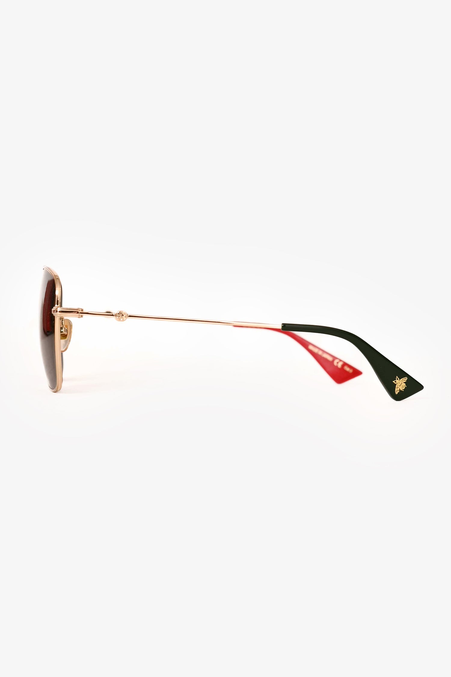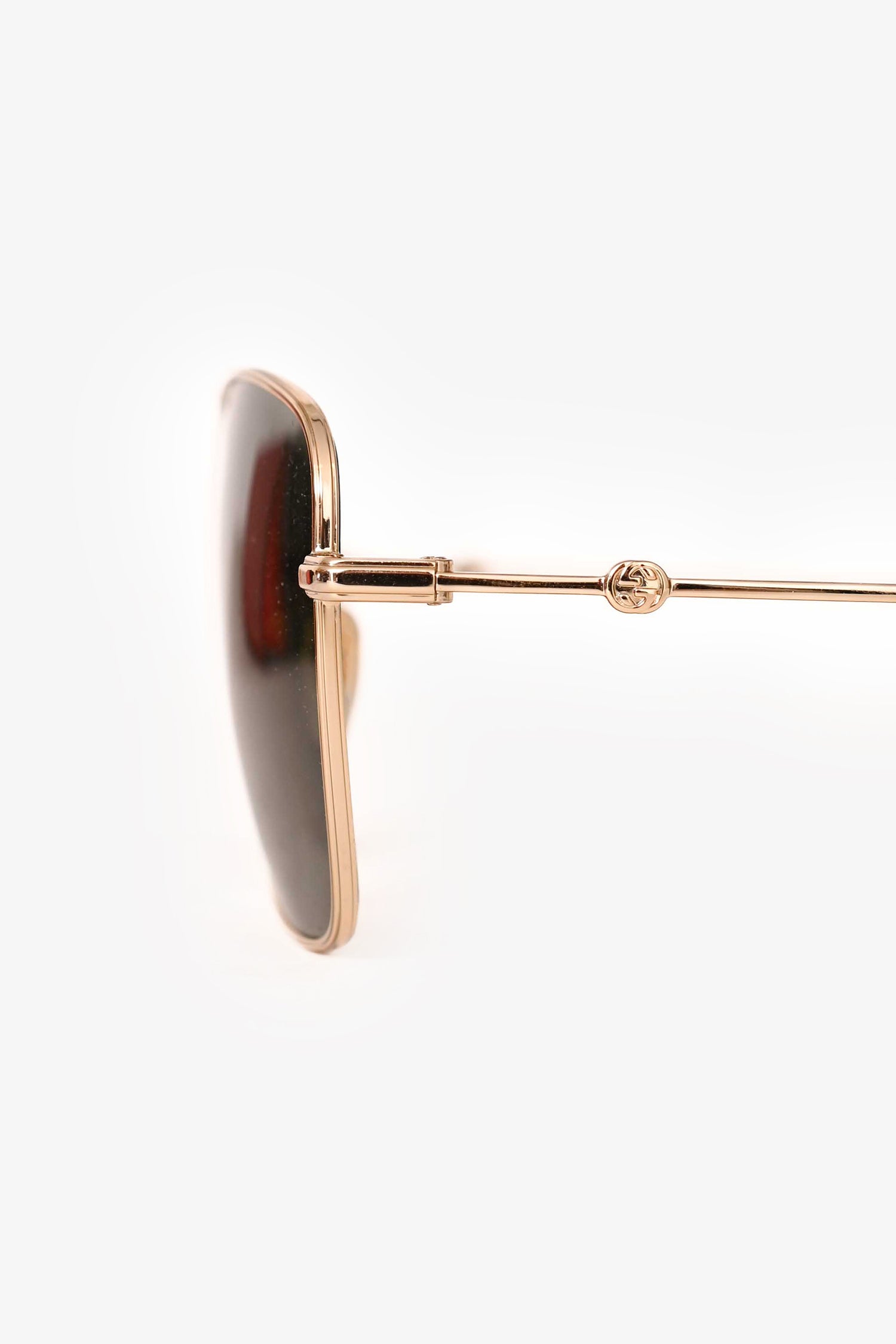 Refresh availabilityGucci Gold Frame Black Lens Aviator Sunglasses. Black tinted lenses. Gold-tone wired frames. Built-in nose pads.