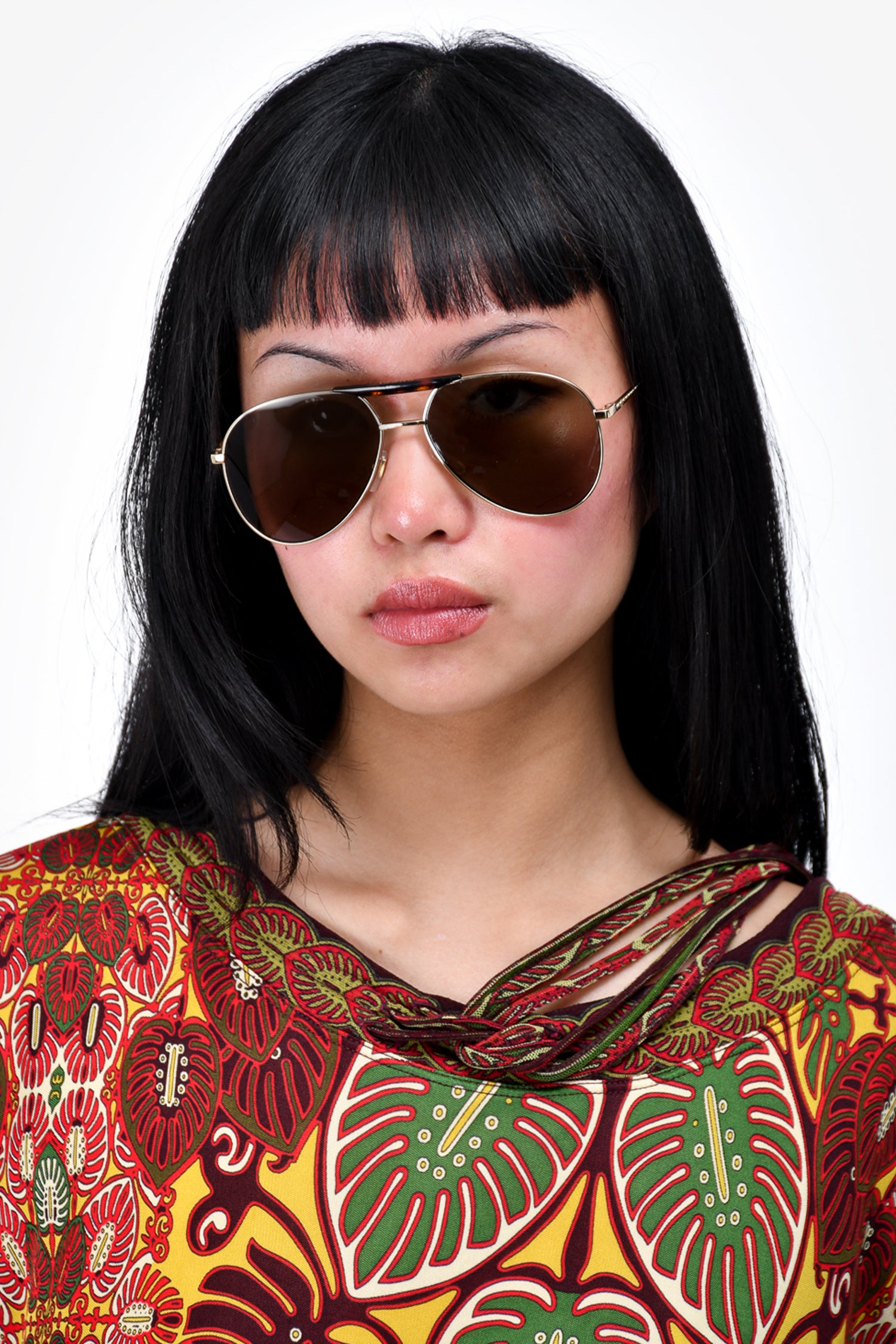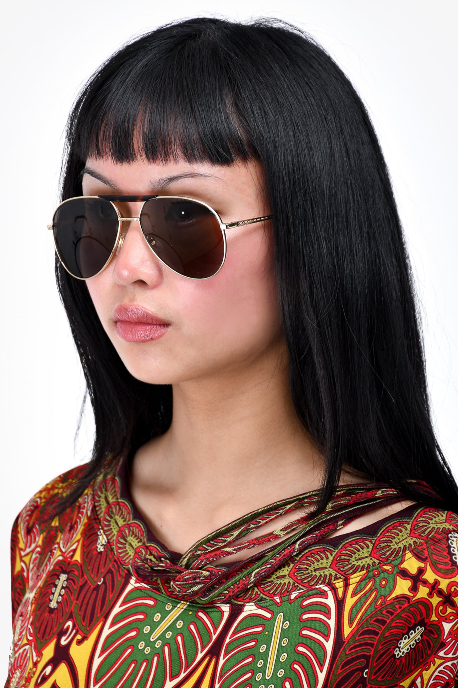 Refresh availabilityGucci Gold Frame Tinted Tortoiseshell Detail Aviator Sunglasses. Adjustable nose pads.