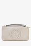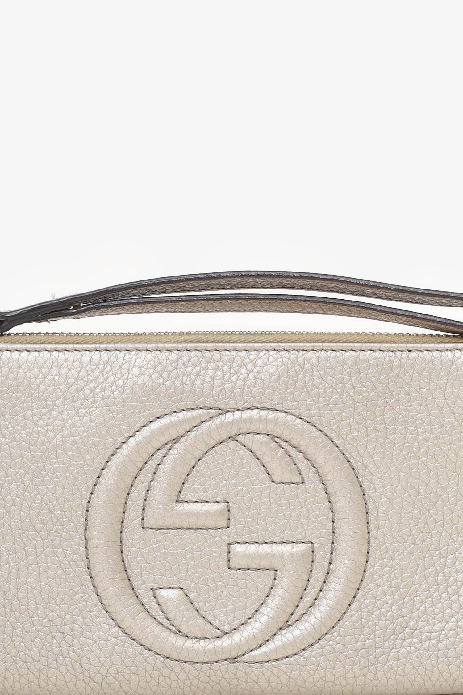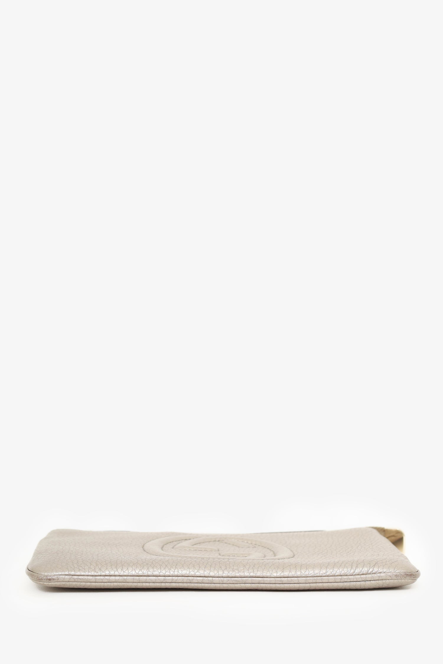 Refresh availabilityGucci Gold Leather Wristlet. Top zip closure. Open interior with fabric lining. 6 interior rear wall card slip pockets and 1 rear compartment with zip closure. Gold-tone hardware. Tonal stitching.