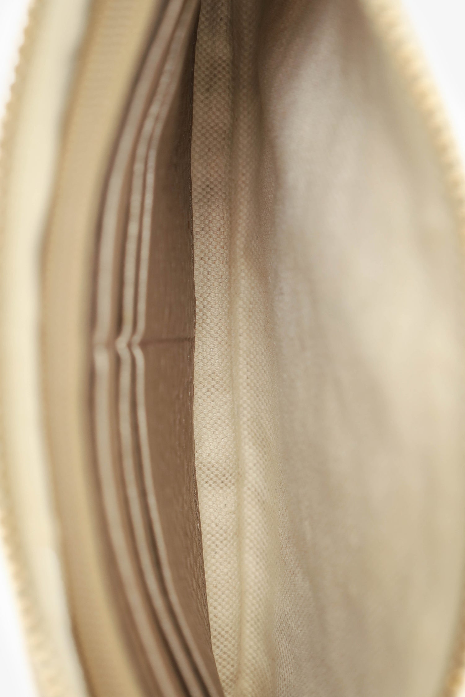 Condition: This item is in fair pre-loved condition with minor scratches throughout hardware. Some areas of the hardware have fading gold coating. 2 stains in the interior. The adhesive area on the wristlet is slightly coming undone.