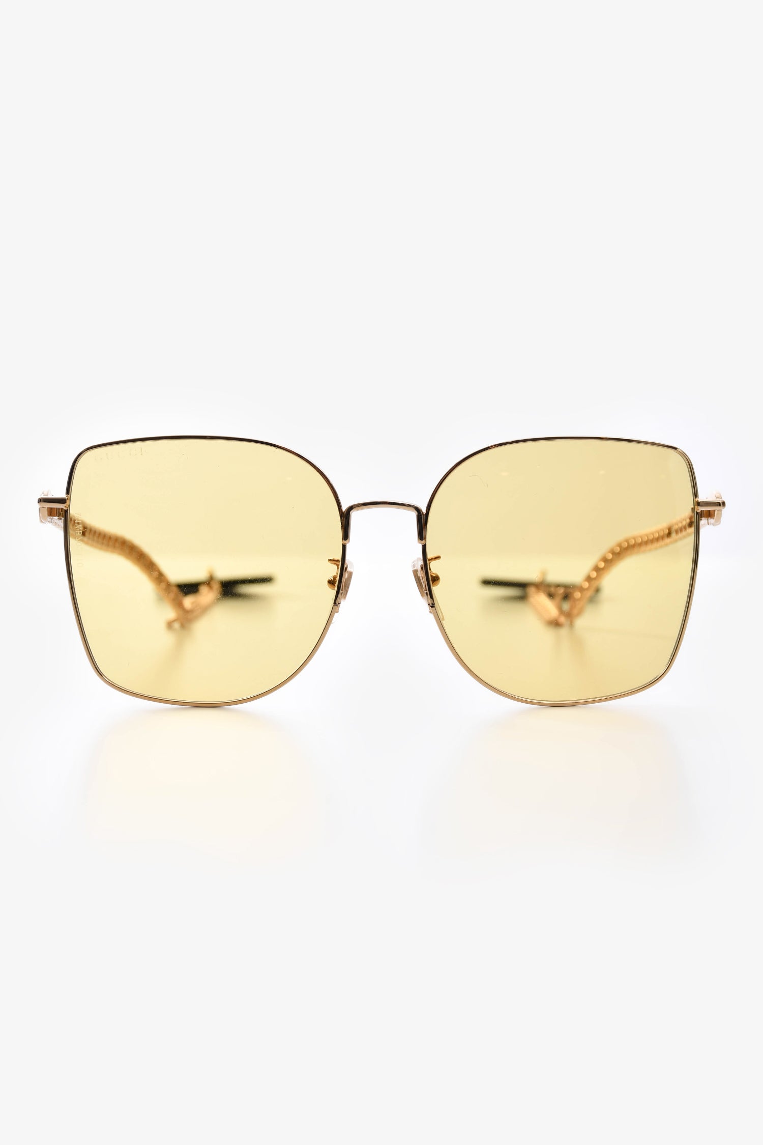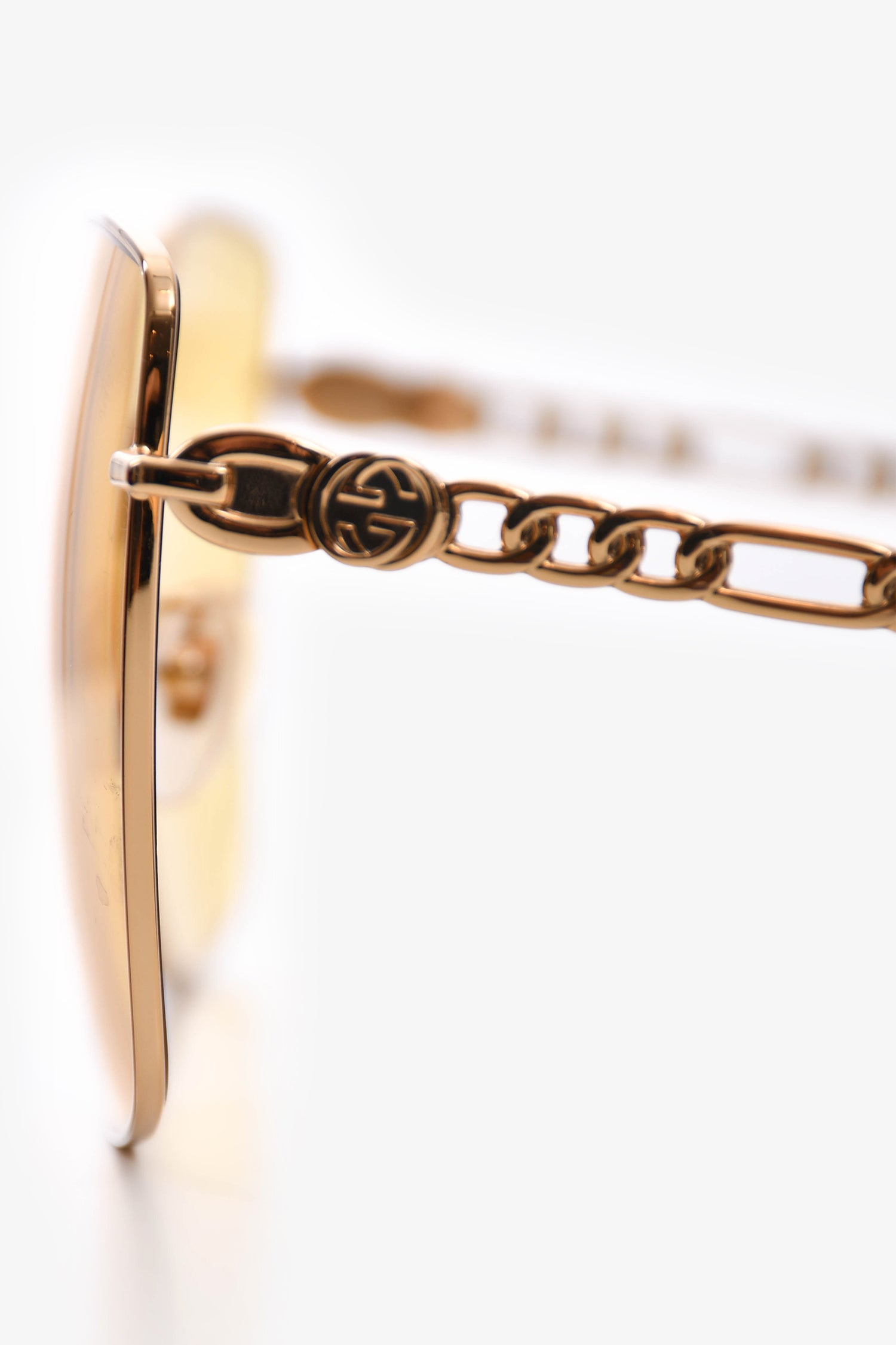 Refresh availabilityGucci Gold-Tone Framed Heart Shape Charm Embellished Sunglasses. Adjustable nose pads.