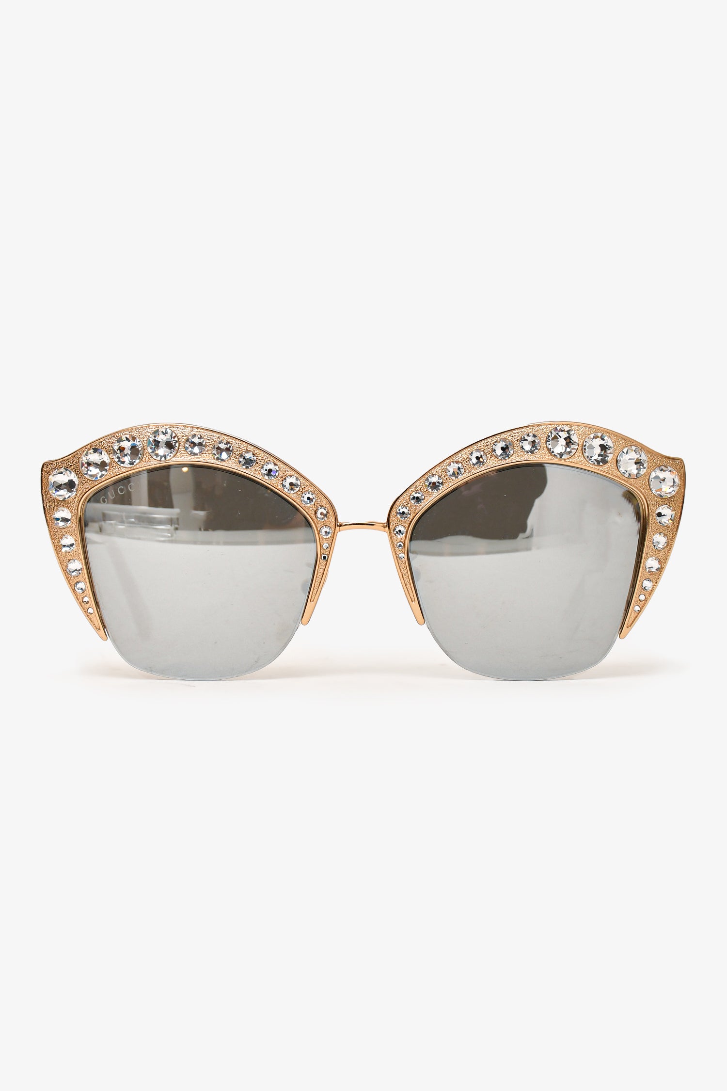 Refresh availabilityGucci Gold Tone Metal Crystal Embellished Sunglasses. Nose pads. Tinted mirrored lenses.