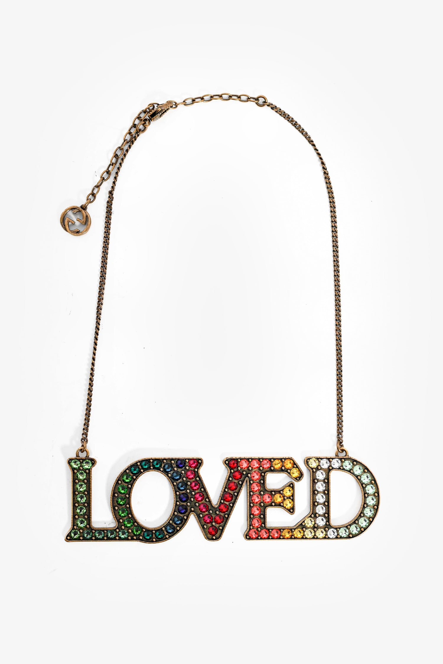 Gucci Gold Toned Multicolour Crystal 'LOVED' Necklace