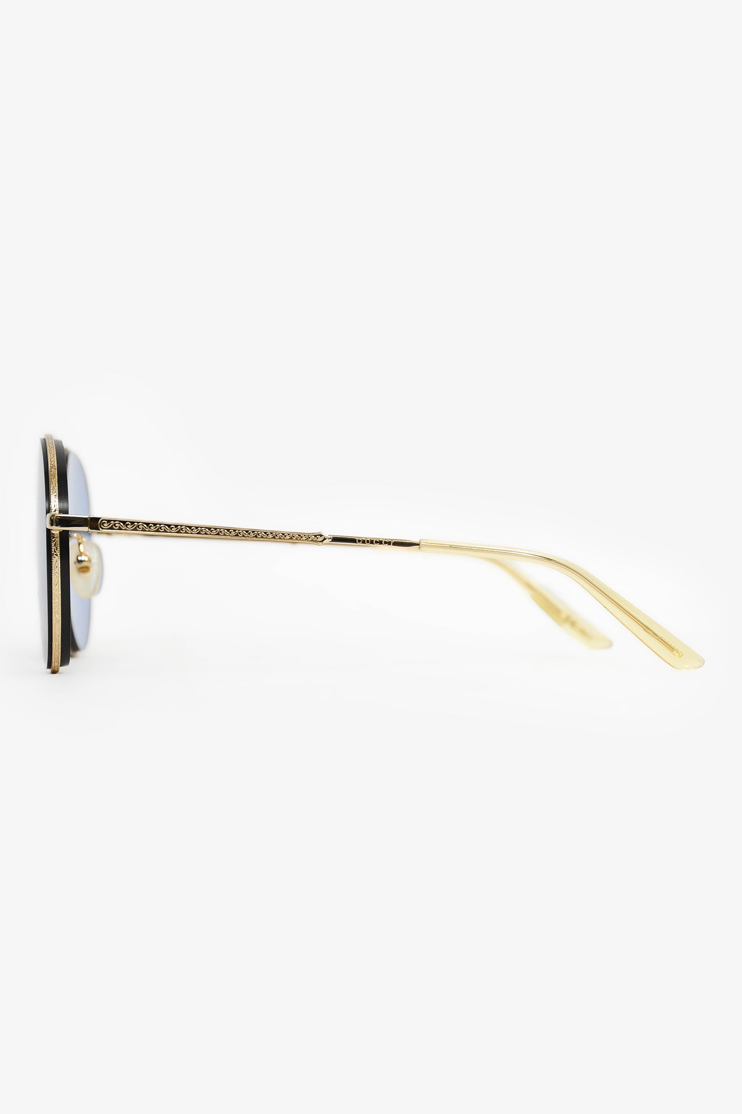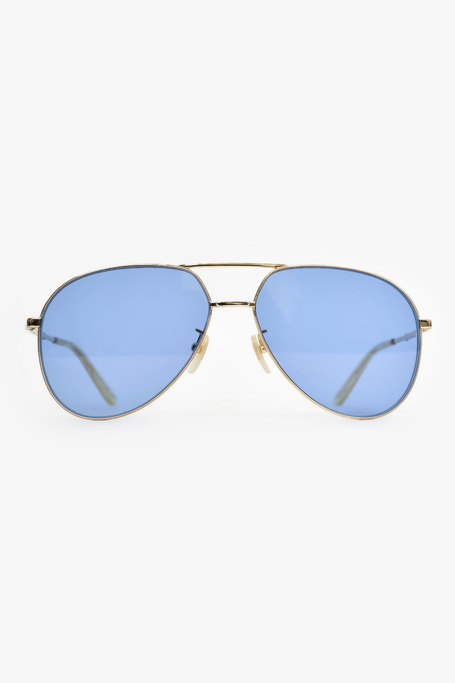 Refresh availabilityGucci Gold/Blue Aviator Sunglasses. Adjustable nose pads.